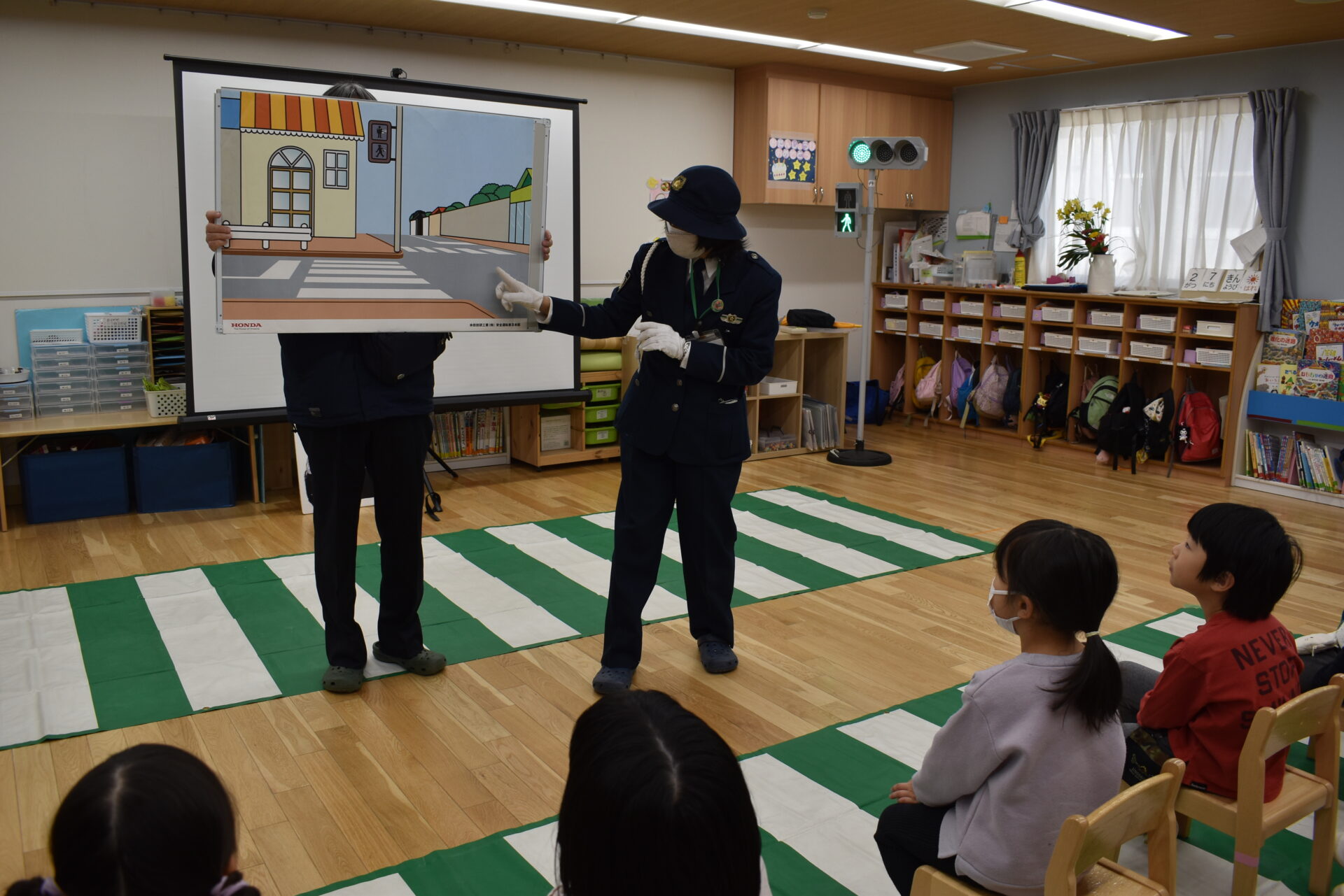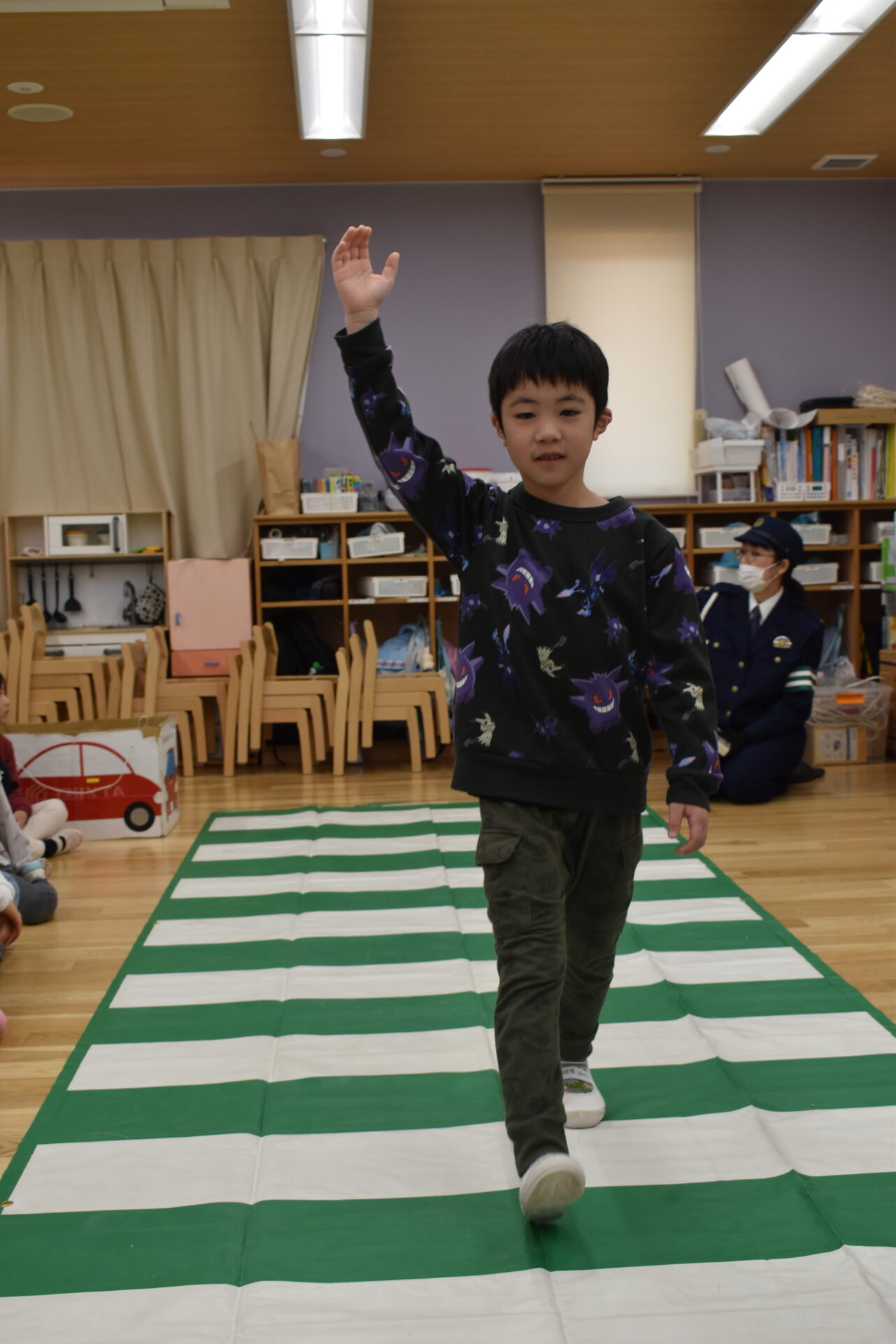 卒園までの間、さらに交通ルールをみんなで確認し合うことで正しい習慣が身に付け、安全な登校へと繋げていきたいと思います。