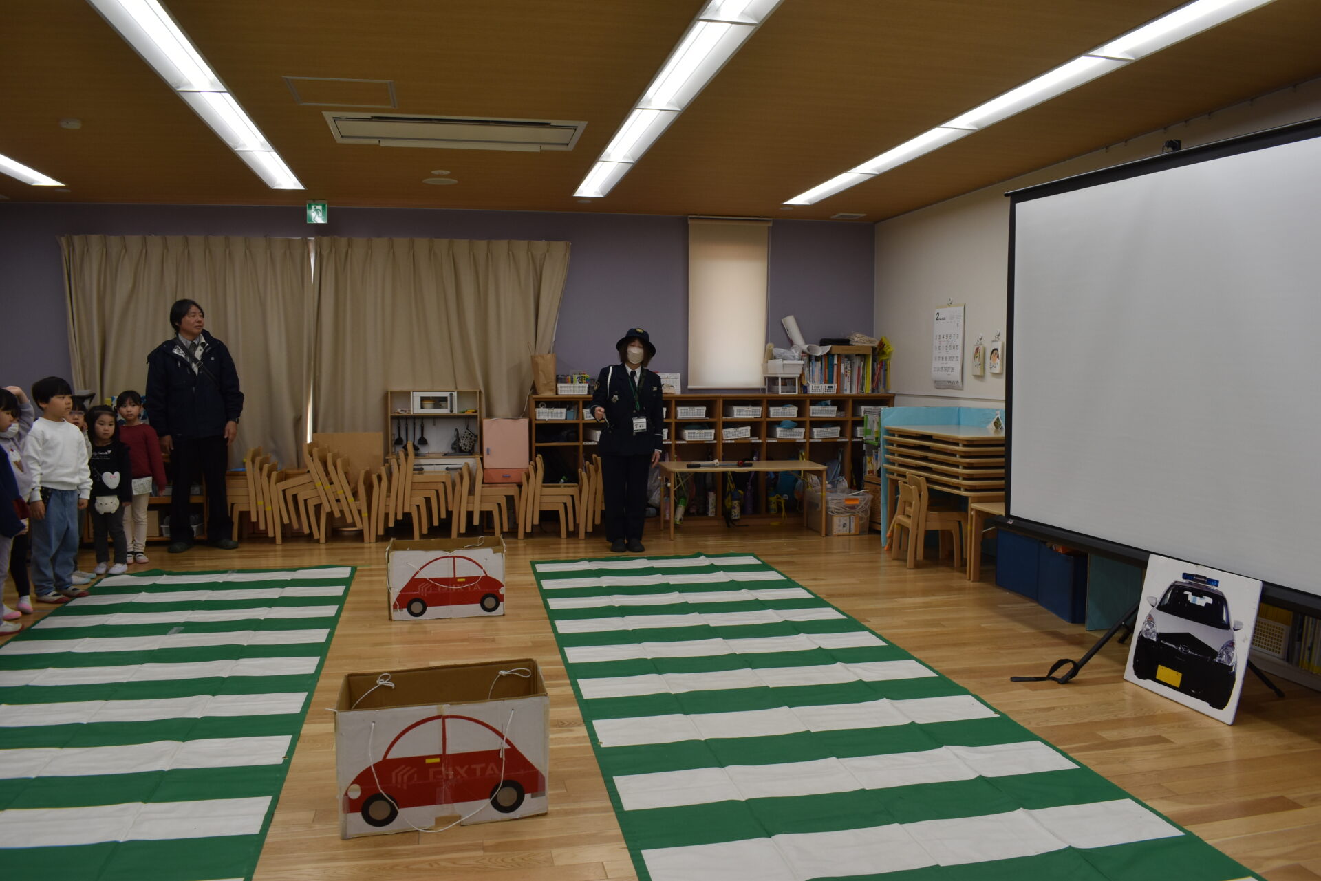 先日交通安全課の方に来ていただいて、5歳児対象で『交通安全教室』を行ないました。