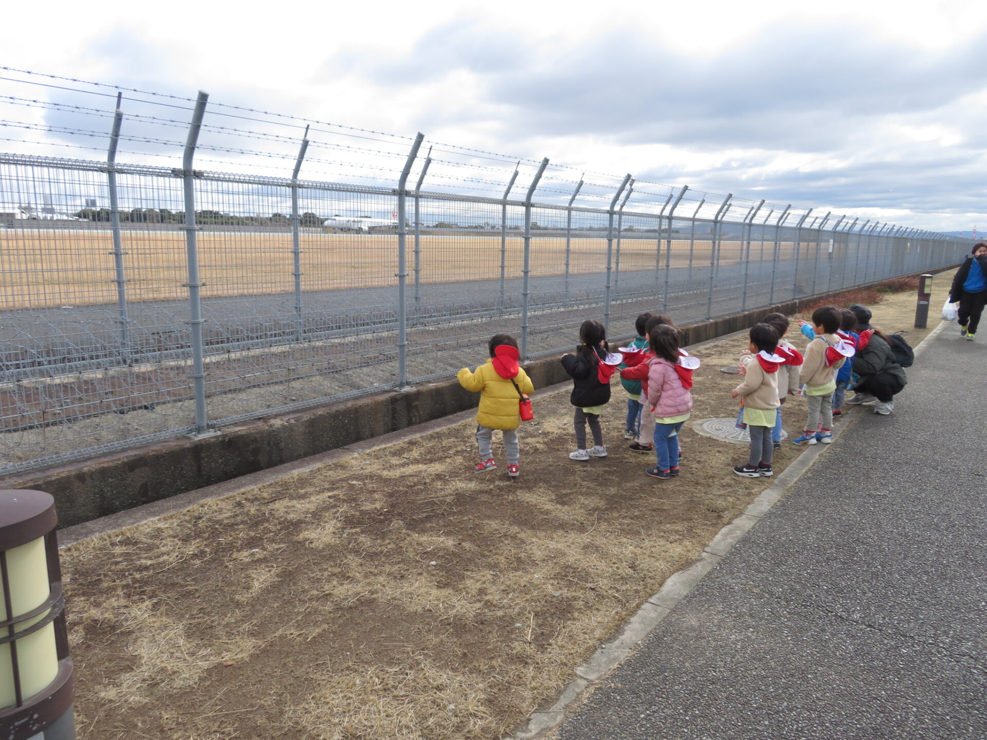 着いてすぐにタイムングよく近くで飛行機を見ることができ迫力に圧倒されながらも夢中になり目で飛行機を追いかけ「行ってらっしゃい」「バイバイ〜」と手を振る子どもたちでした。