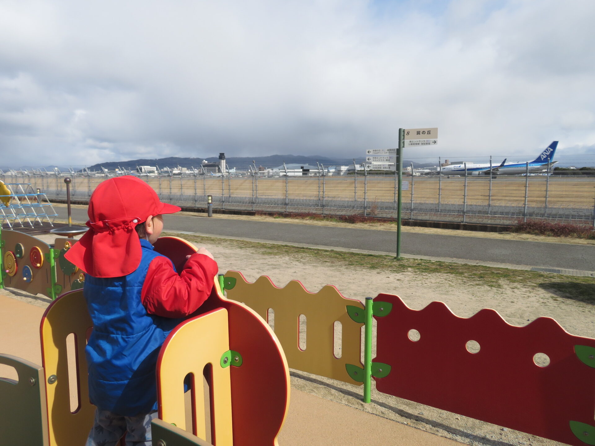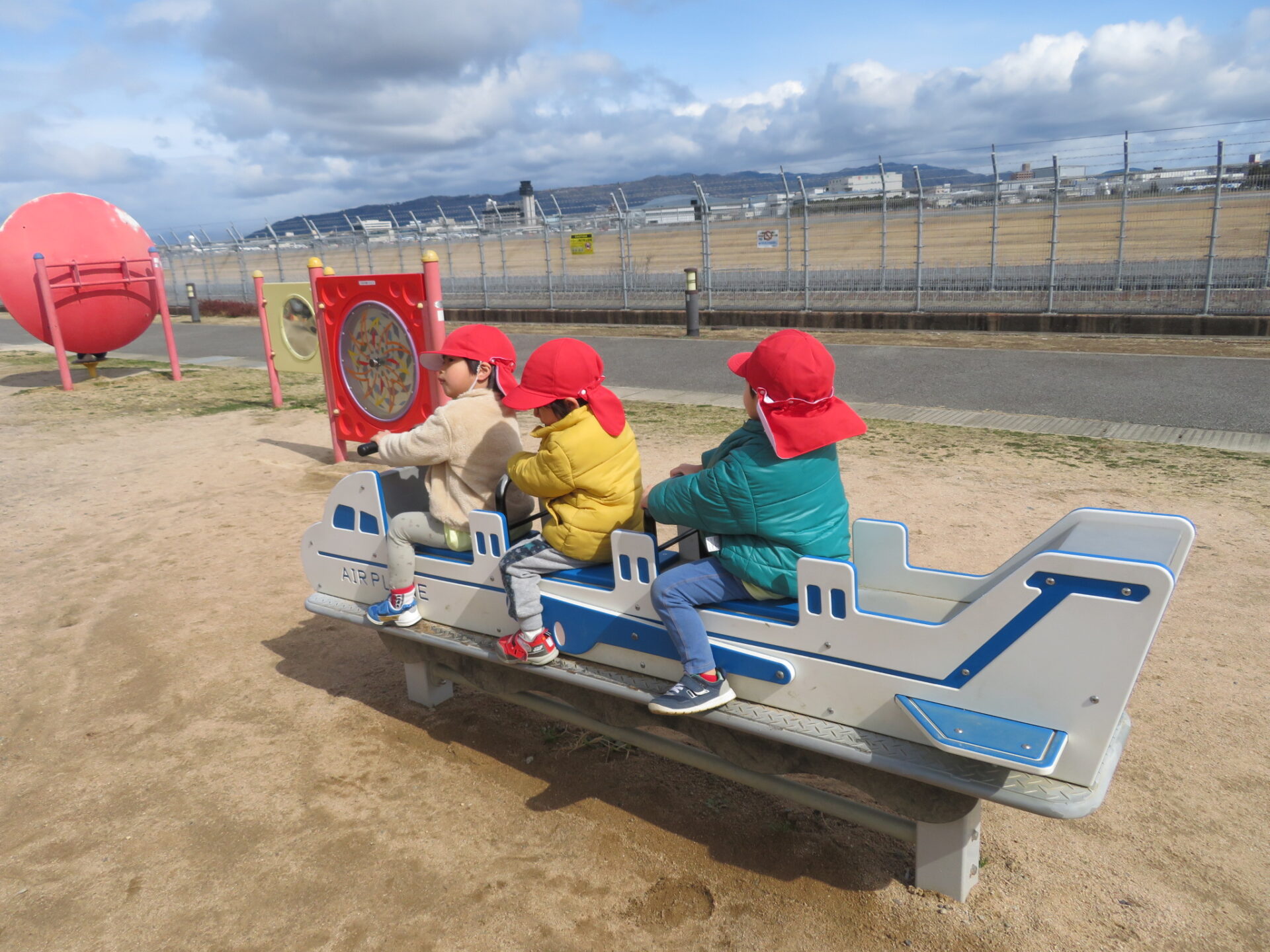 「一緒に遊ぼう」とお友だちを誘ったり、飛行機に乗って「〇〇に行こう〜」とごっこ遊びが展開されたり、飛行機が見えるベストポジションを見つけ出したり思い思いに「楽しい」を見つけて遊ぶことができました。
