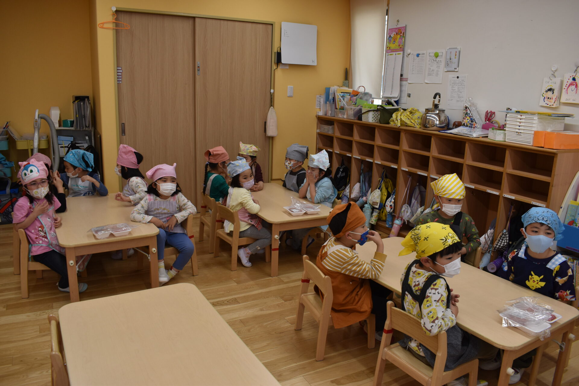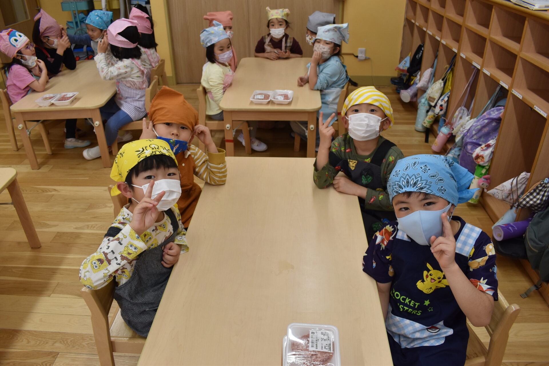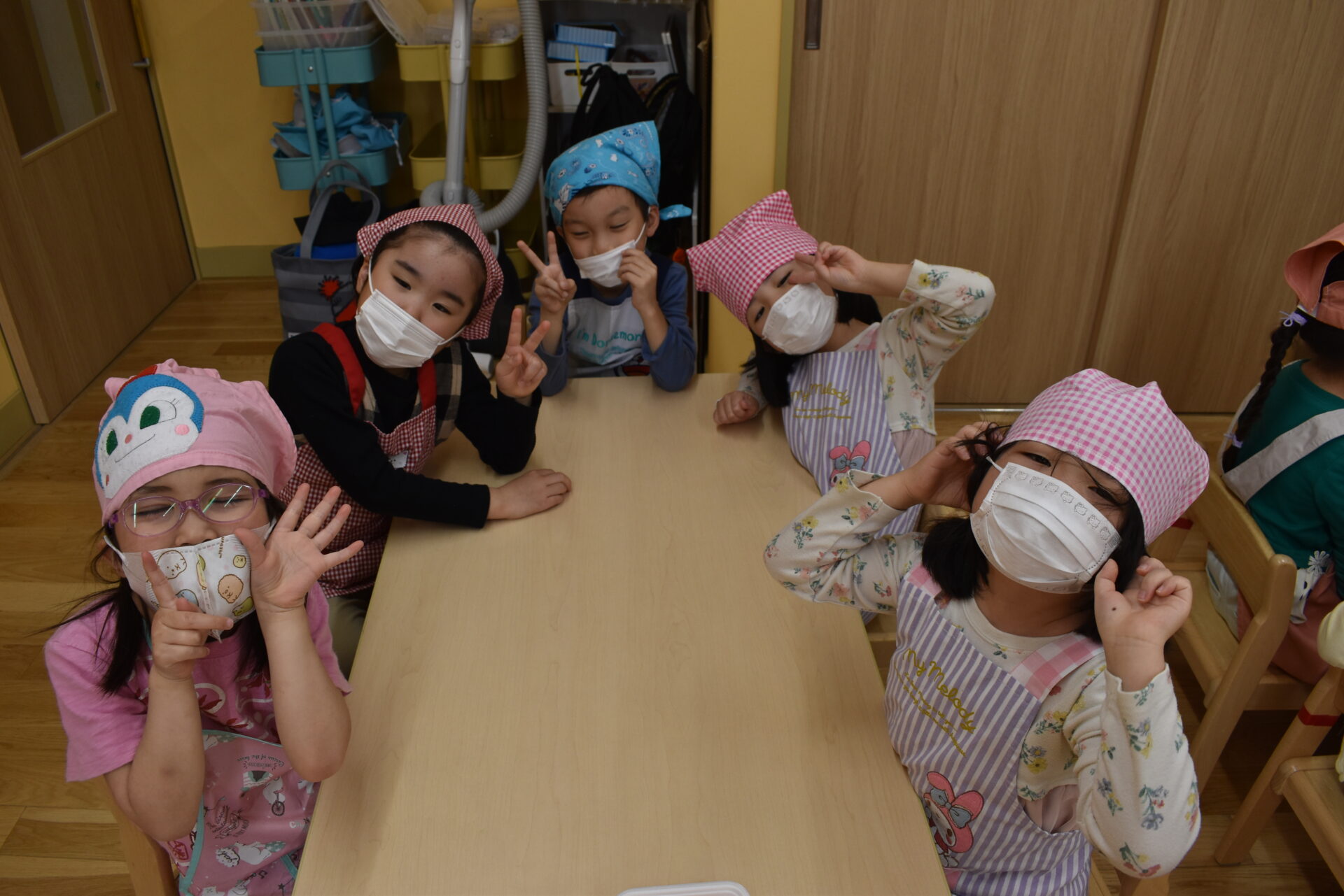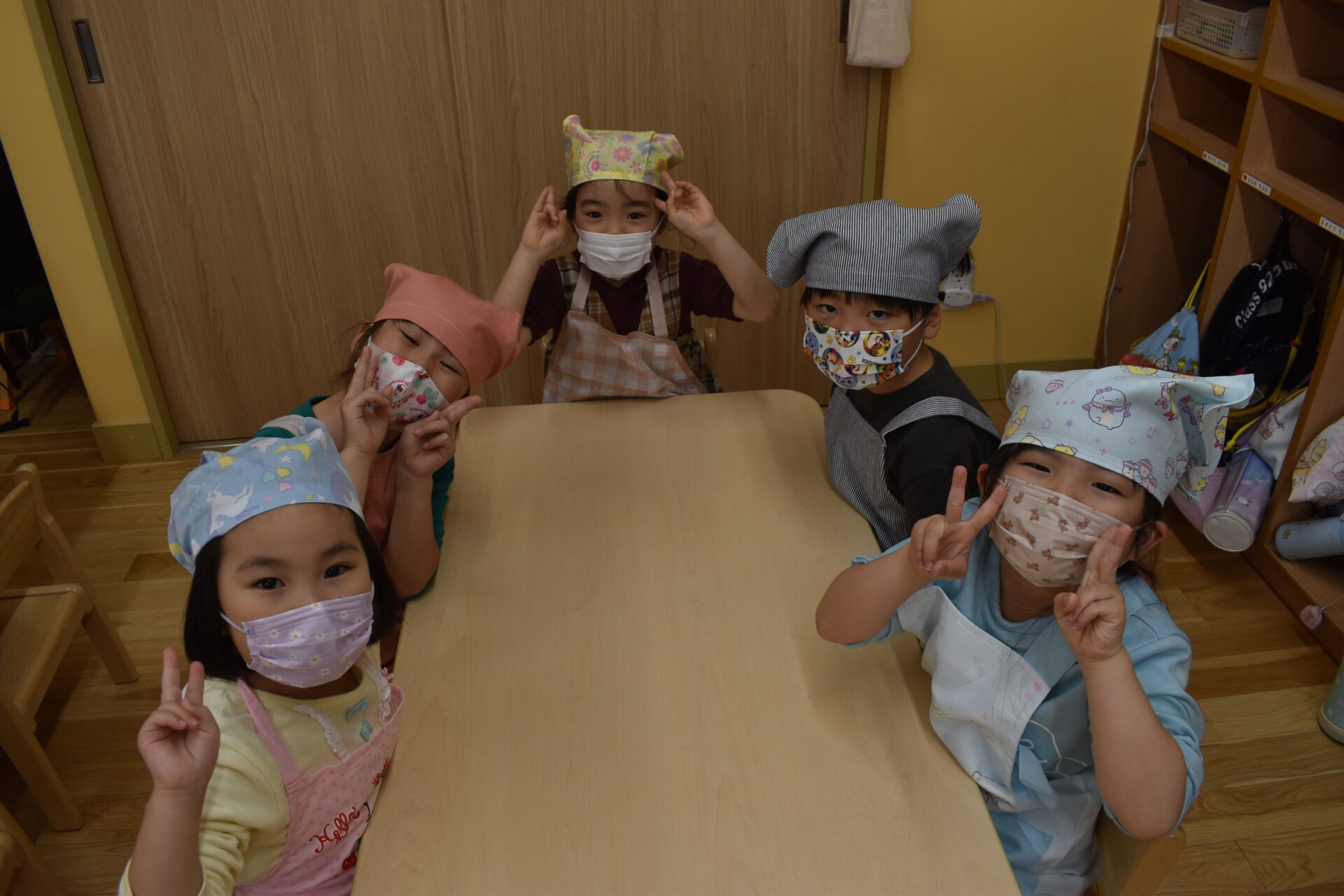 エプロンに着替えるのも早くなり、しっかりポーズも決める子ども達です😊