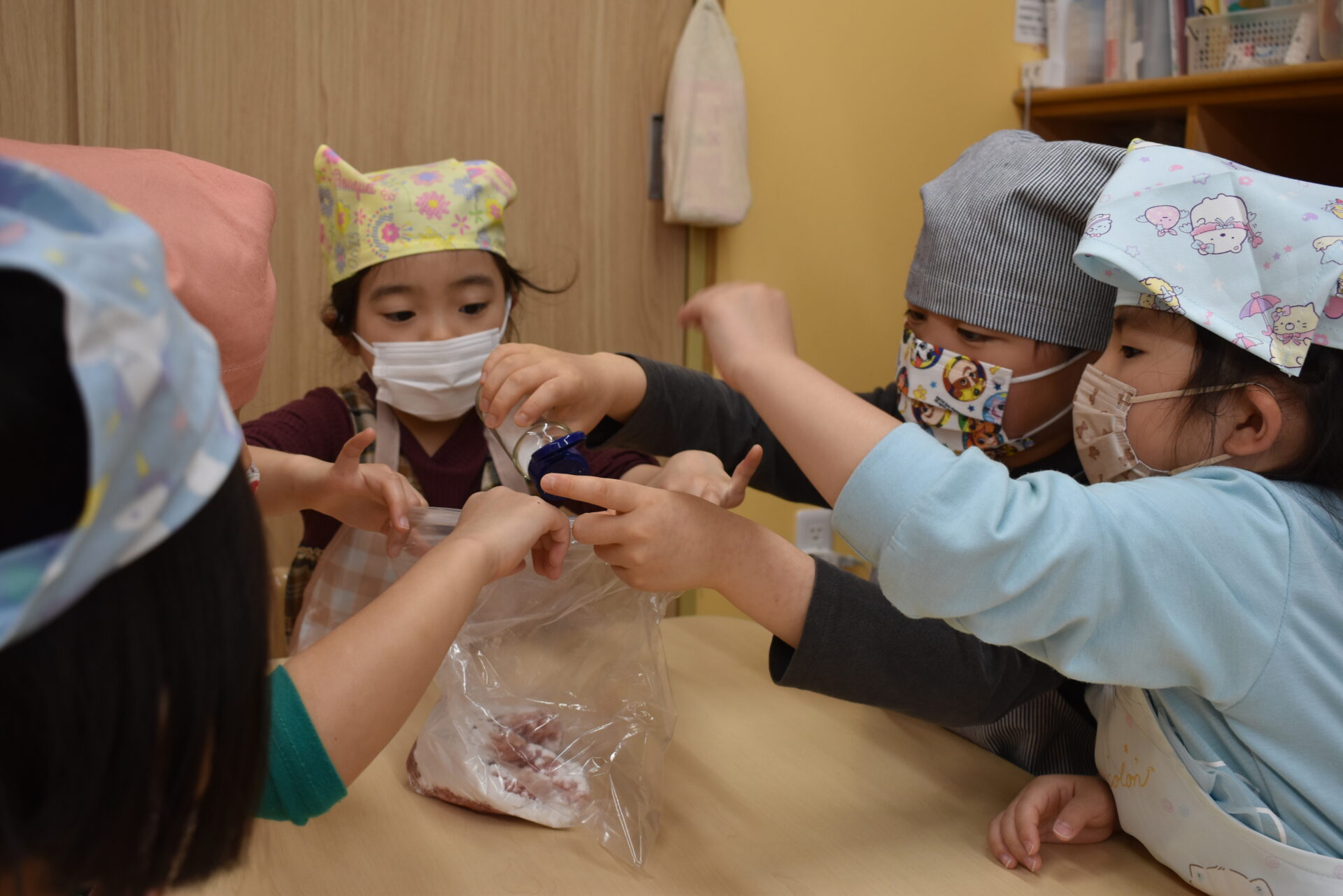 「おいしくなぁれ♬」「おいしくなぁれ♬」と美味しくなる魔法をかけながら、じっくり揉み込んでいきます。
