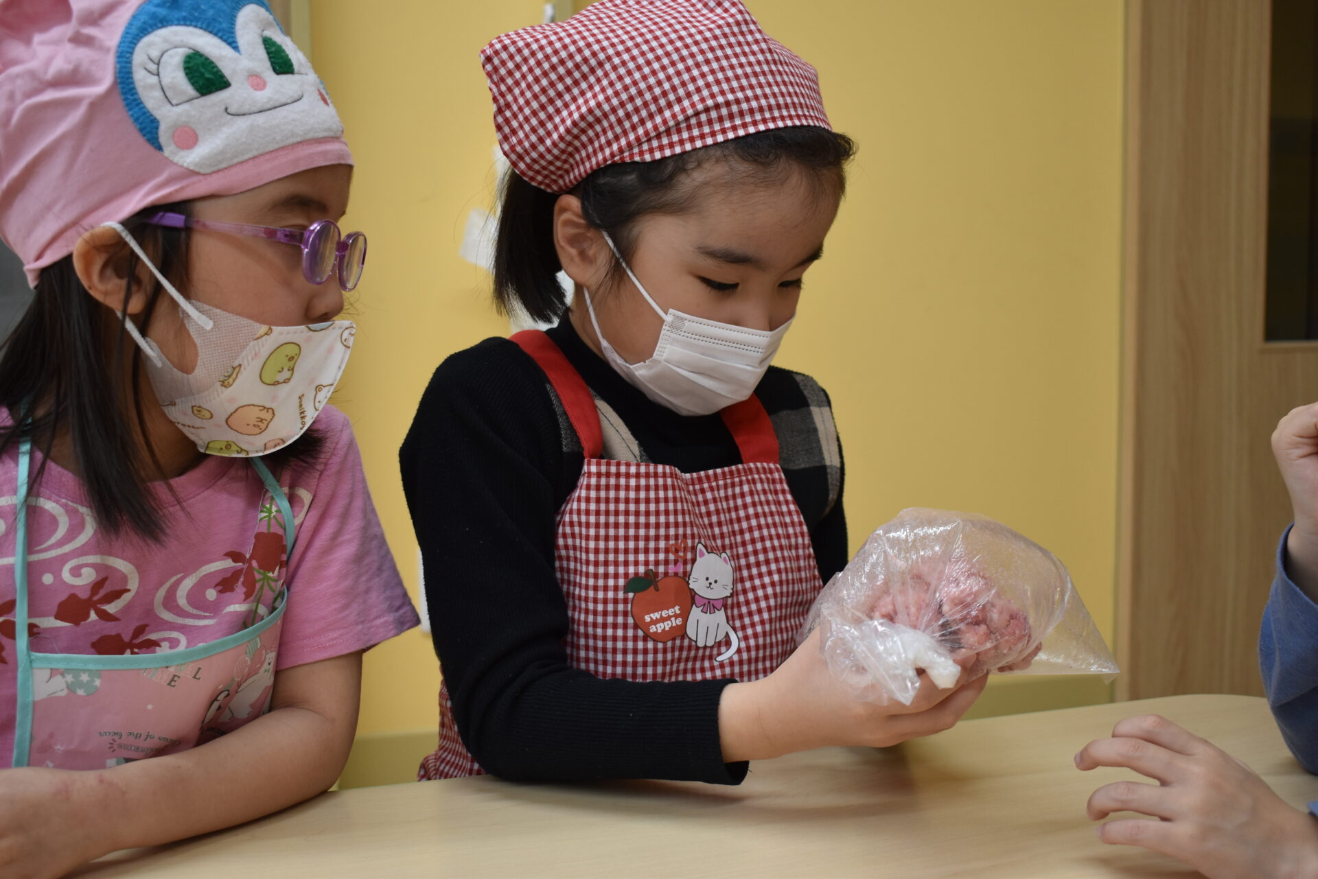にゅ~~っと出てくるお肉に、「わ~すごー・・」と、密かに歓声が上がっていました(笑)