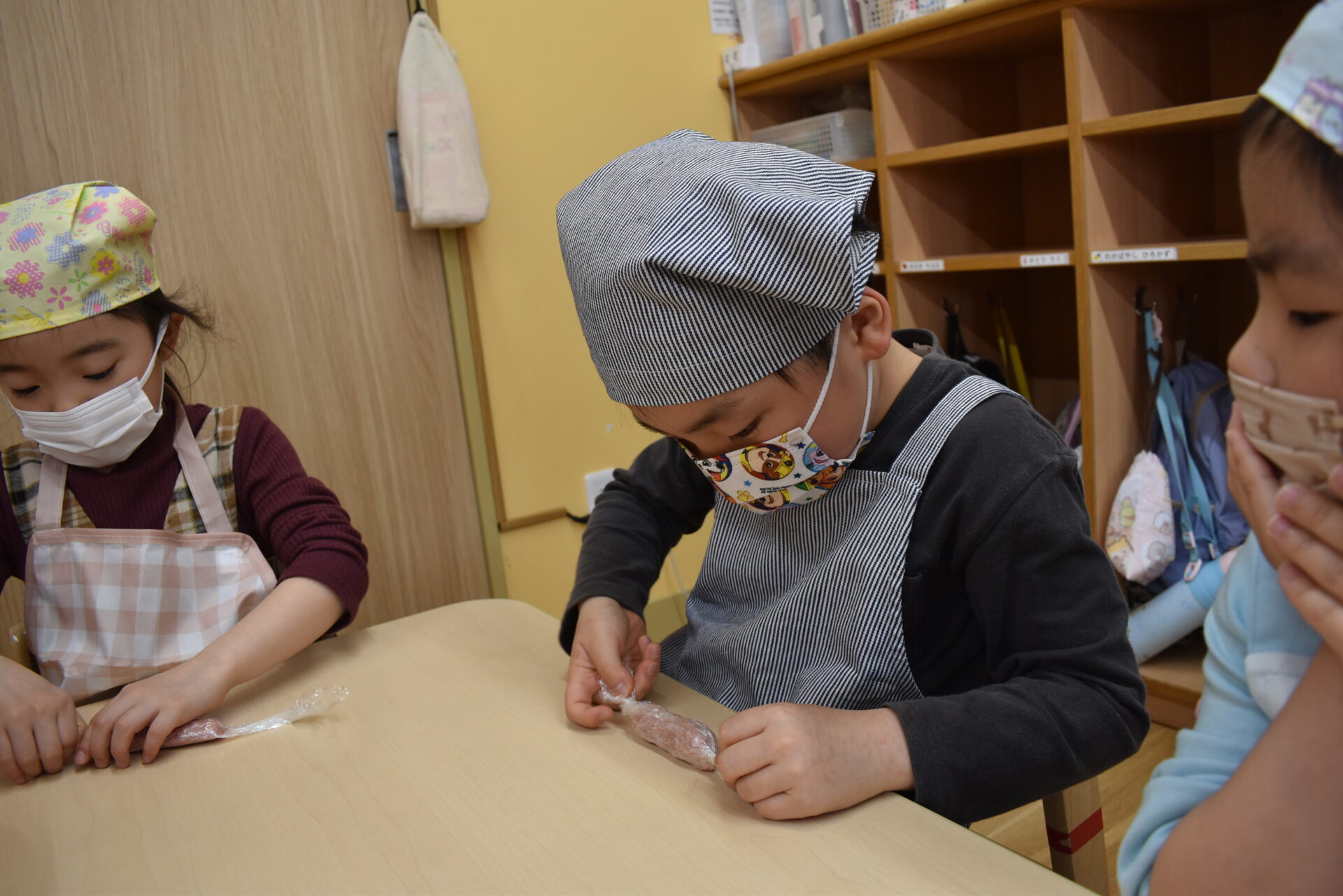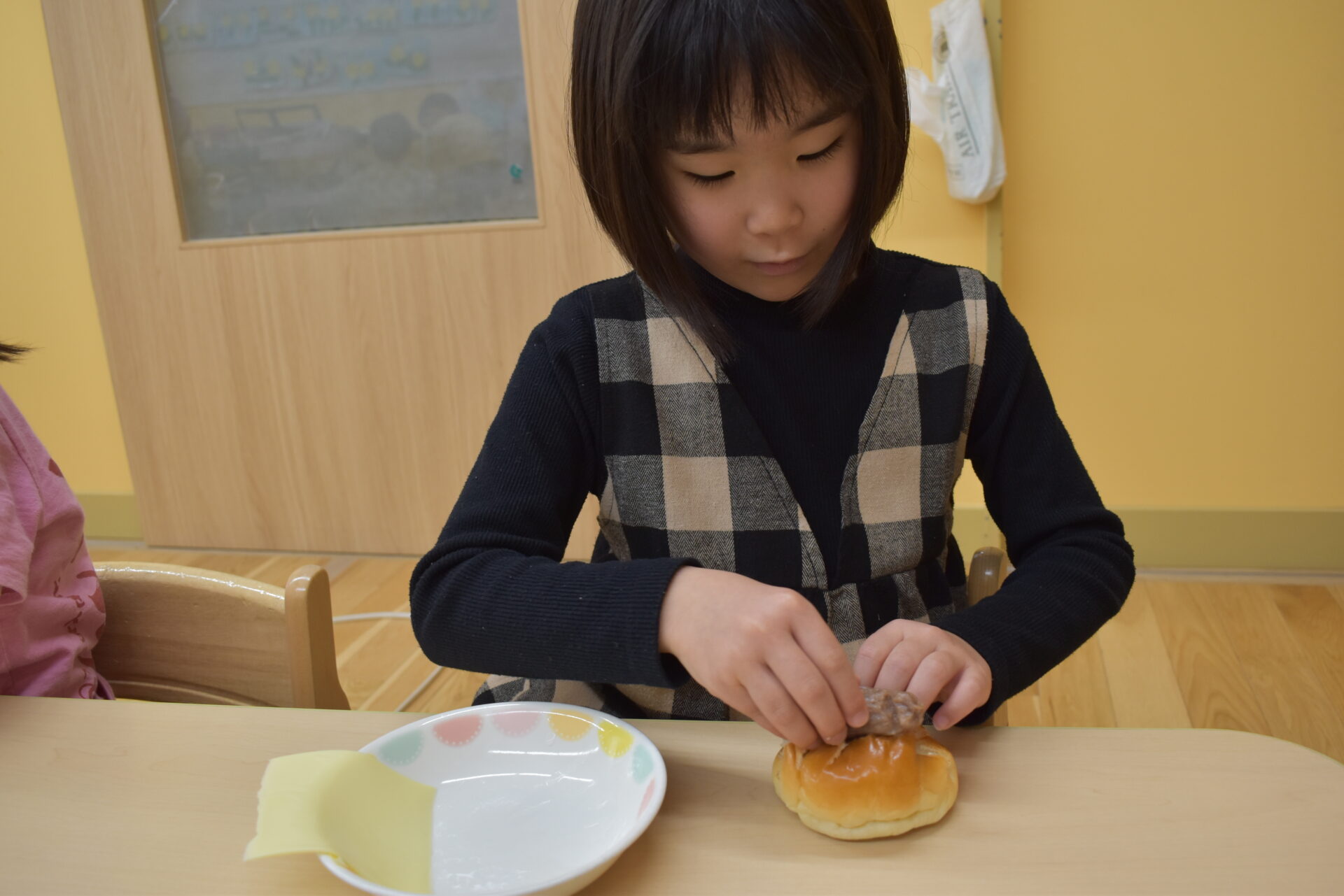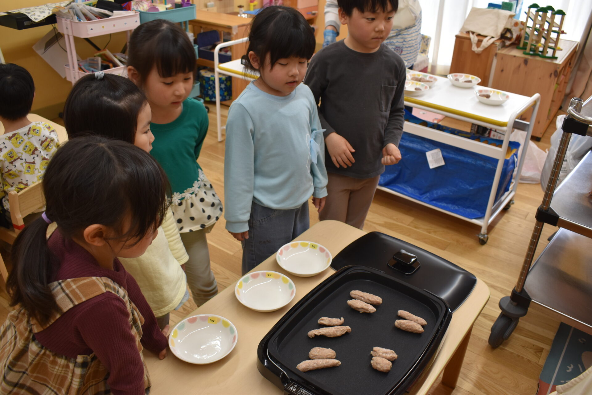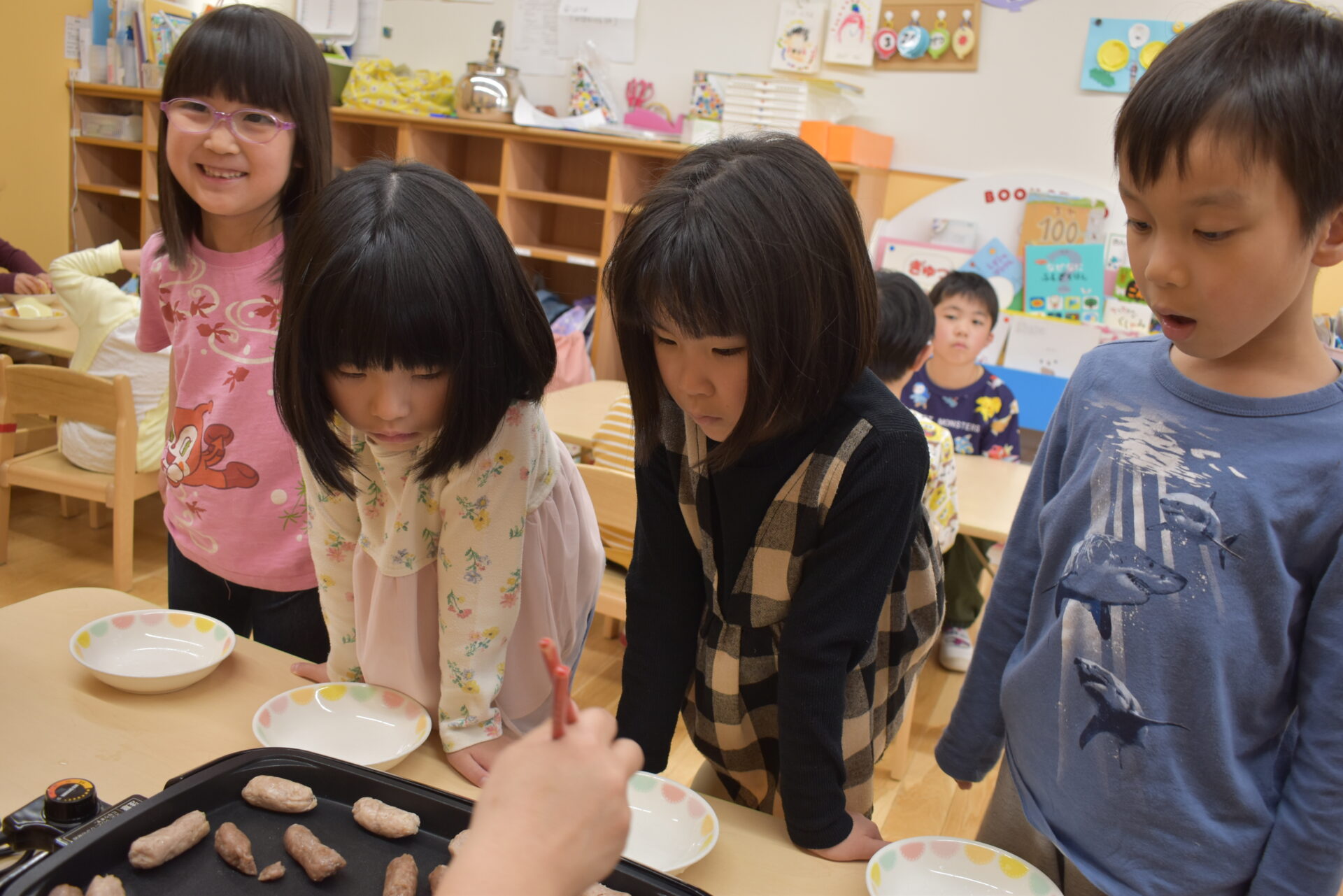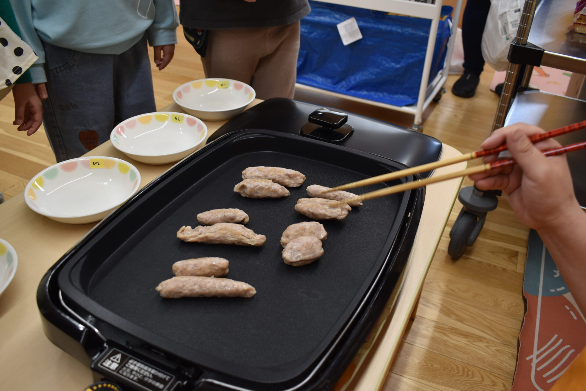 ⑤最後にお好みで焼き目をつけます。(ここも保育者がお手伝い)
