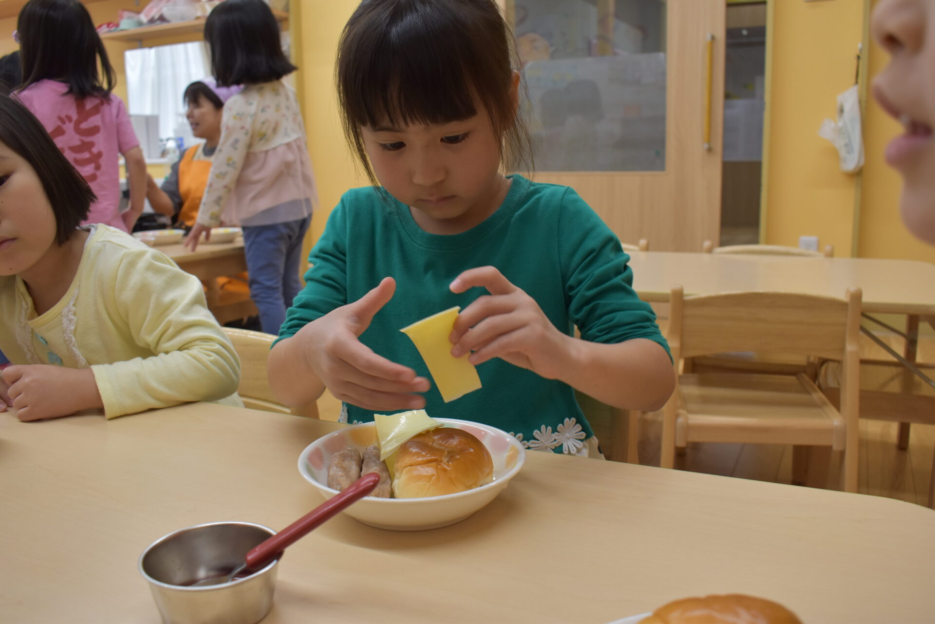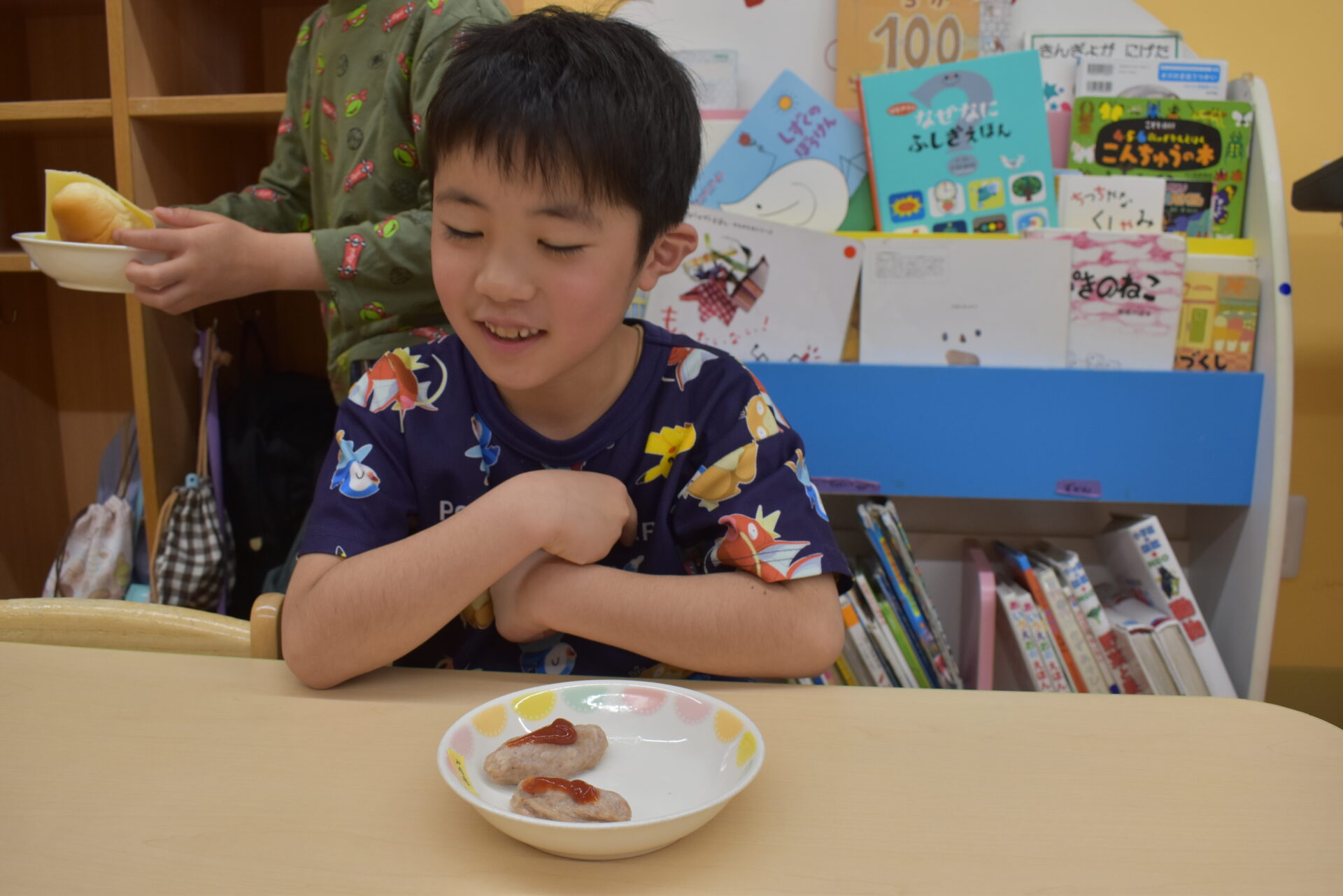 順番にパンに挟んだり、そのままケチャップだけで食べたり、中にはチーズとケチャップの両方をトッピングしたりと、それぞれ自由に味わって食べ進めていました。