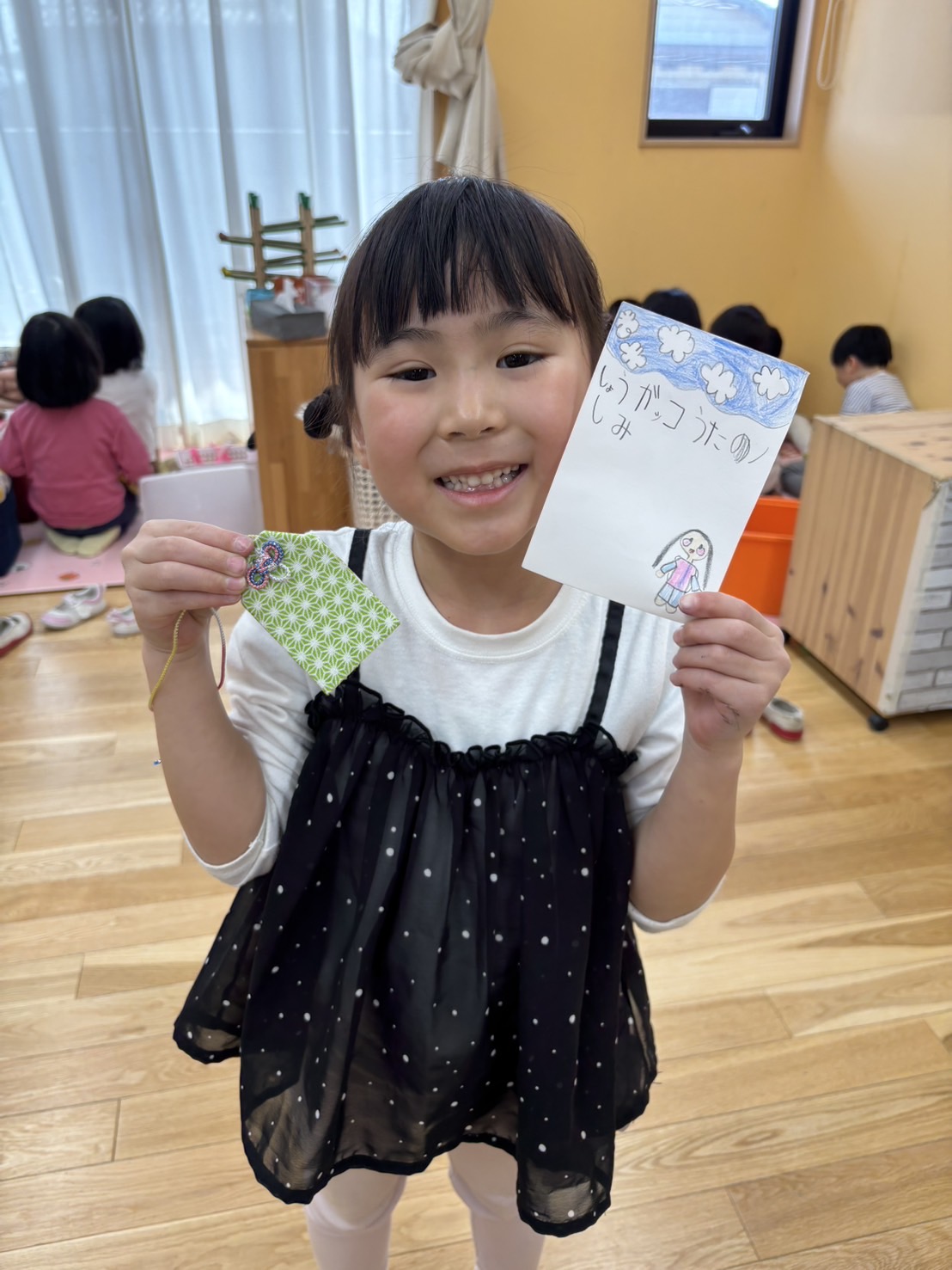 この中から好きな柄を選び、自分達で願いを込めた紙を入れて作ってみました!