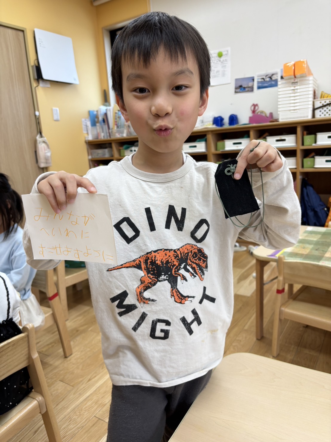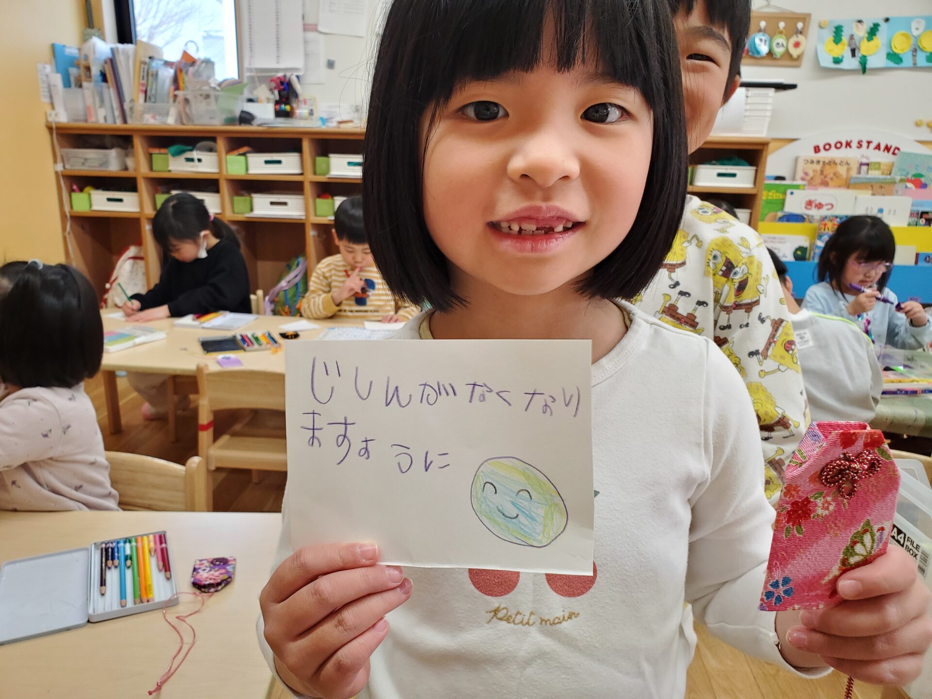 ではここからは、願いや希望、目標など子ども達が書いたそれぞれのお守りをご覧ください。