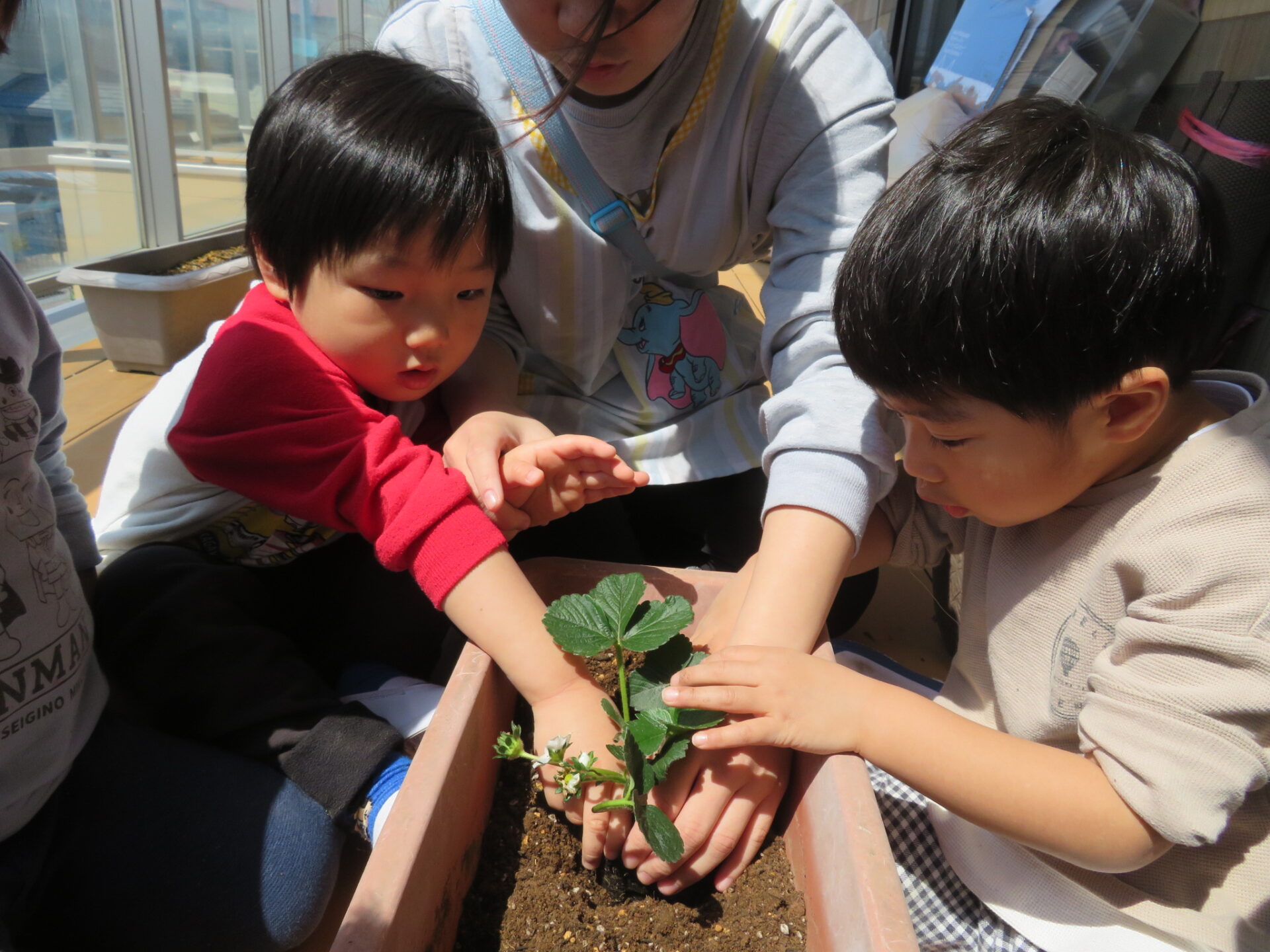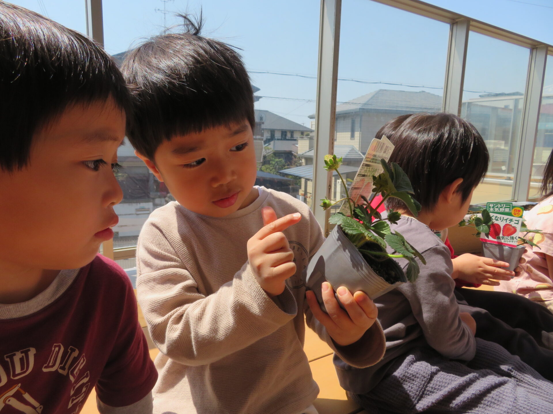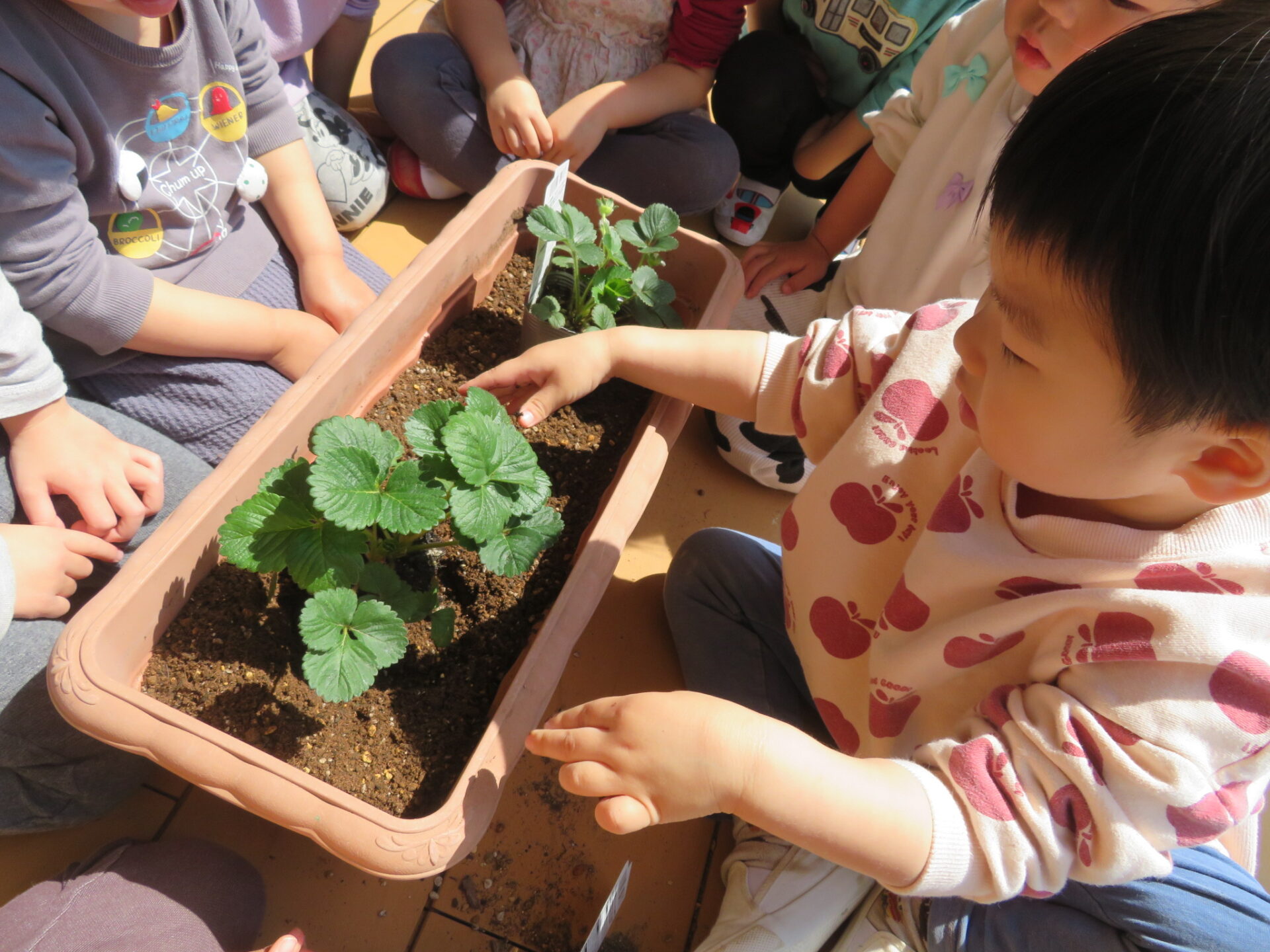 「もし,お野菜や果物を育てるとしたら,どんなものがいい?」と,ある日尋ねてみると,「イチゴがいい!」「イチゴ育てたい!」と即決で答えてくれた3歳児の子ども達。