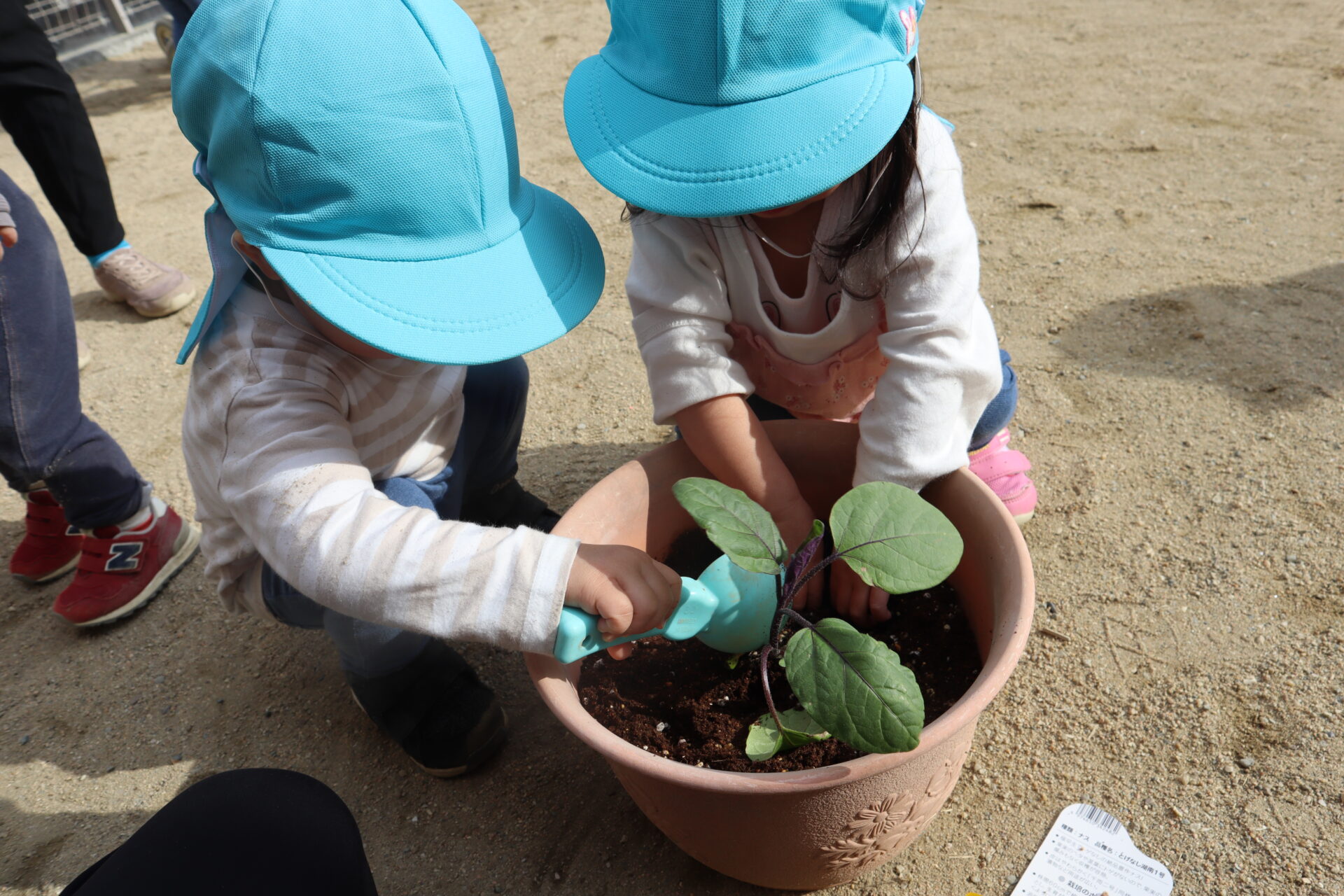 「優しくね!」と声を掛けると慎重に土を入れたり、手で優しく土を押す場面もありました🌟