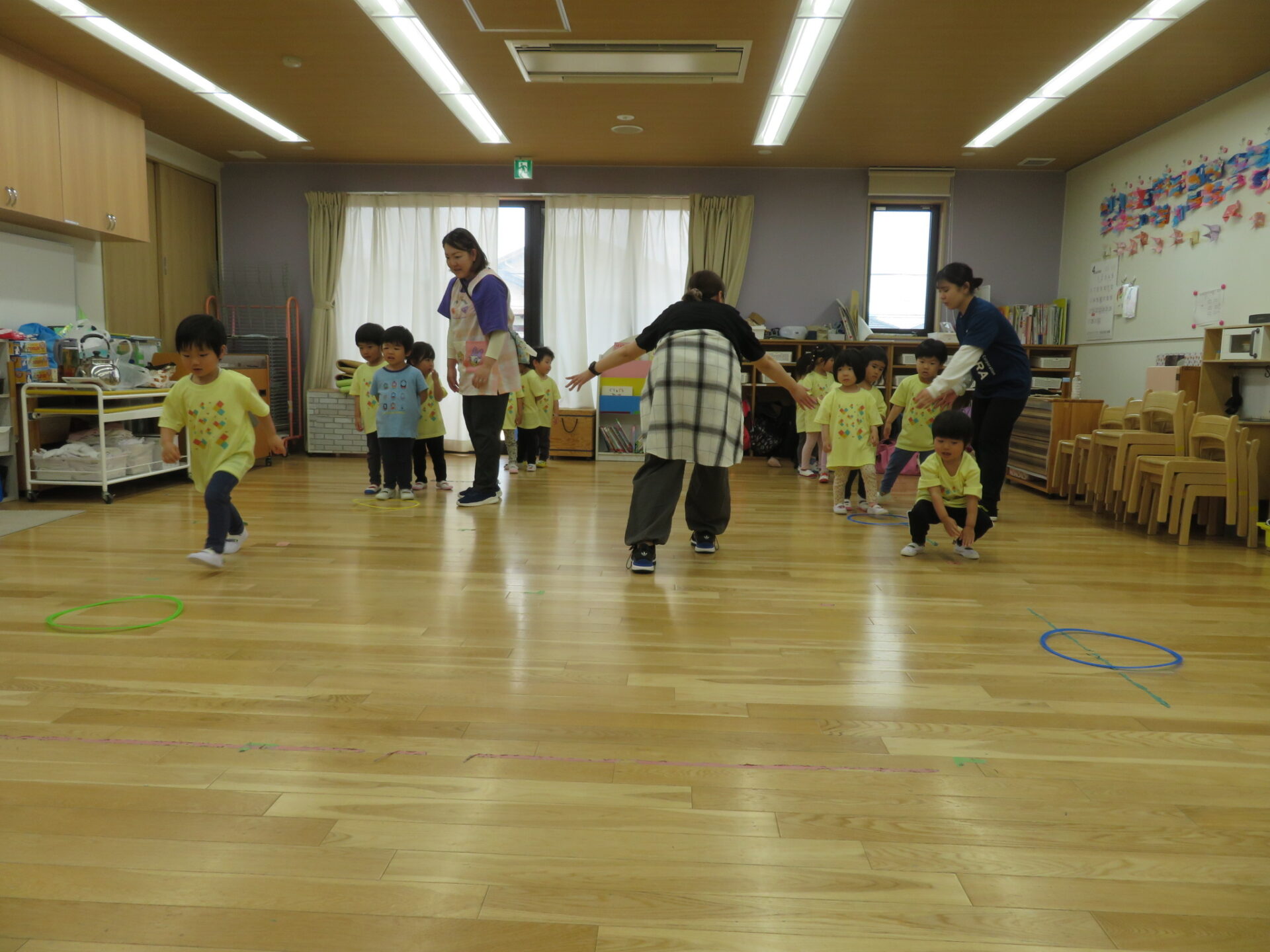 「これ、出来るかな?」と講師が尋ねると「出来るよー!」と様々な動きに挑戦です。