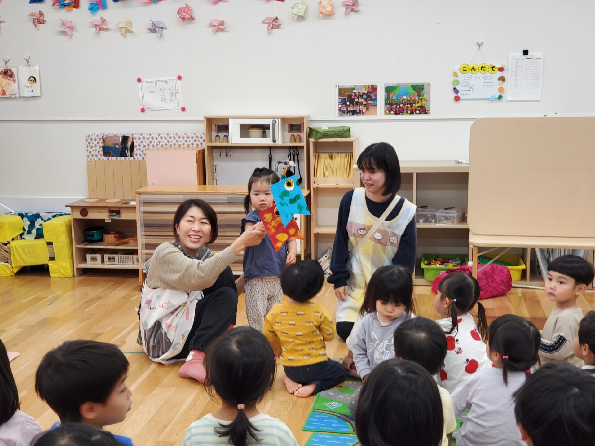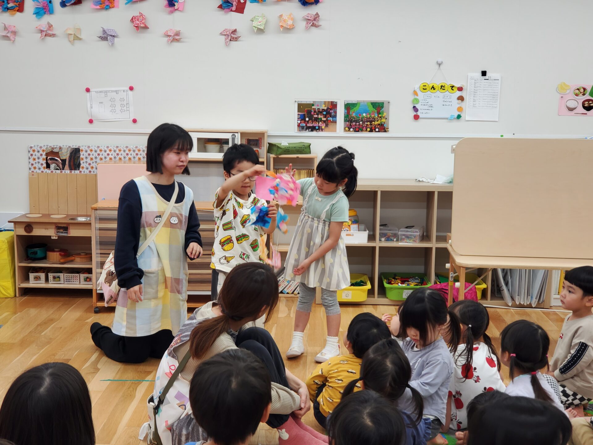 初めて見るこいのぼりの手作りおもちゃに大興奮で、ゲーム中は大盛り上がりでしたよ!