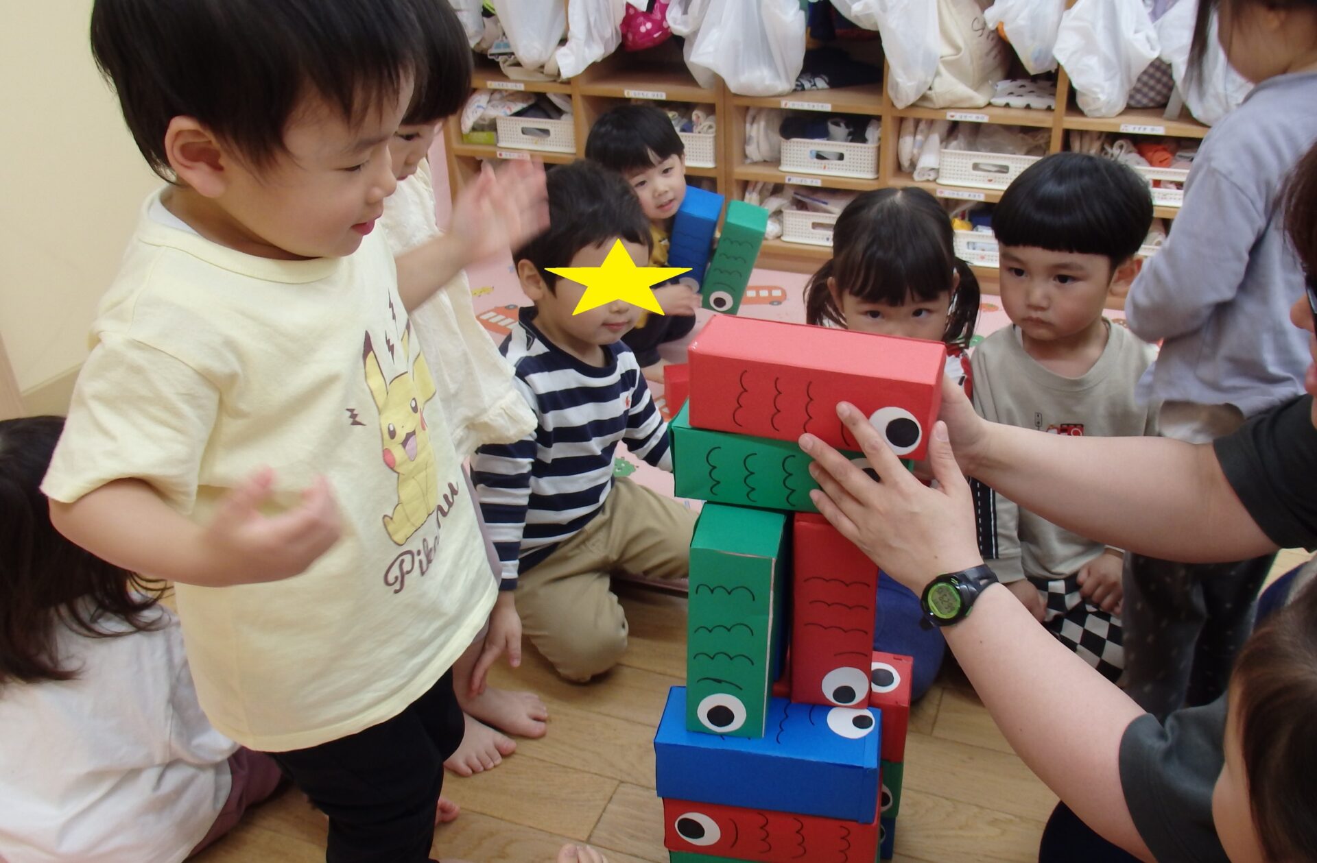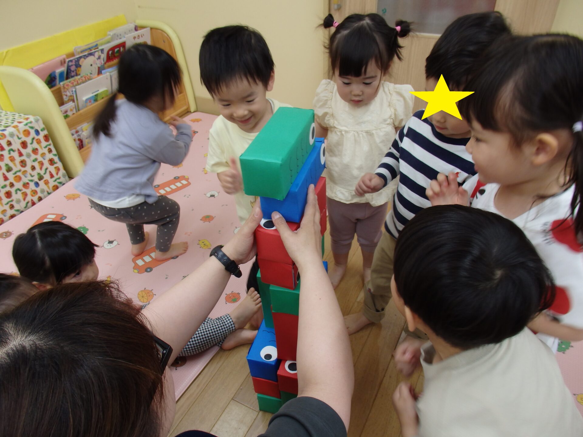 乳児クラスは【こいのぼり積み木】で遊び・・・