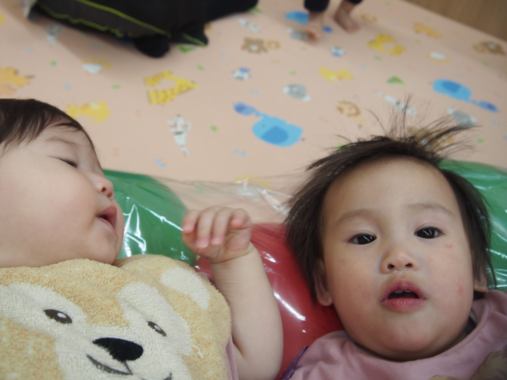 お友だちと寝転がったりと、風船マットを満喫していました!