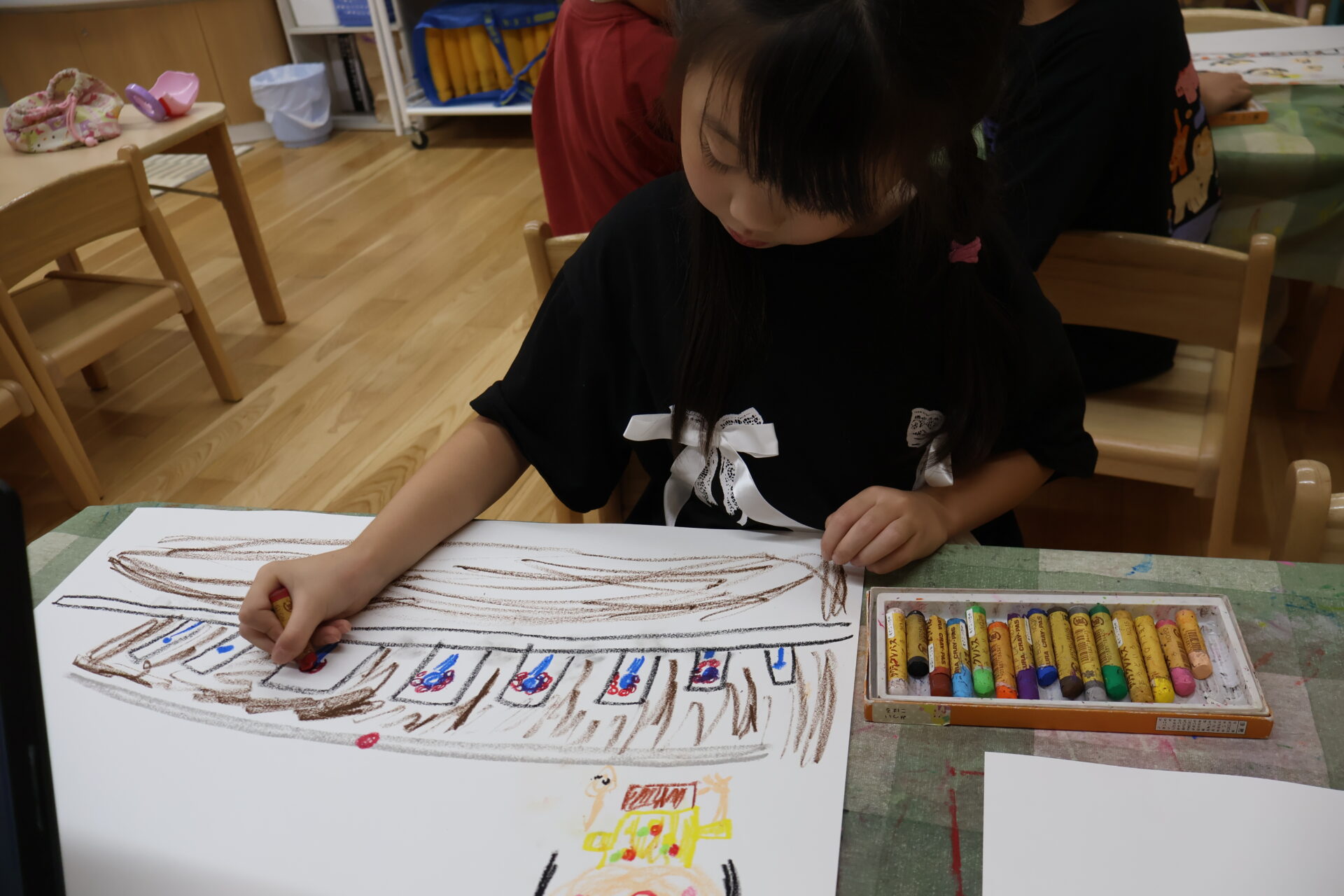 くじら組では、運動会で楽しかったこと・頑張ったことをテーマに絵を描いてみました。