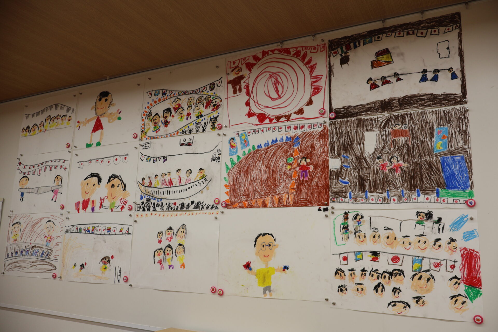 子ども達の中でブームになっている”ミャクミャク”を描いている子どももいました。