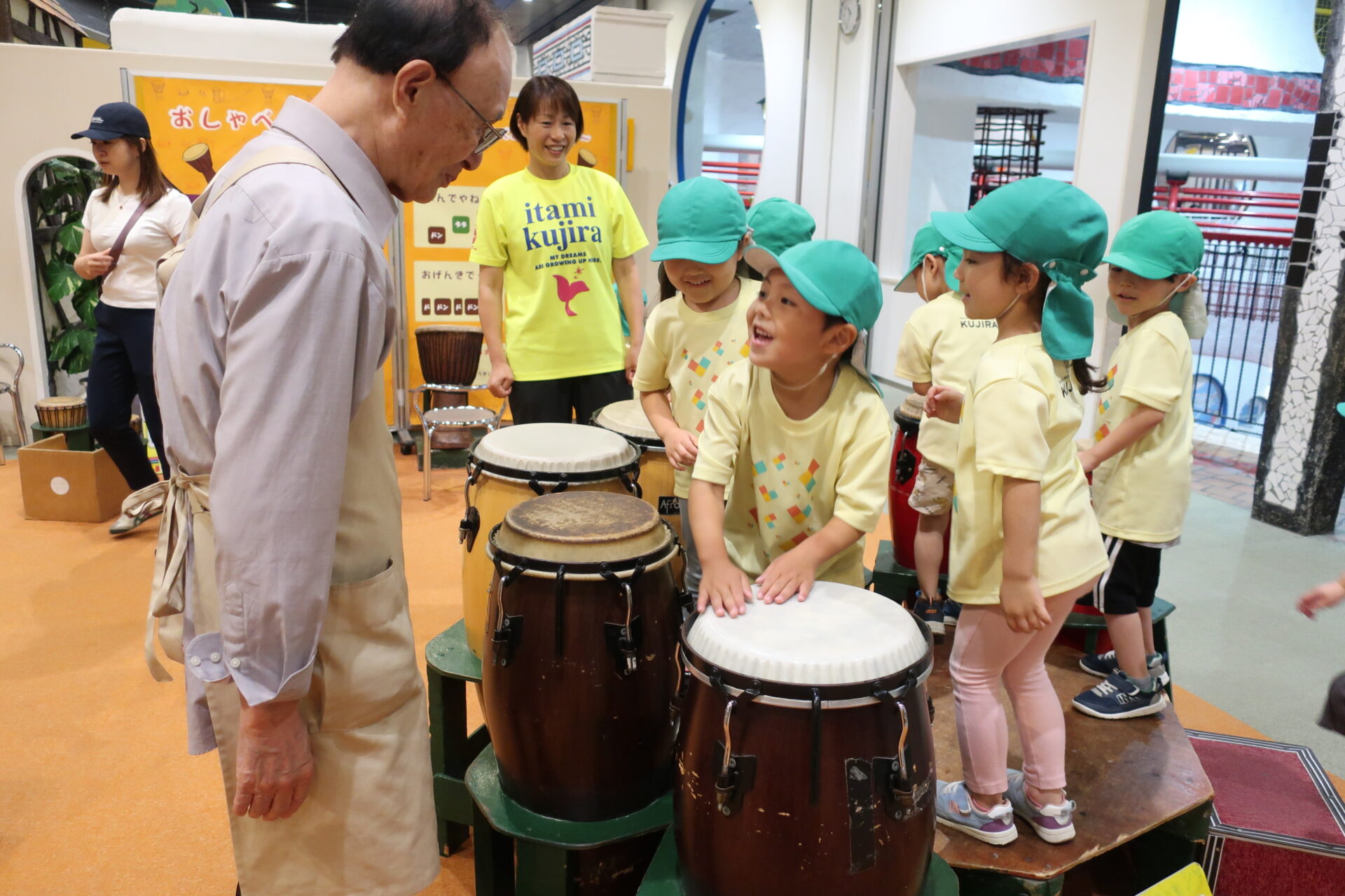 友だちと一緒に叩いてみたり、お店の人に叩き方を教えてもらいました。