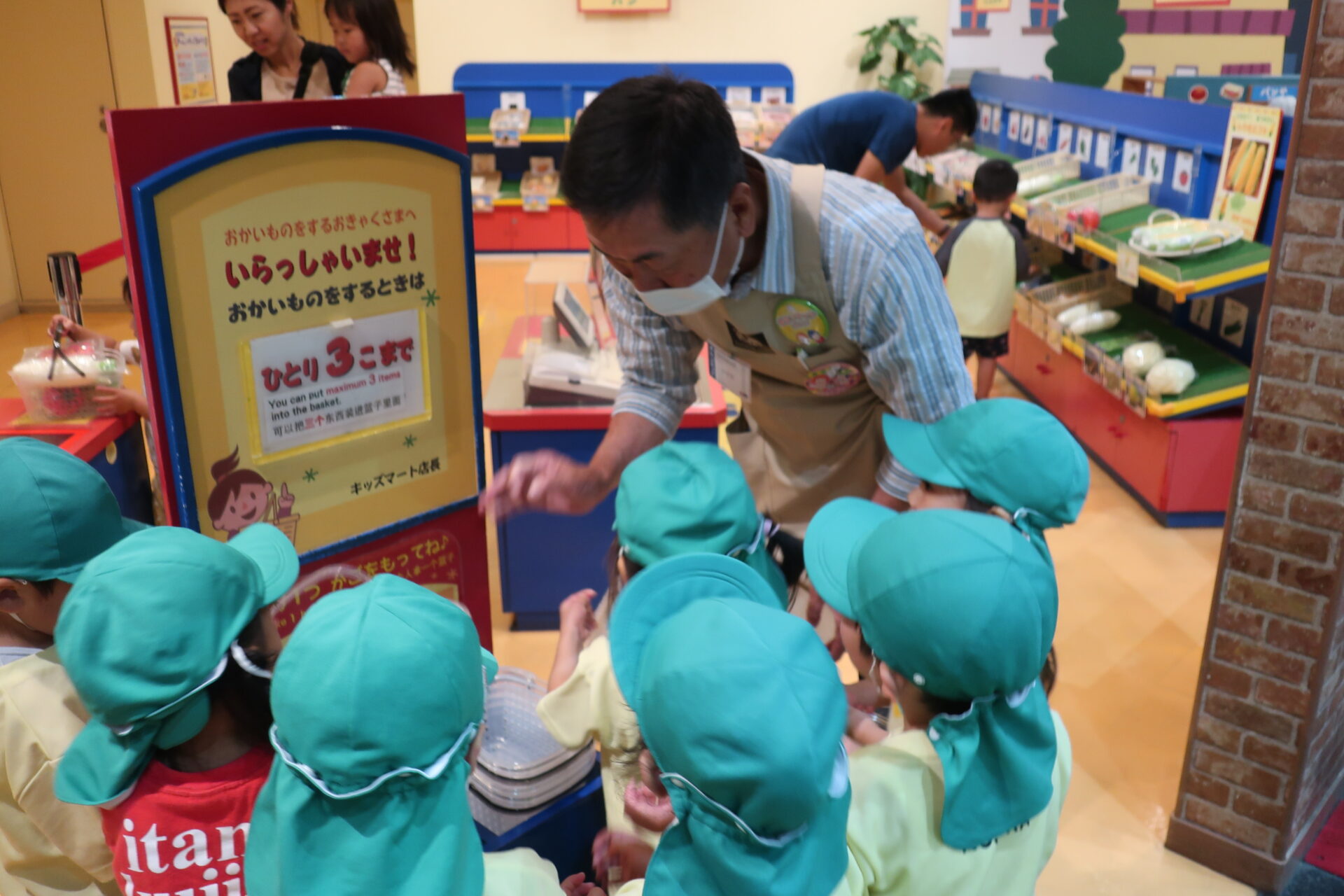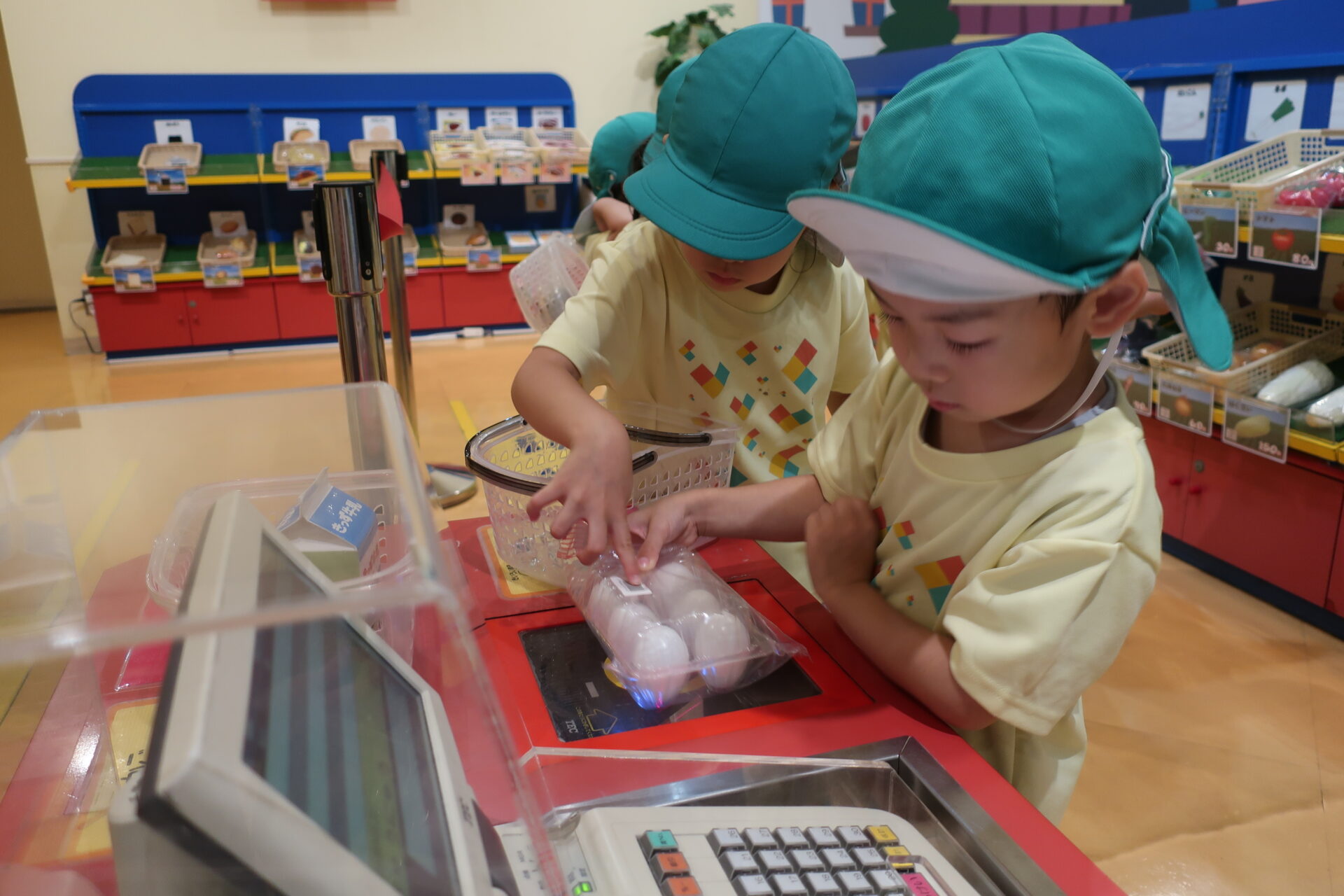 自分でお買い物やピッとレジを通す体験もできる「キッズマート」にも行きました。