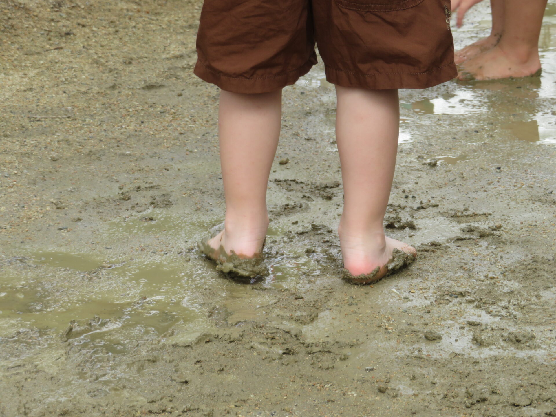 どうやら、水たまりが乾いて出来た粘土質の土が気持ち良いようで、ペタペタ音を鳴らしながら感触を楽しんでいました。
