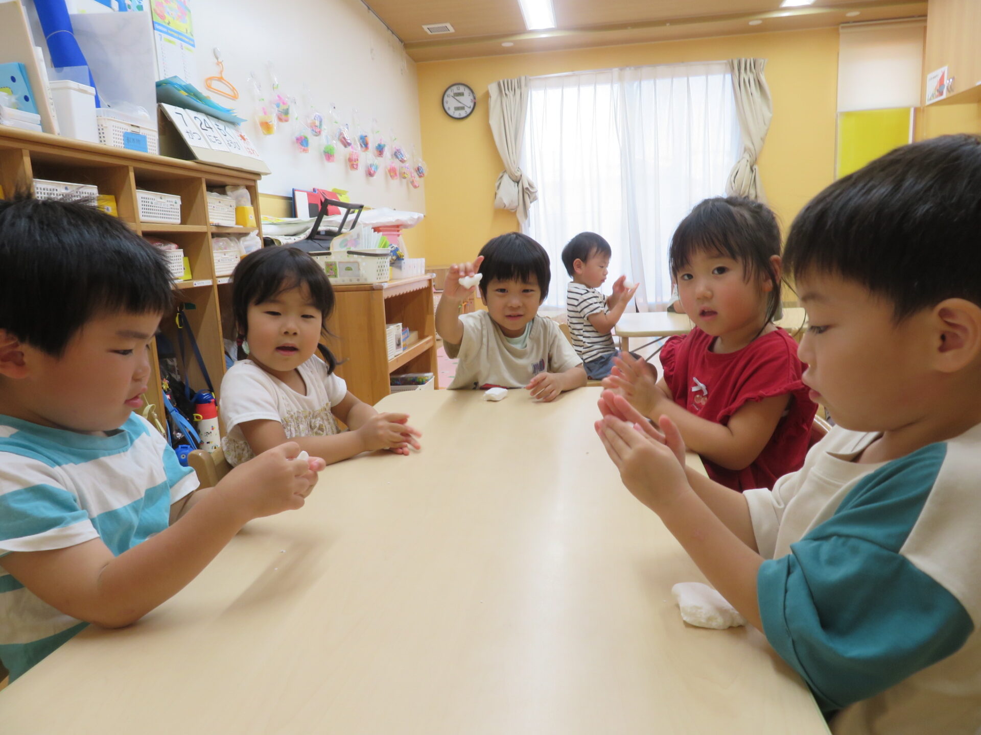 「これ、面白い!」と言いながら、こねる感触を楽しんだり、