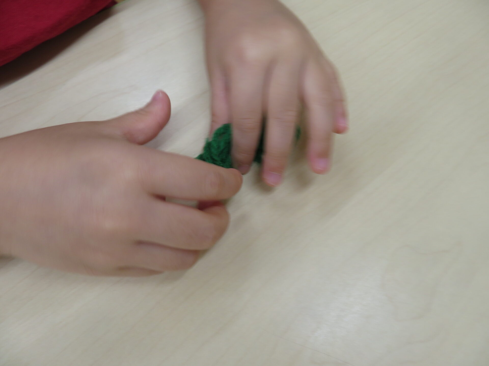 保育士に手伝ってもらい、真ん中を結んでもらうと完成です。