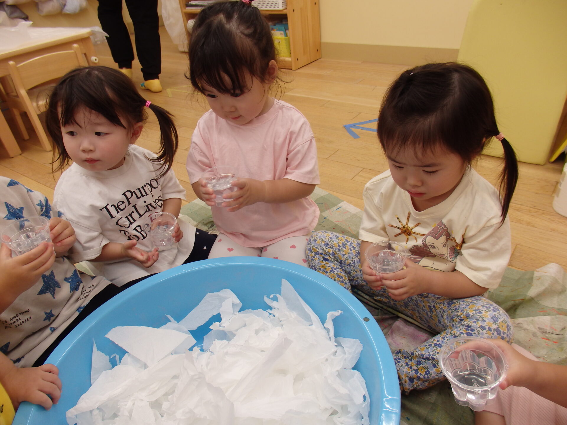 トイレットペーパーからどんどん形も感触も変わっていくことを楽しんでいた子どもたちでした。