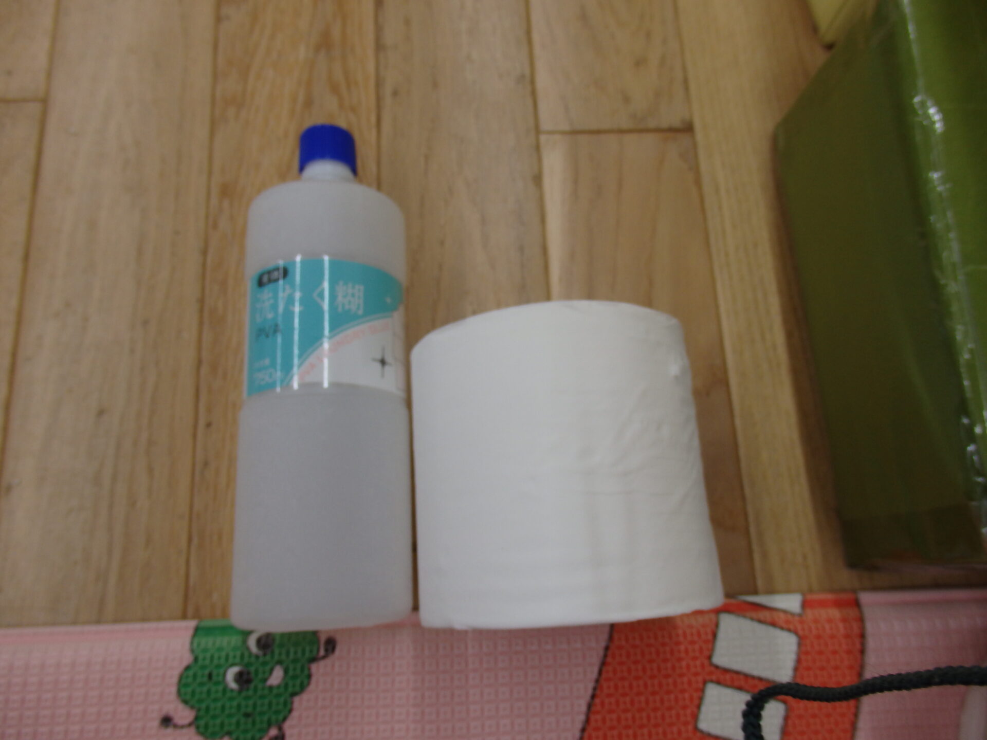 トイレットペーパーと洗濯糊と水を混ぜて作る、パルプ粘土で遊びました。