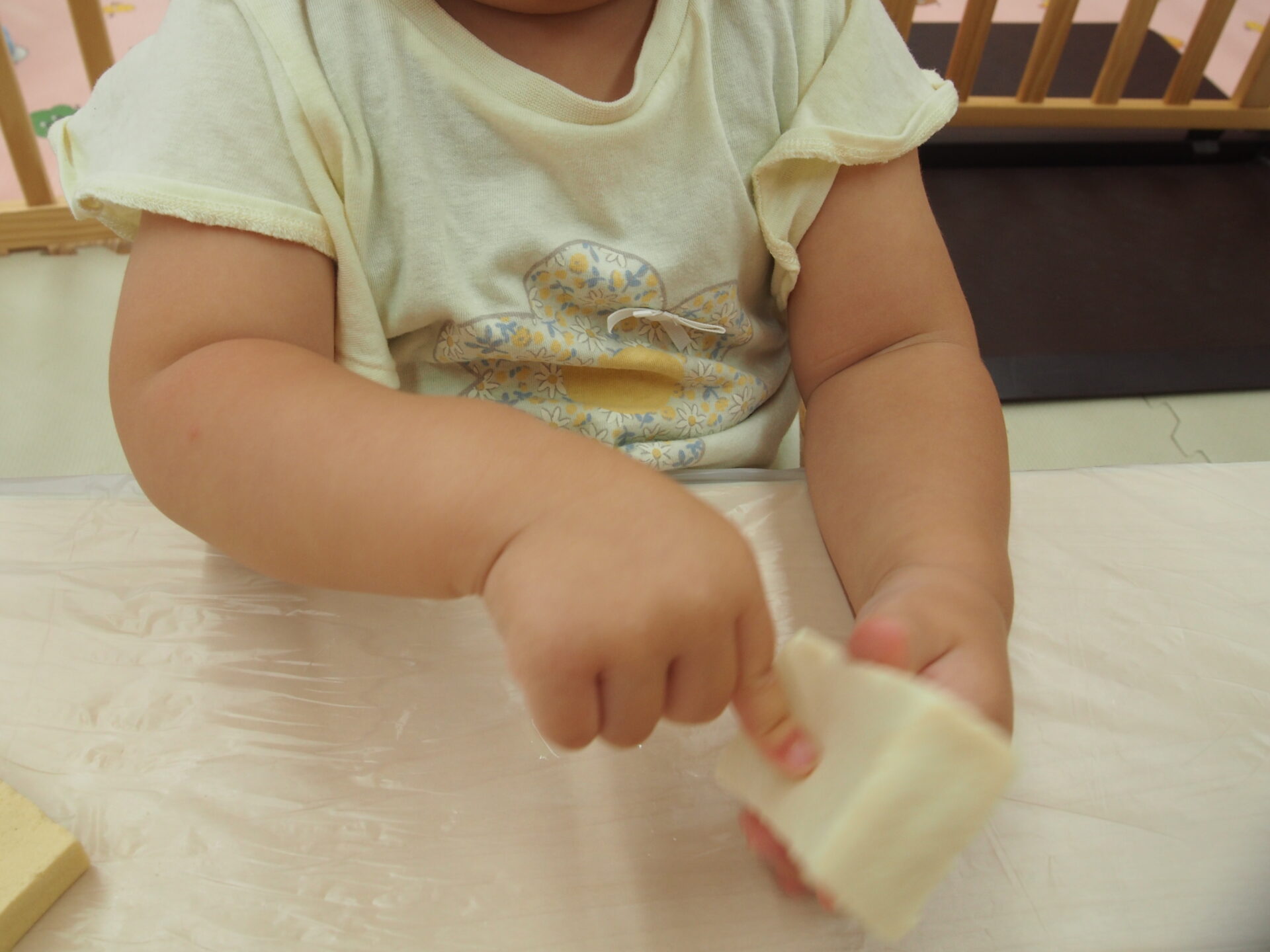 いろんな方法で感触を味わい、次第に高野豆腐の形にも変化が出てきました。