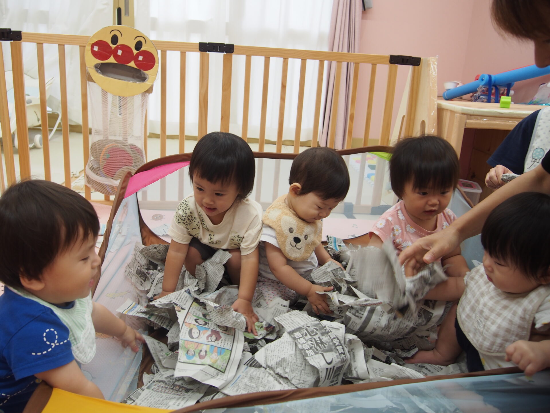 新聞紙のプールを作ると次々入ってきました。