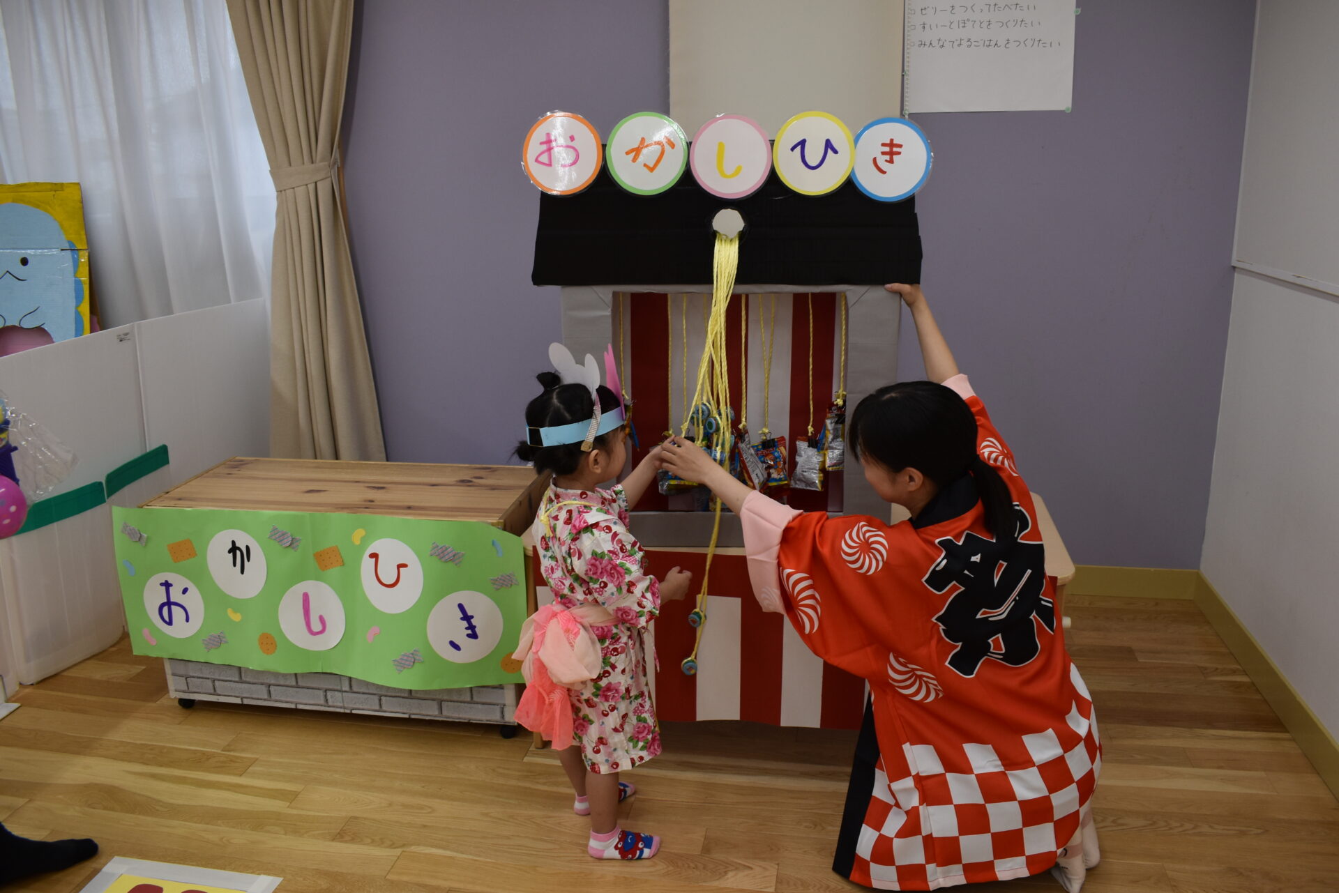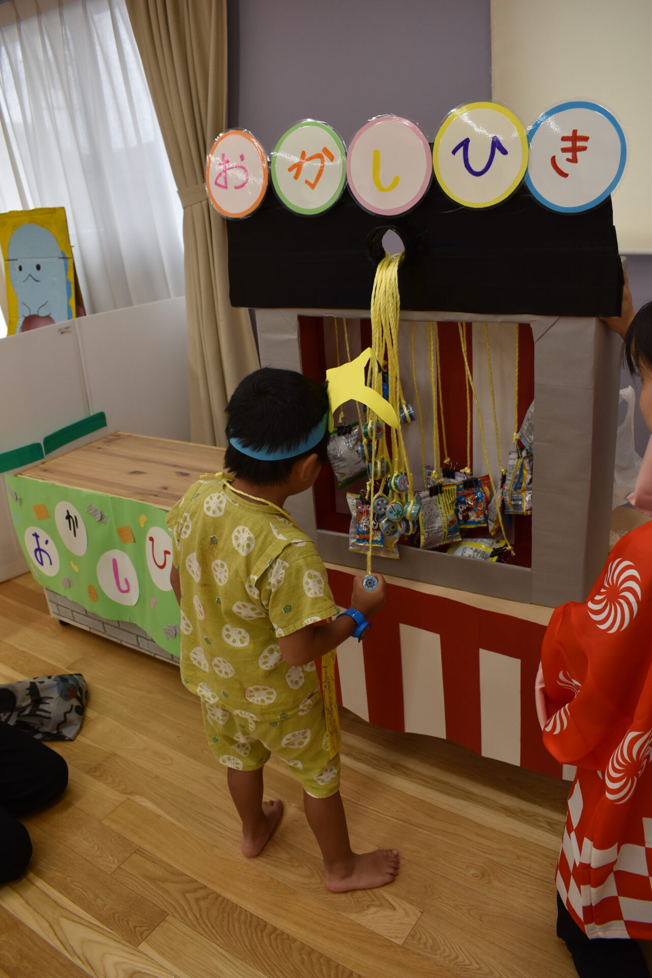 お菓子引きでは選んだヒモを引きながら「どのお菓子に当たるかな~」とワクワクが止まりません♬