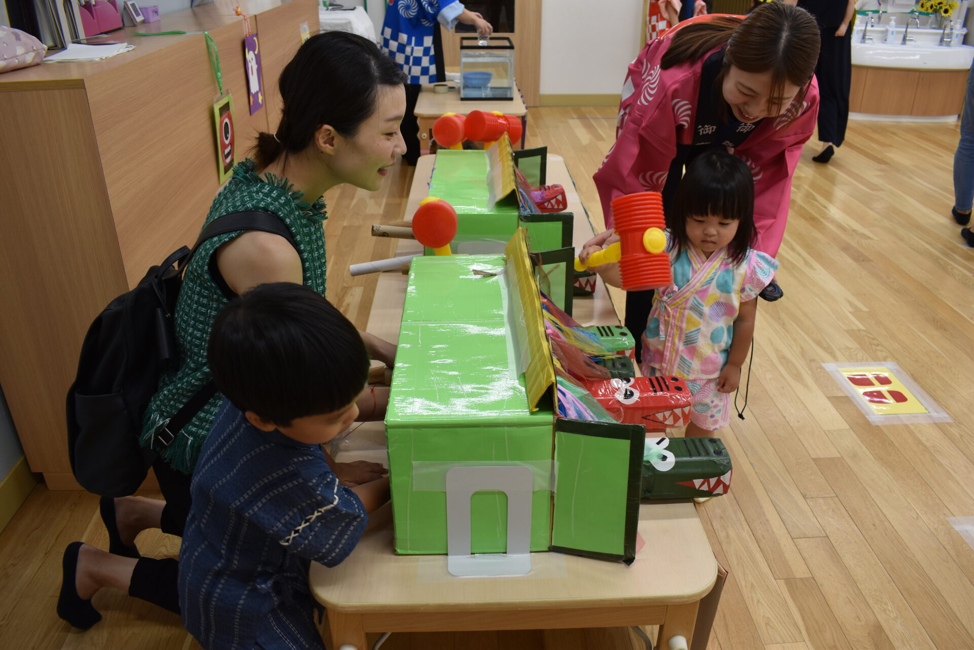 保育者が出し入れするワニを叩いたり、親子で楽しむパターンもありました。