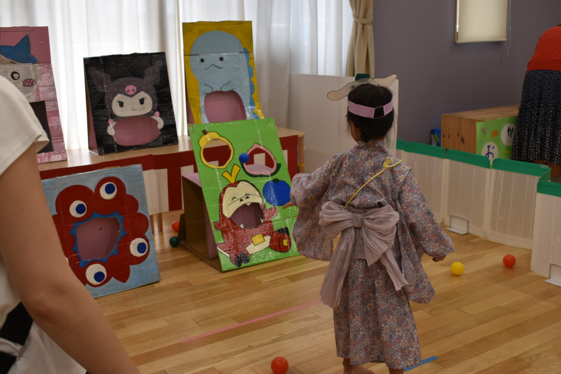 興味があるパネルに向かってボールを投げるルールで、0歳児~5歳児クラスまでどのクラスも楽しめるゲームです♬