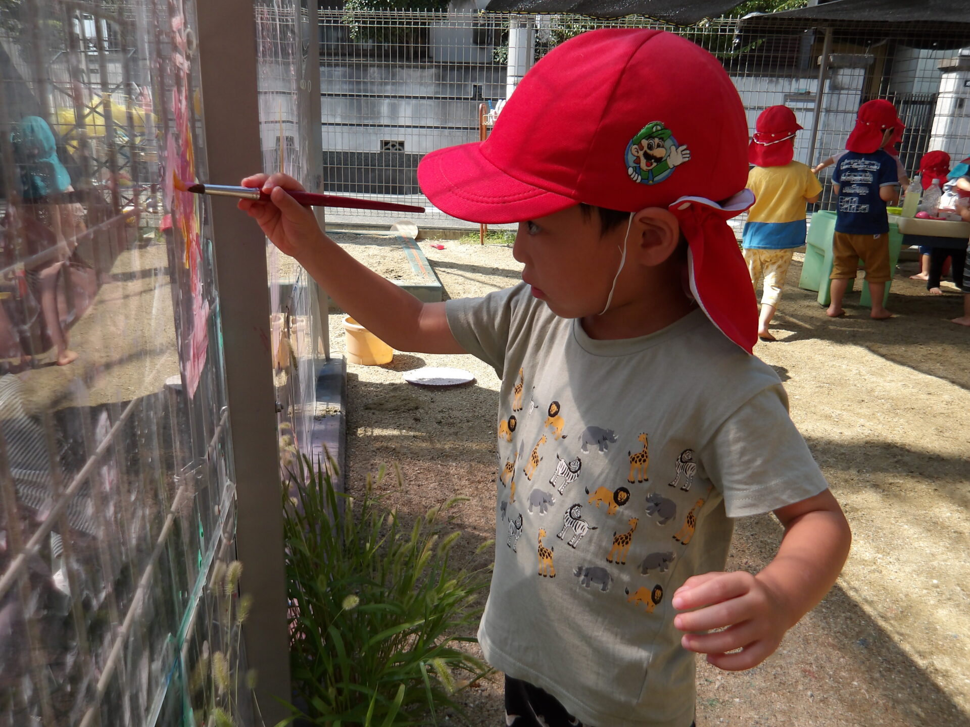 ホースから水が勢いよく飛び出すと、「きゃー!冷たーい!」と言いながら大笑いしていました。