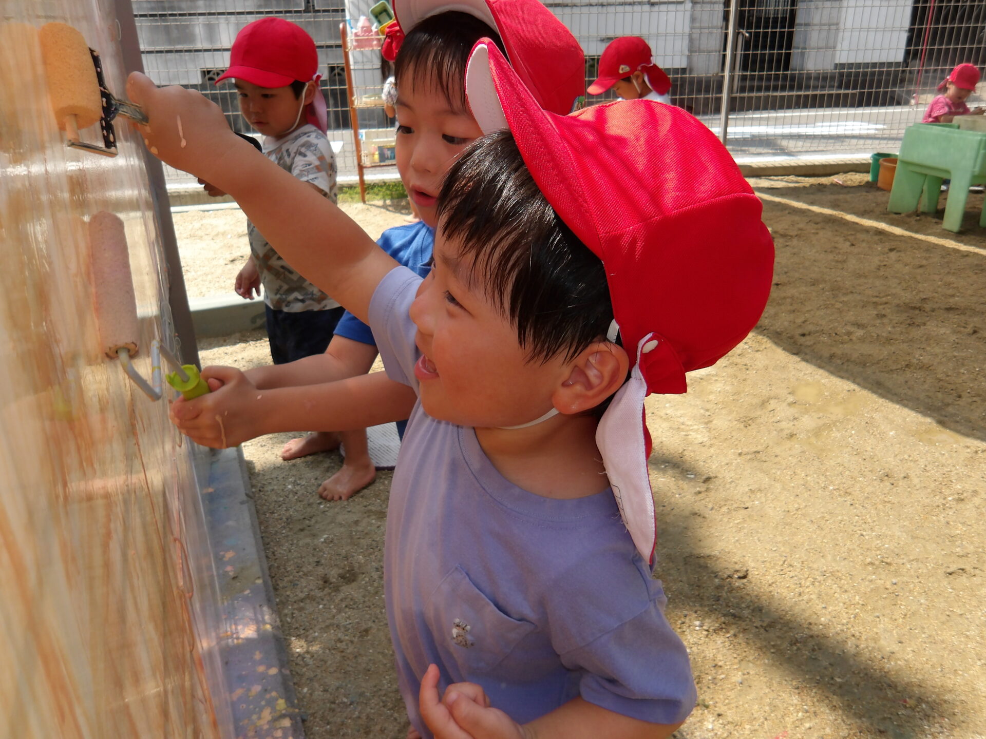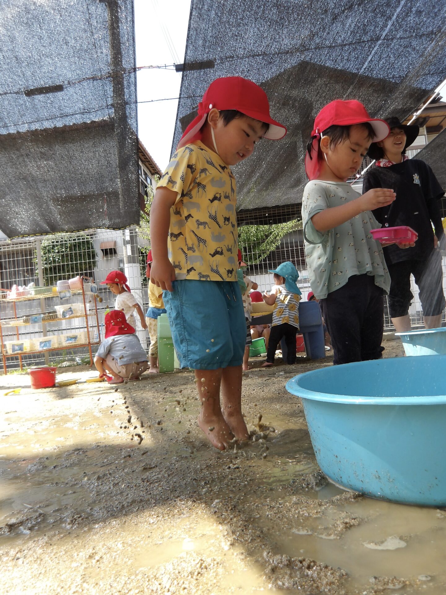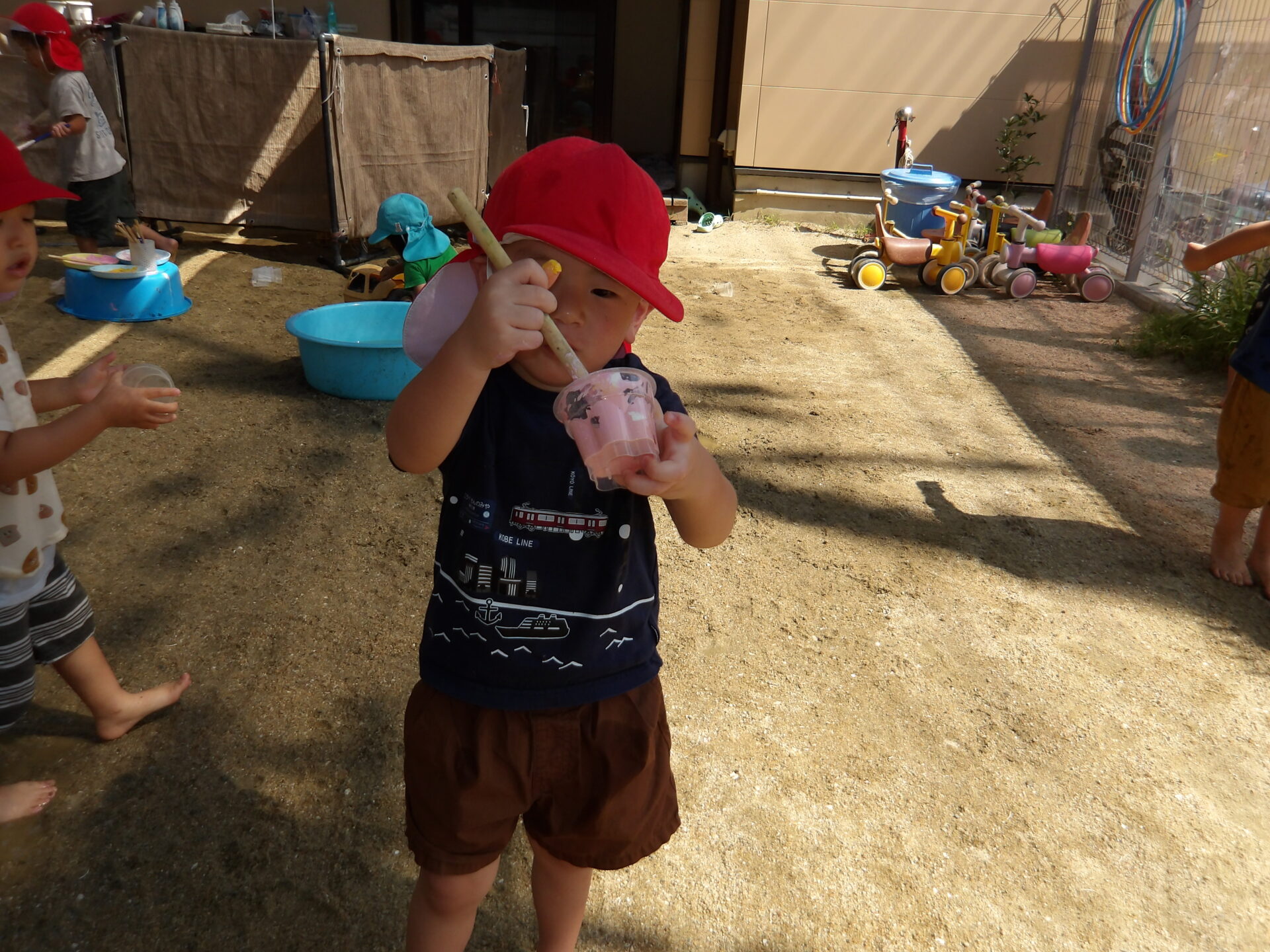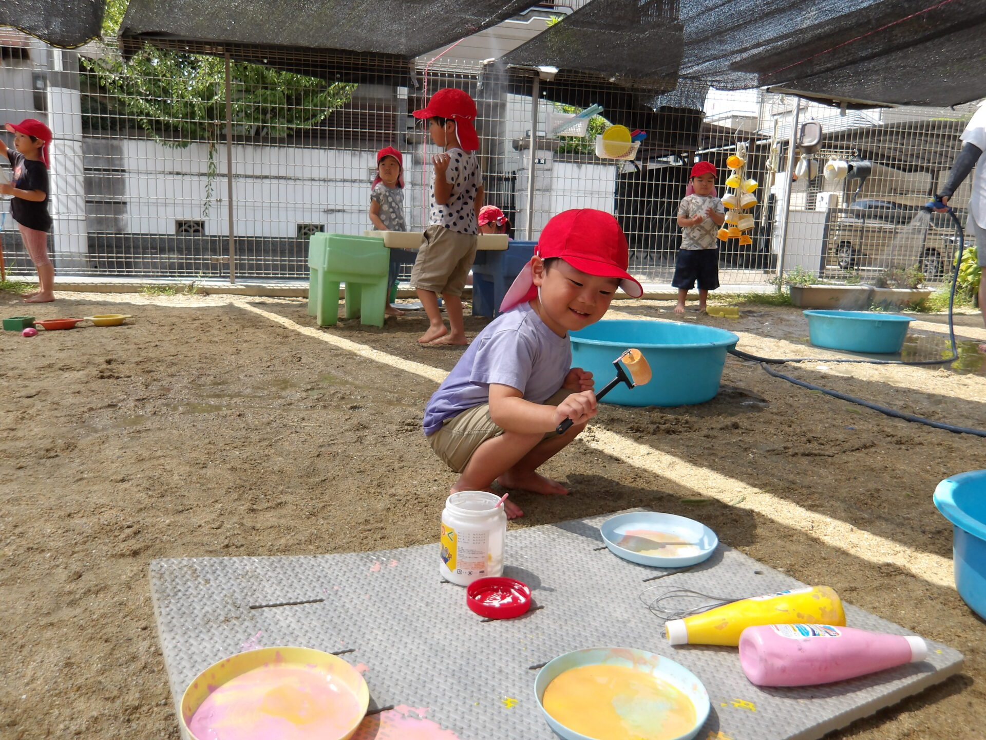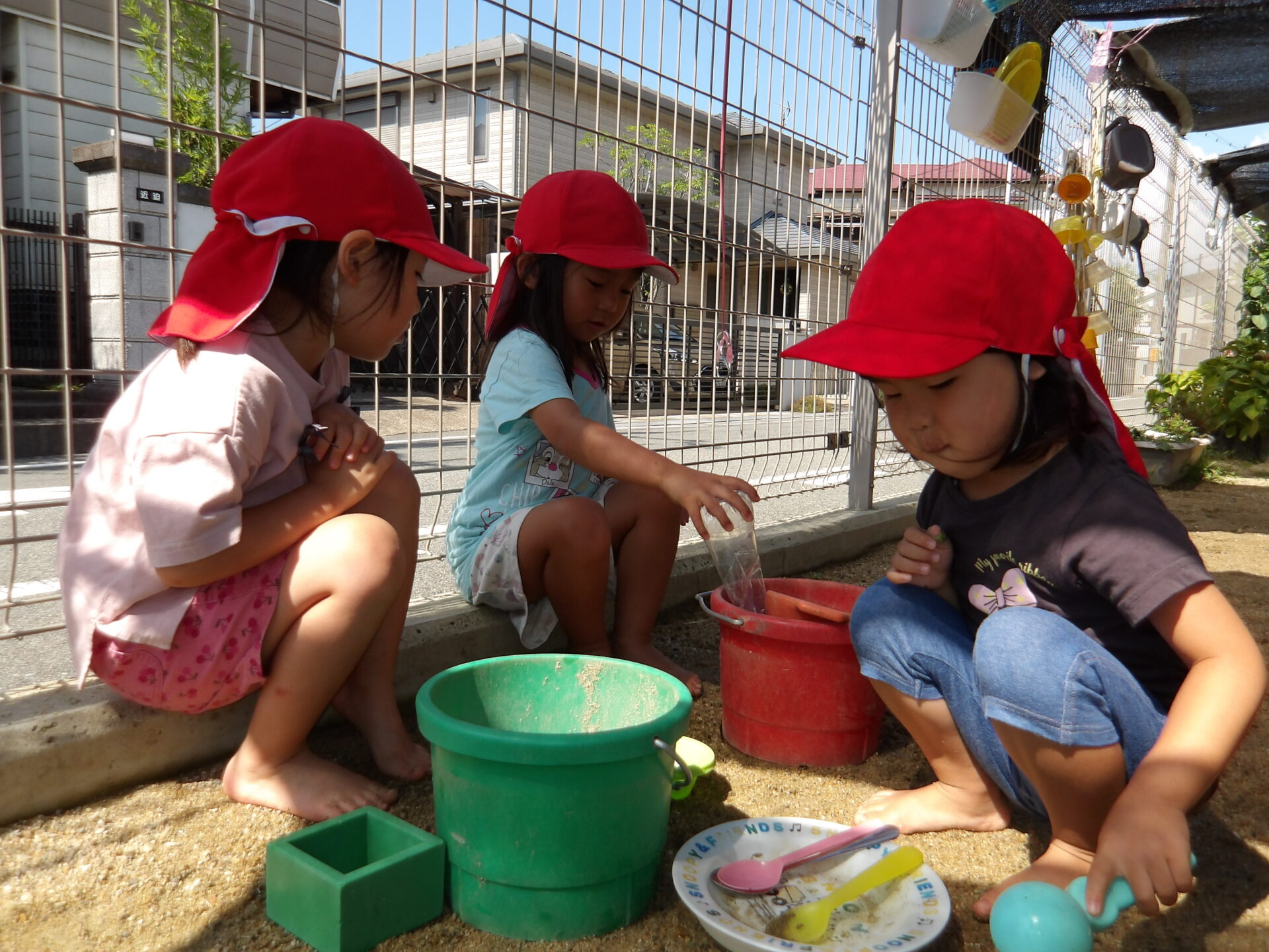 「いいよ!今日もドロドロの砂作ろうか」と相談しながら、その日の水遊びで何をするかを決めて楽しんでいます。