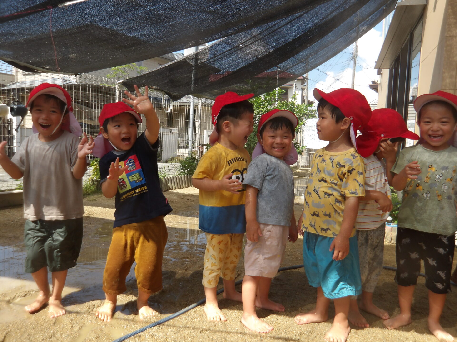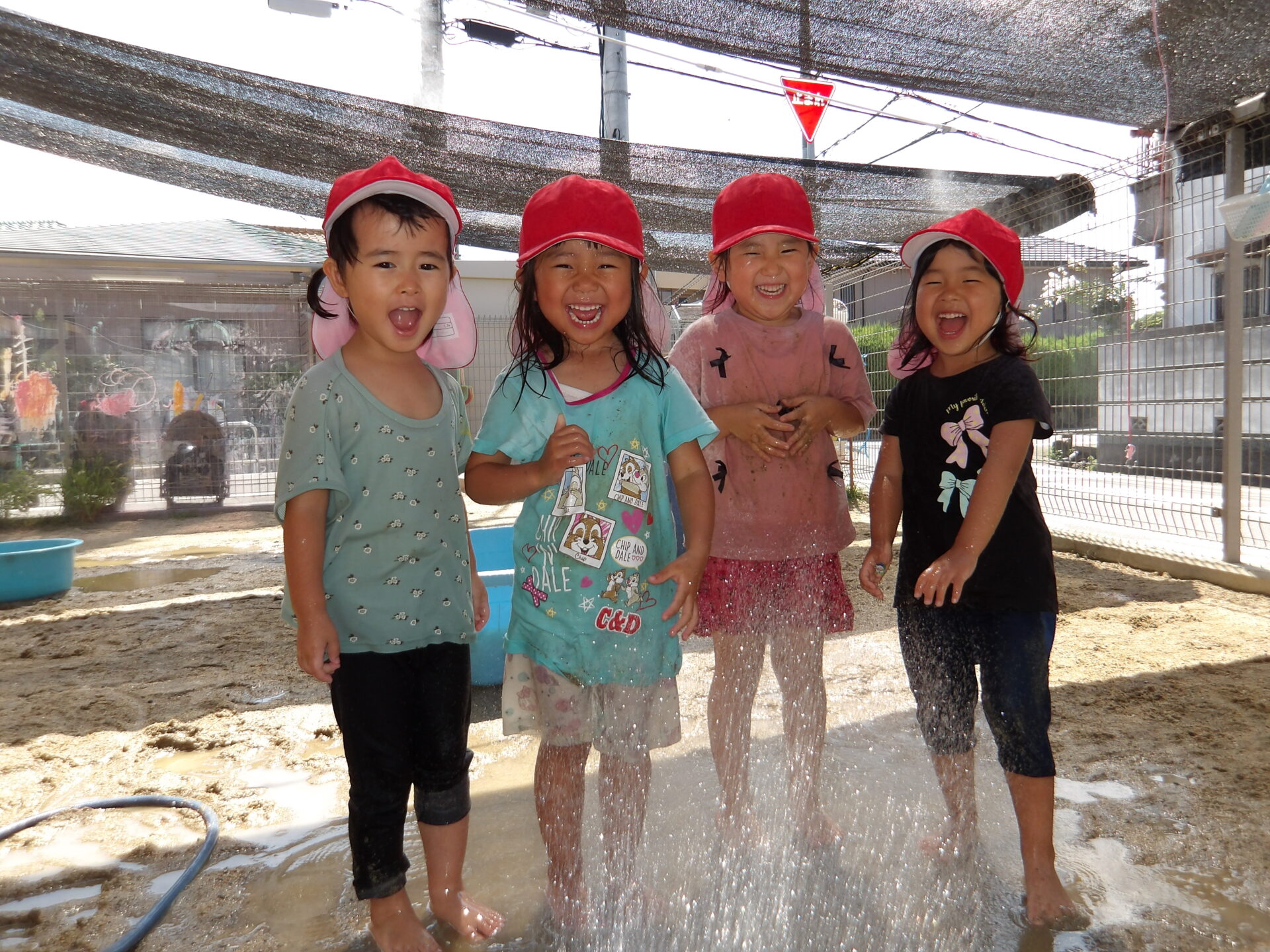 こちらの仲良し3人組の子ども達は、毎日水遊びが始まる前に