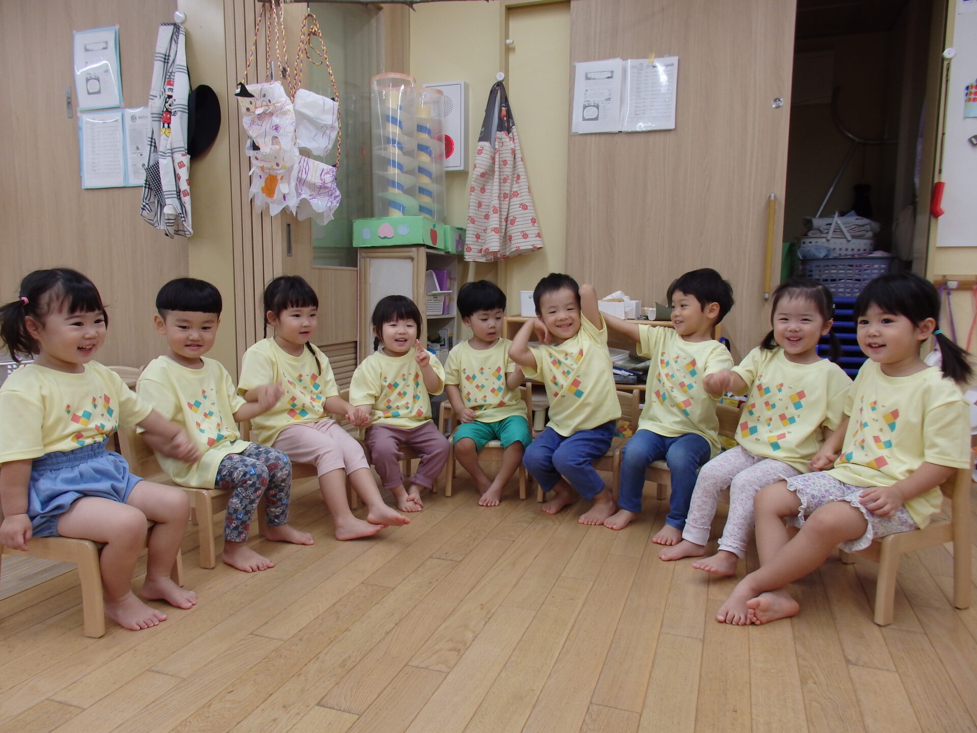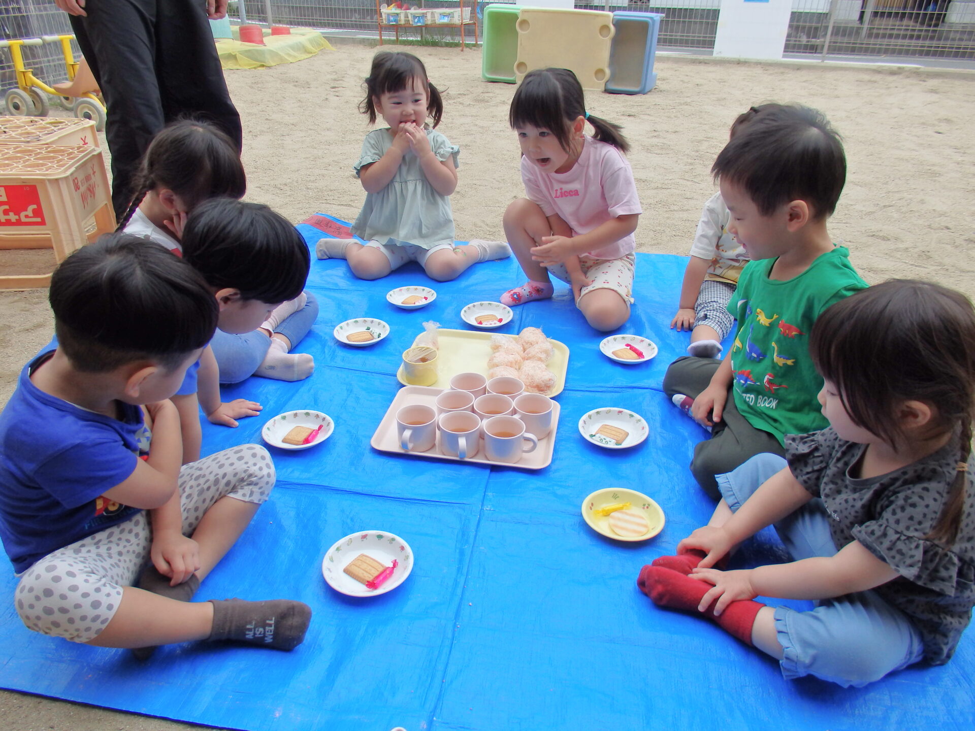 園庭に広げられたシートを見ると、「なんだかピクニックみたい!」とみんな大喜び!
