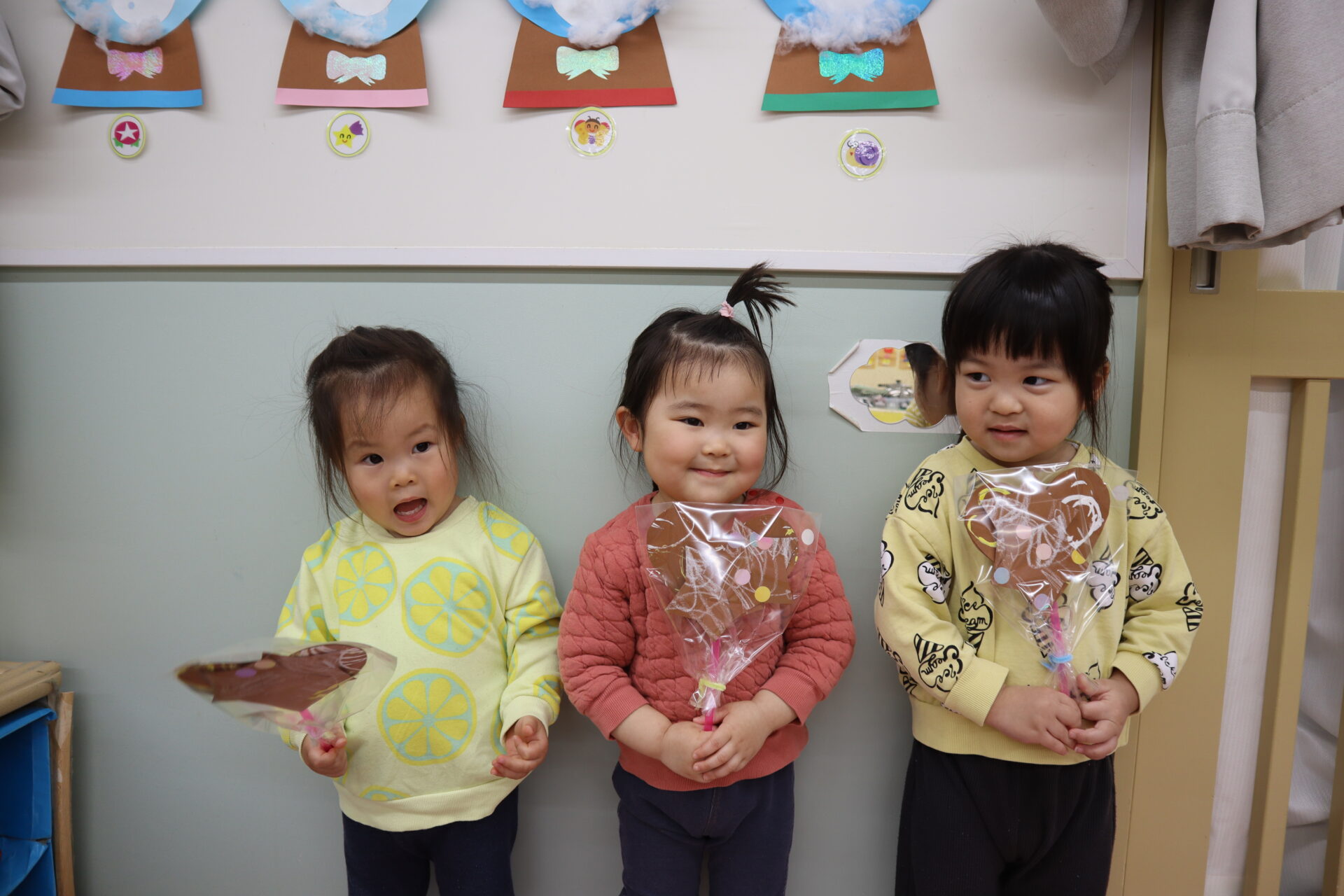 お家に持って帰ることをウキウキしている子どもたち「今日チョコ持って帰る?」と楽しみにしていました。