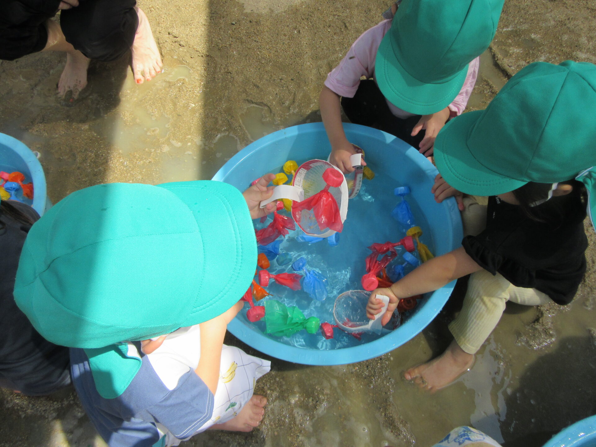 「赤い金魚取れたよ」や「青の金魚2個も取れたよ」など色や数を保育者に教えてくれました。