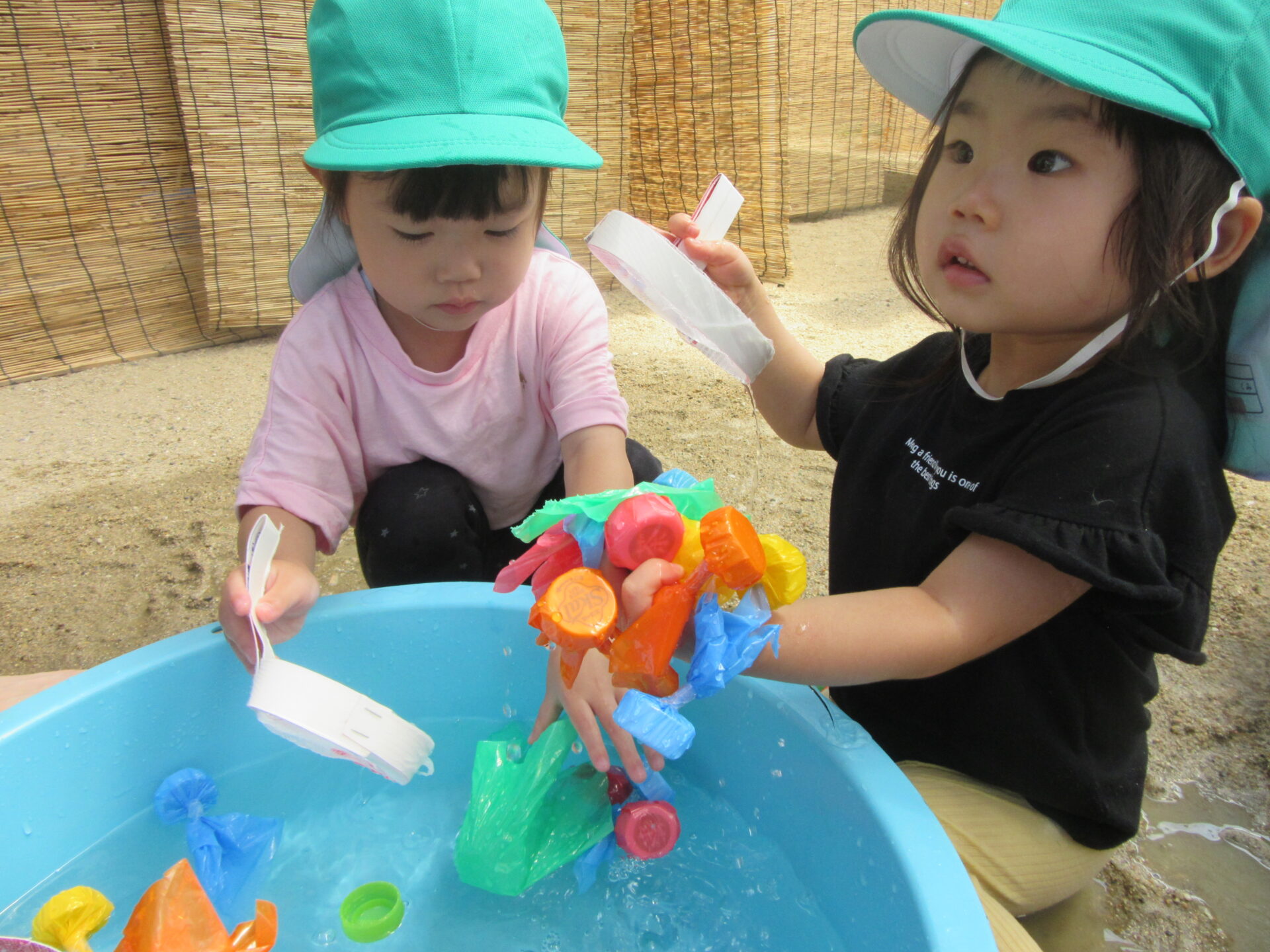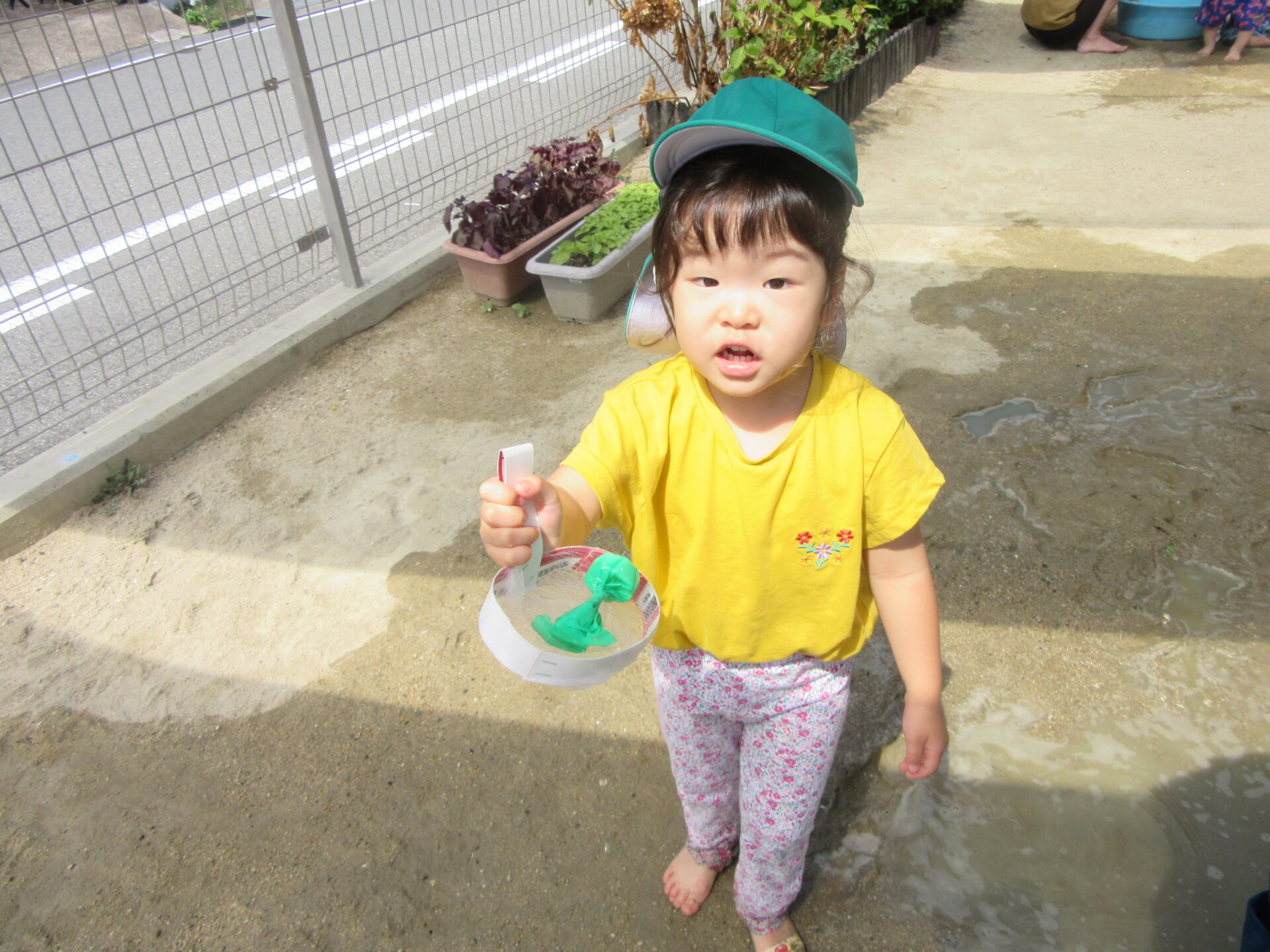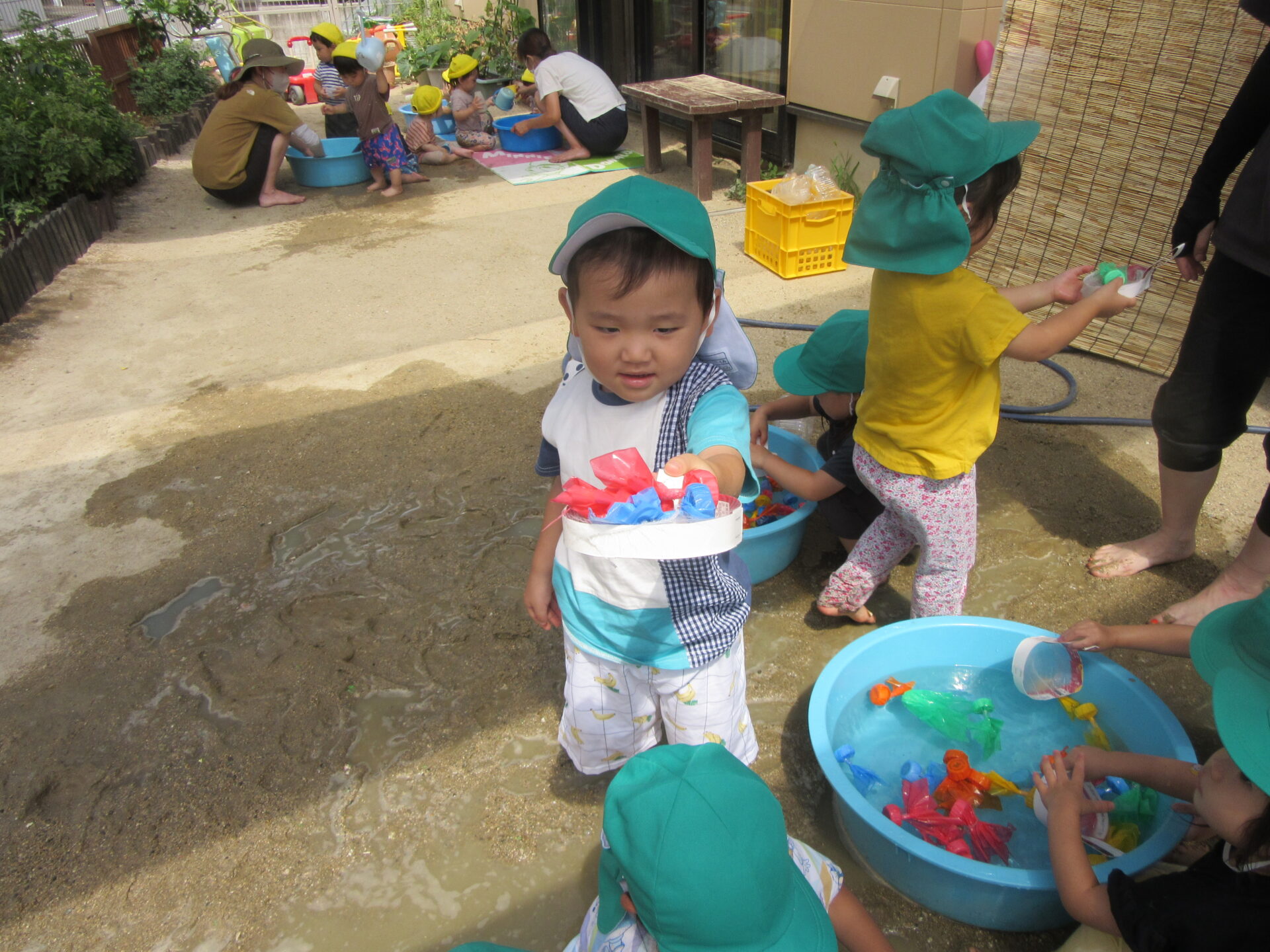 毎日「今日は水遊びある?」と保育者に聞いていつも楽しみにしてくれています。