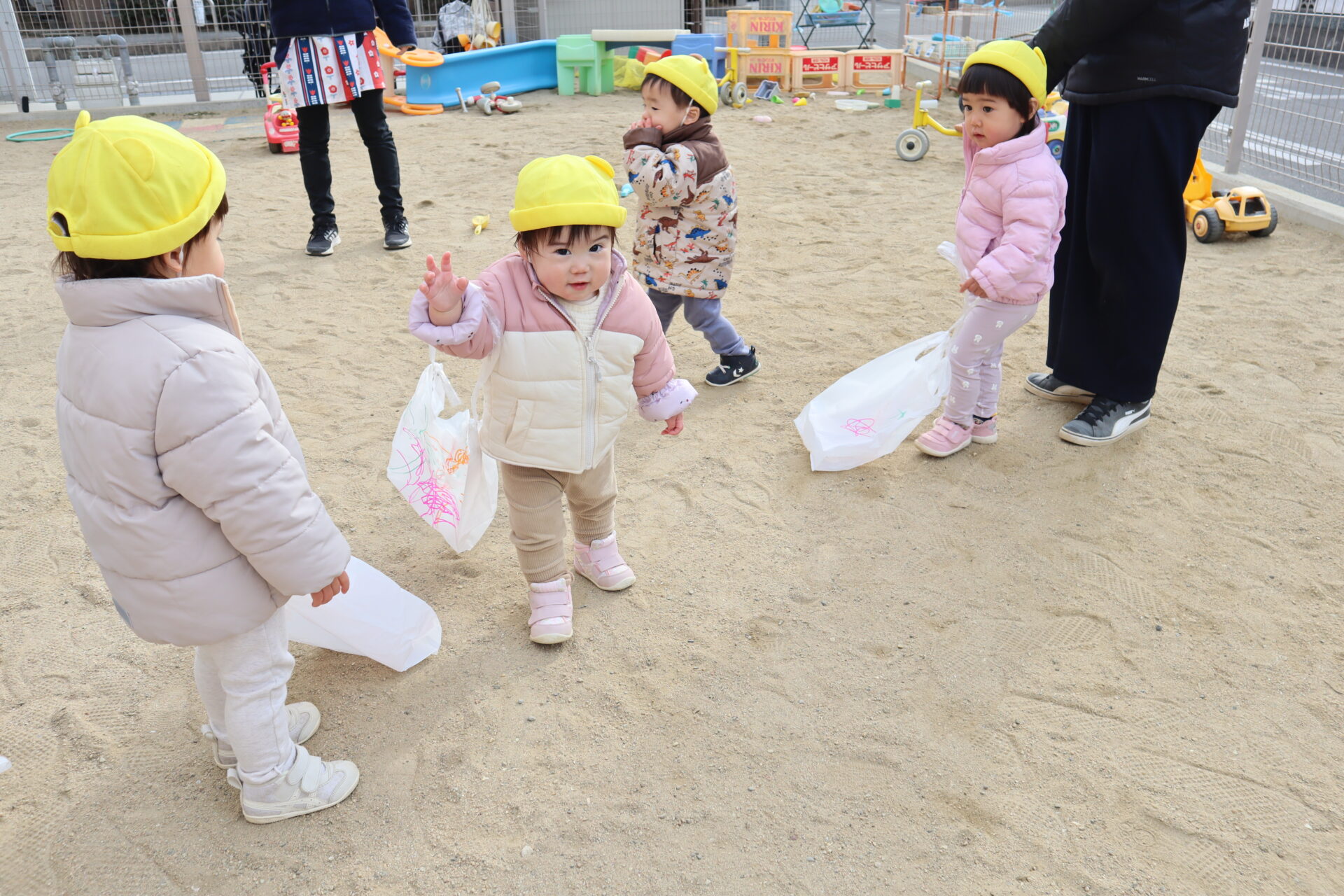 保育室内でも戸外でも遊べるお正月遊びに、うみ組も挑戦してみました。