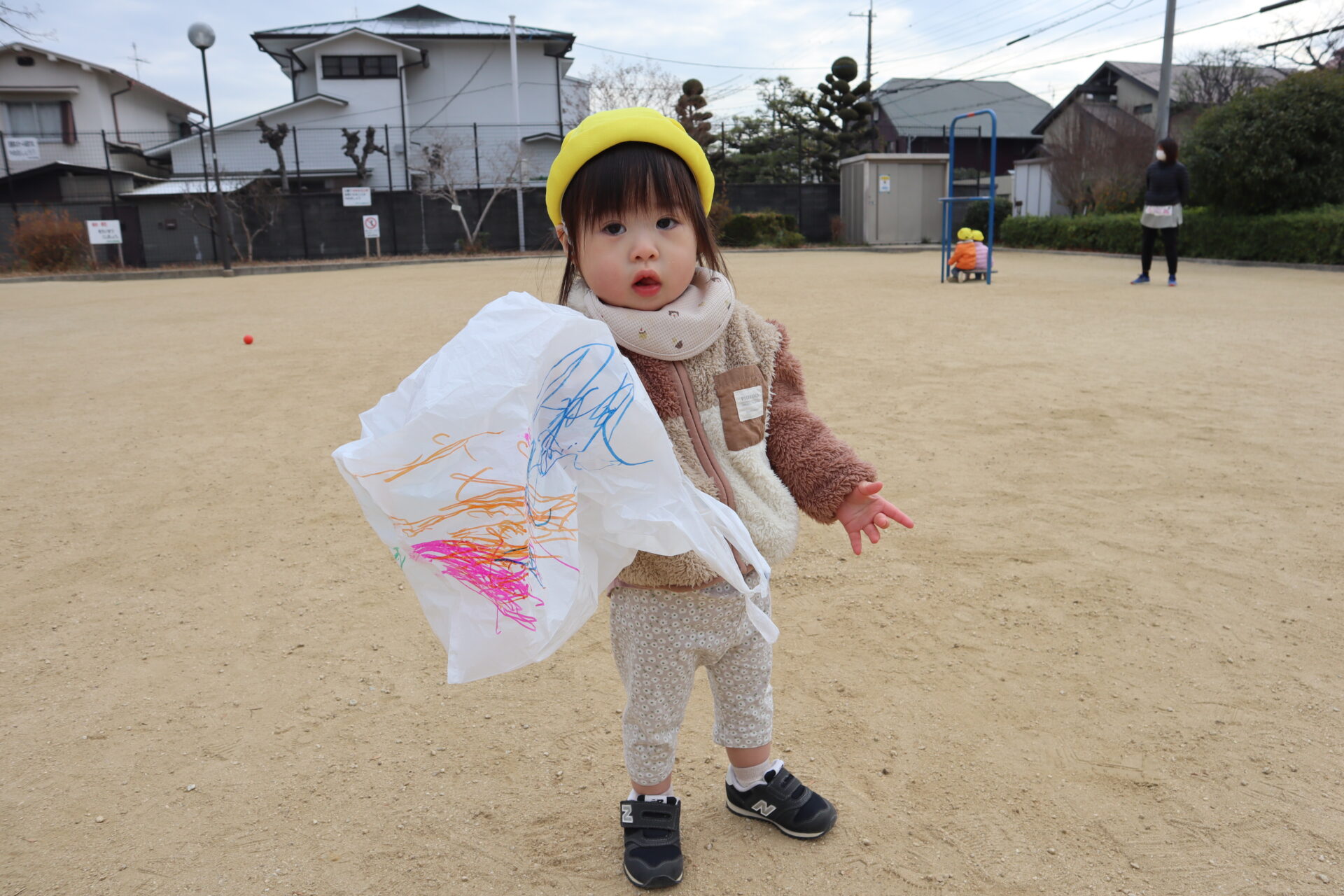 お友だちと見せ合いながら、凧揚げを楽しみました🎵