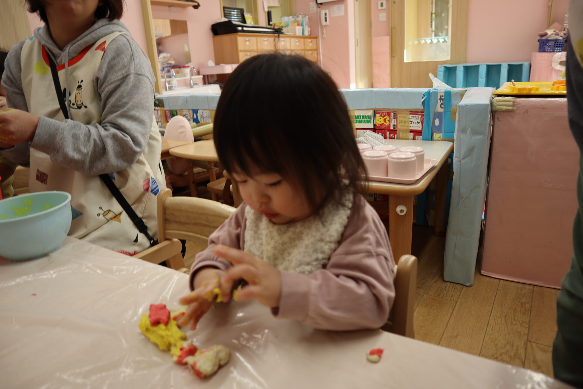 ペタっ、こねこね♬楽しいね