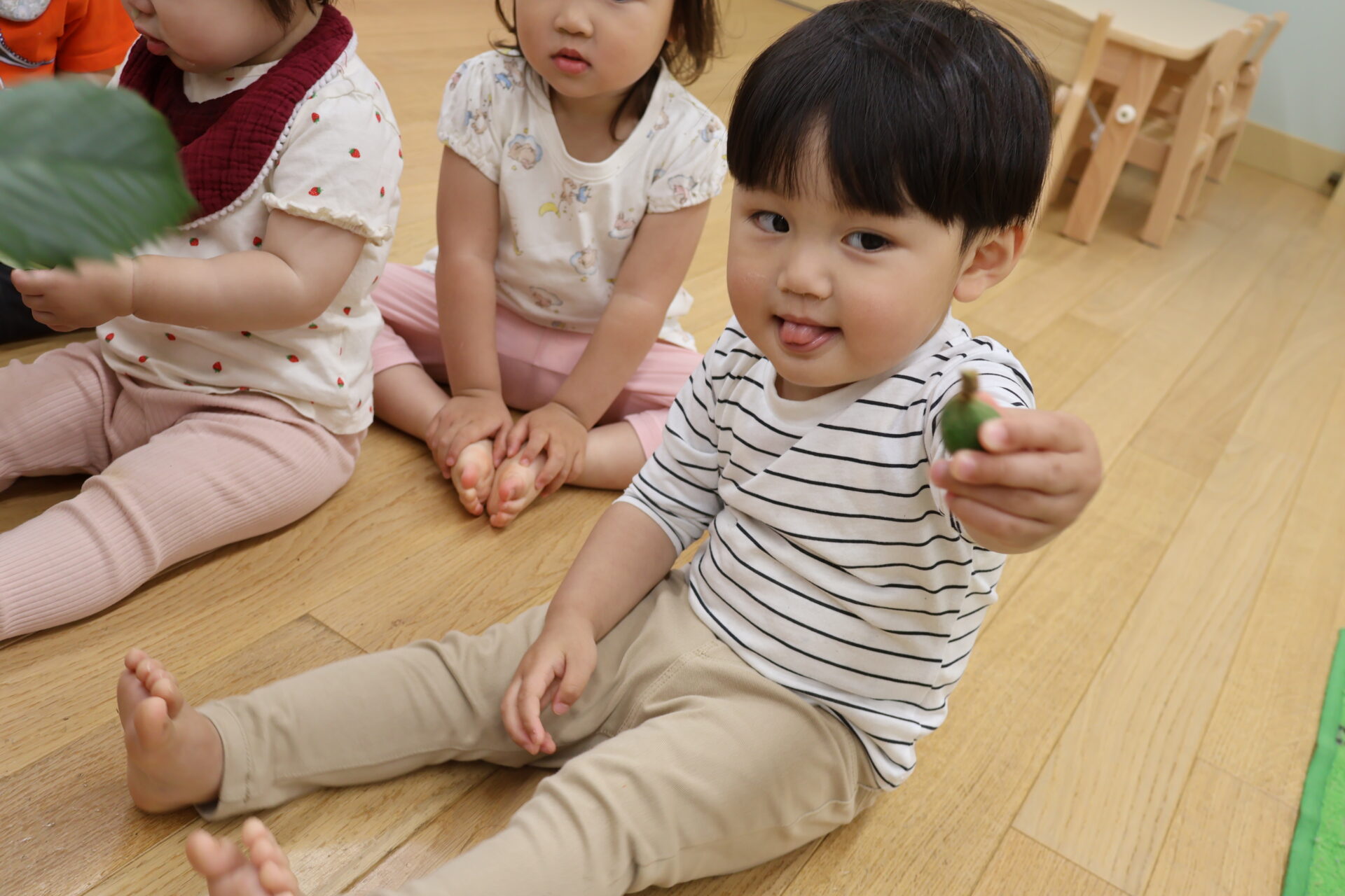 その後も散歩で何度もびわの木を観察し、保育者が「おいしいのかな?たべてみたいね。」