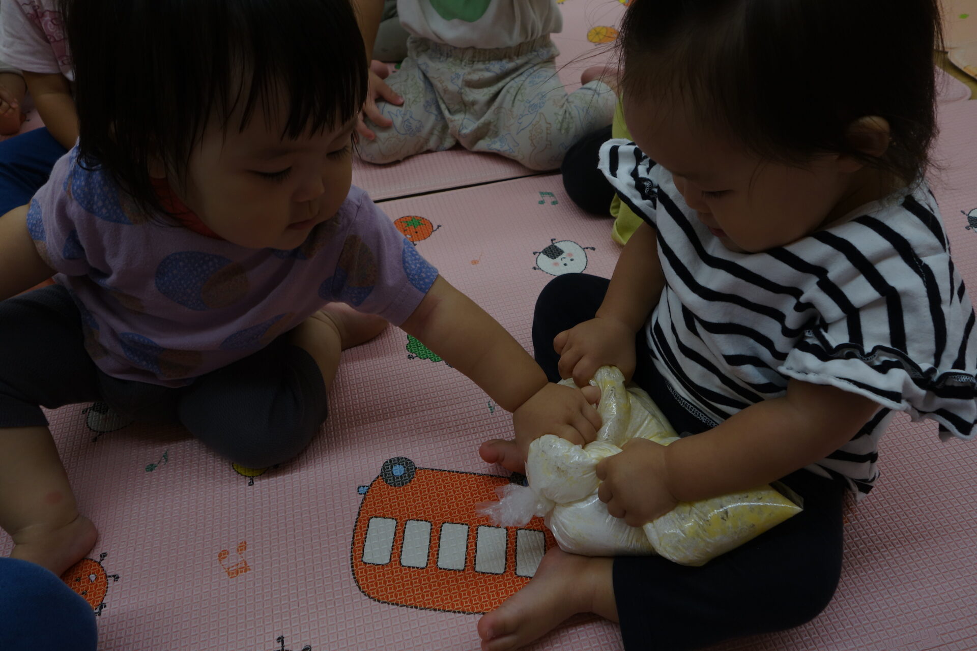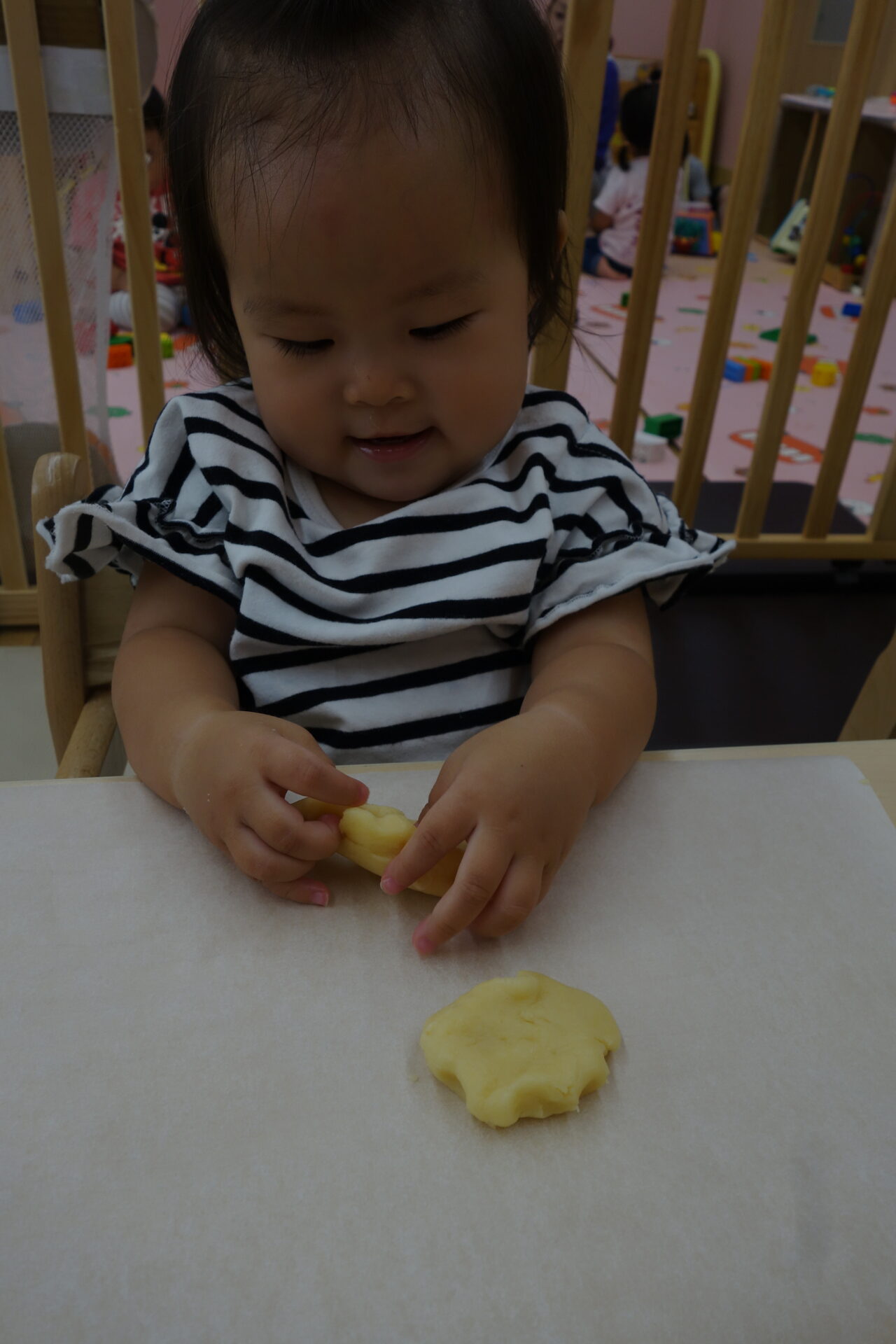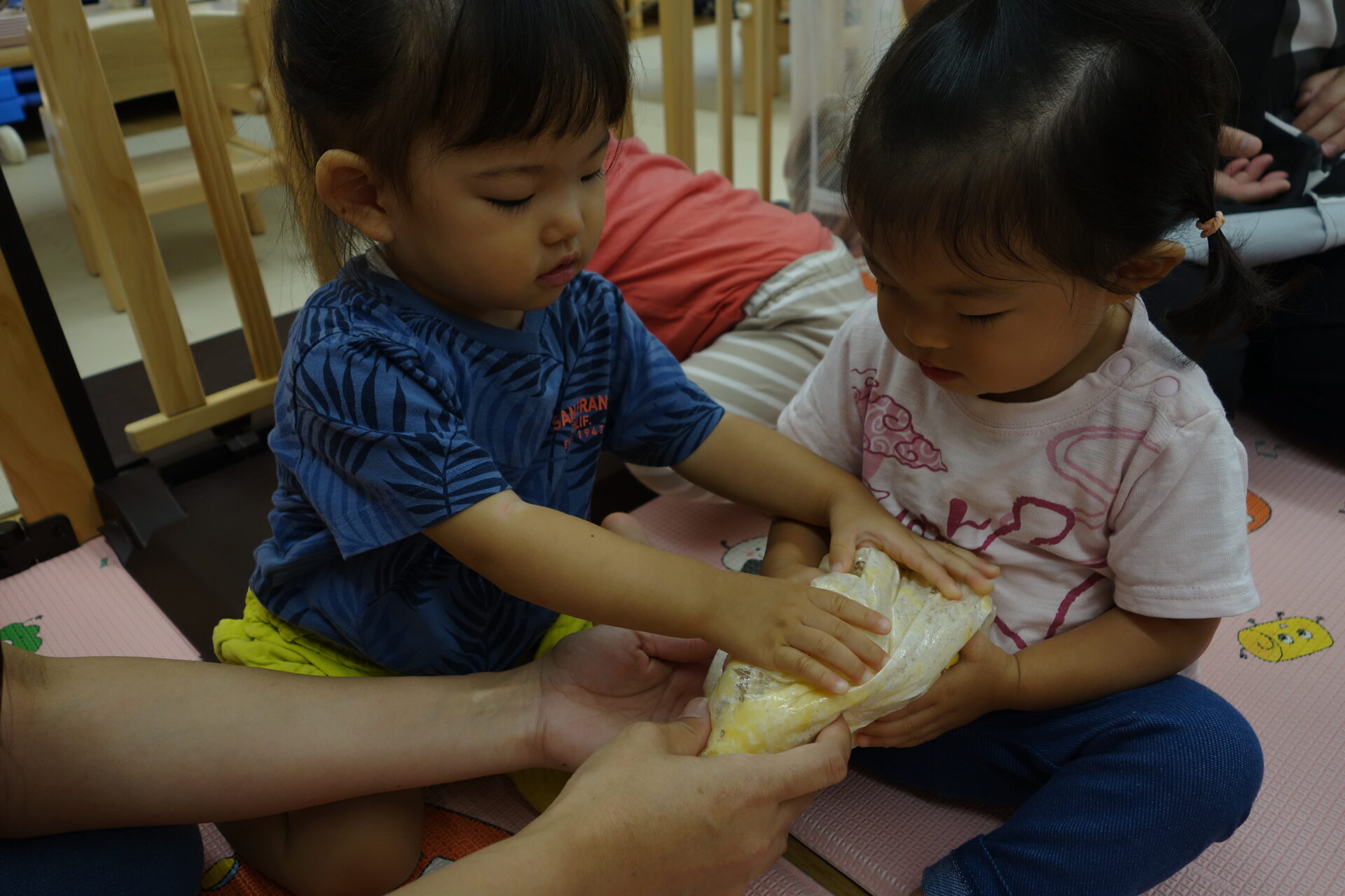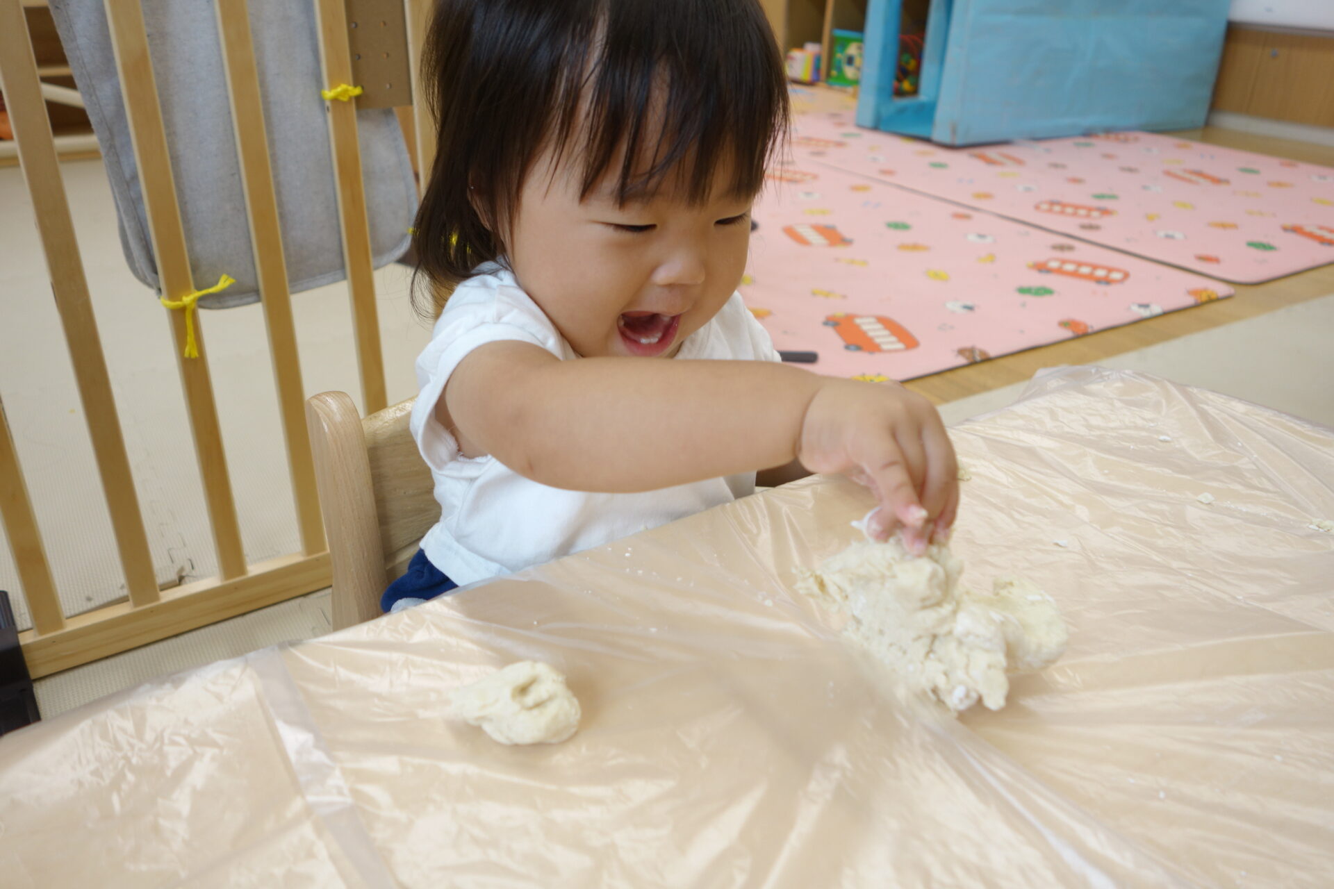 こねたり、伸ばしたり、丸めたりして感触を楽しんでいました。