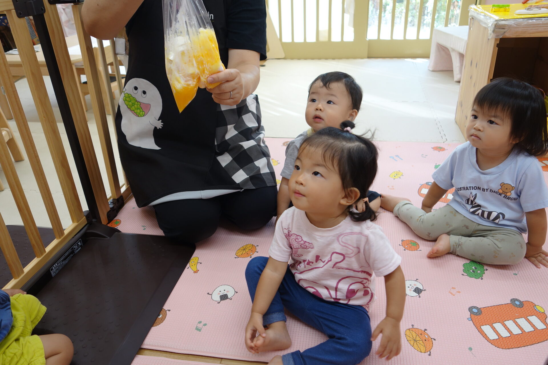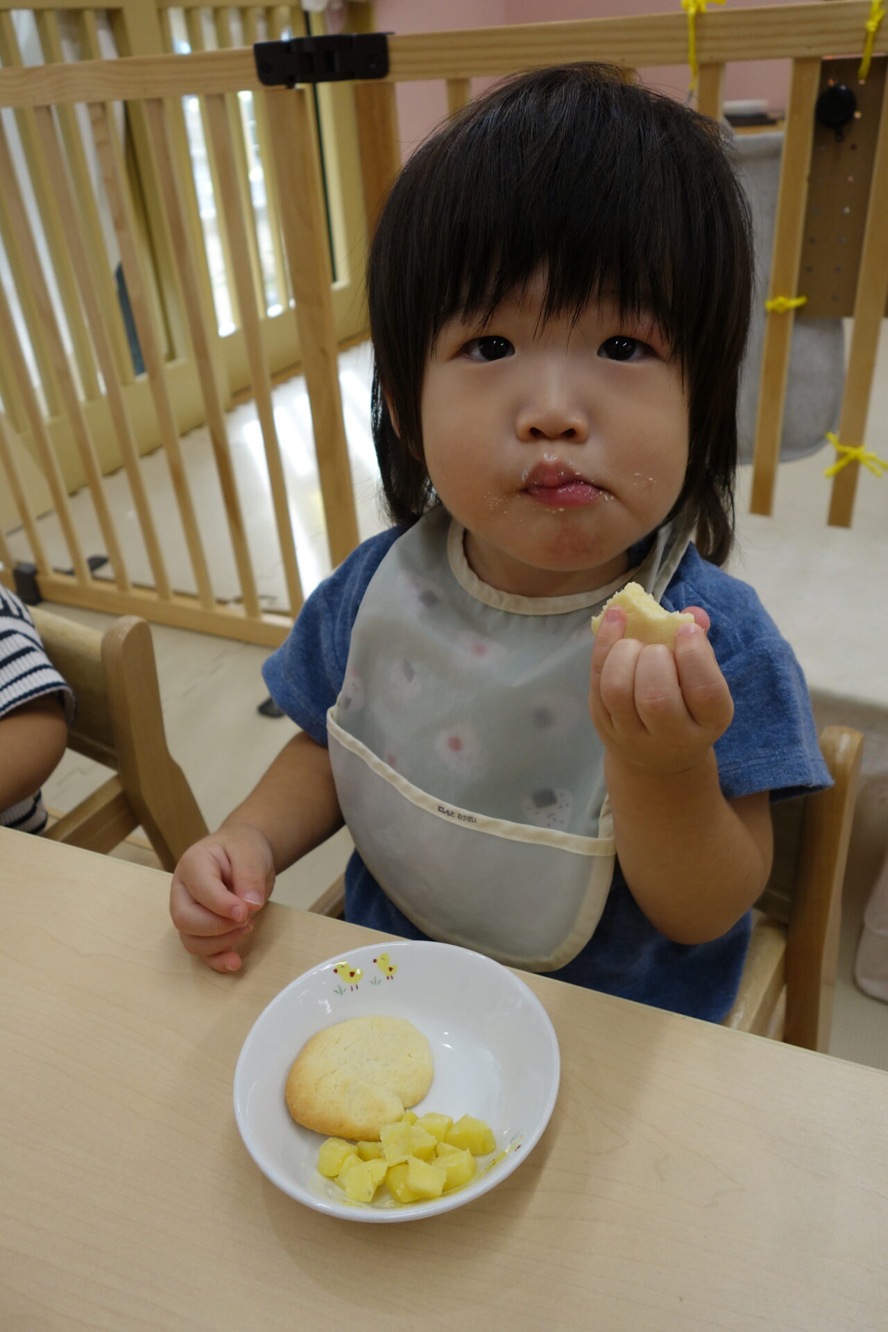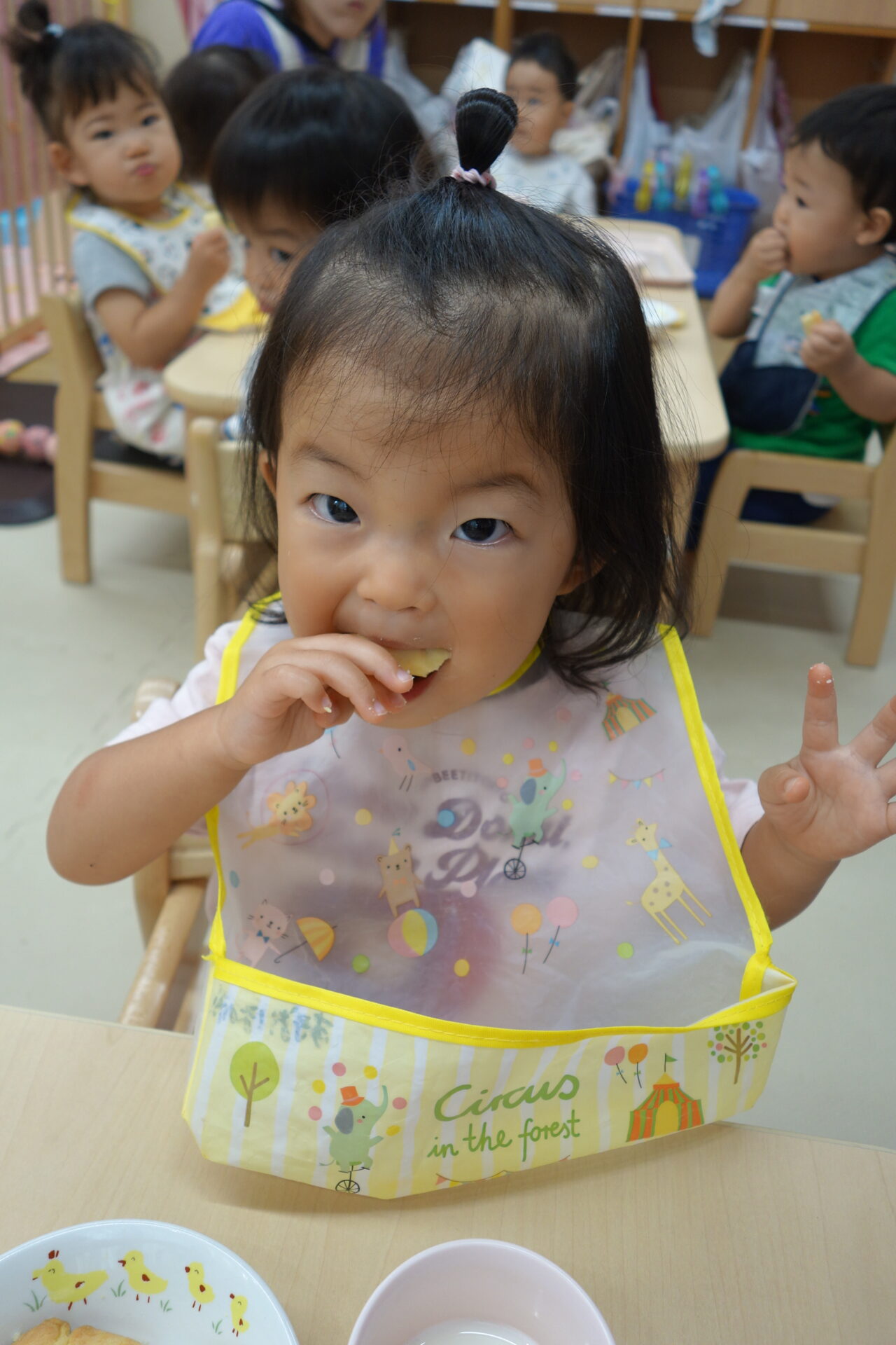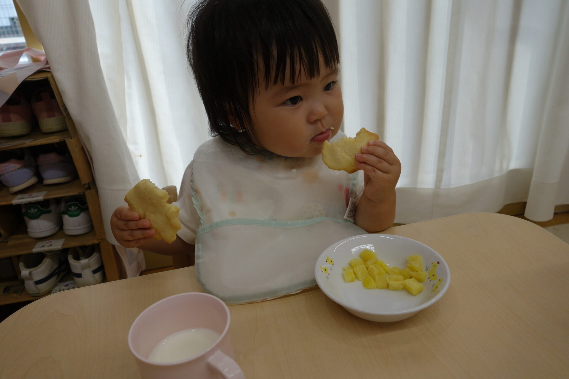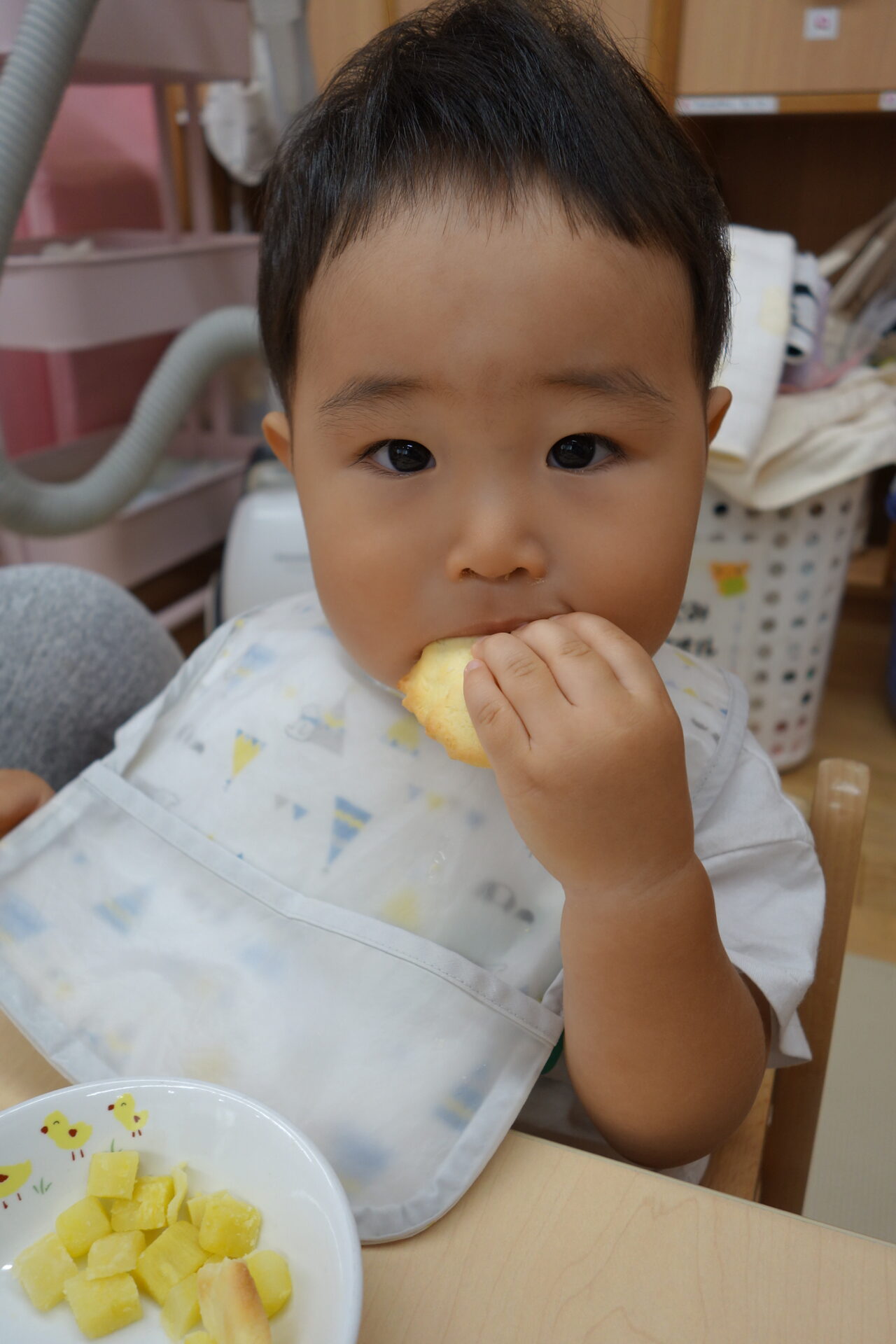 「おいしいね?」と聞くと「うん!」と言いながらとてもおいしいそうに食べていました。