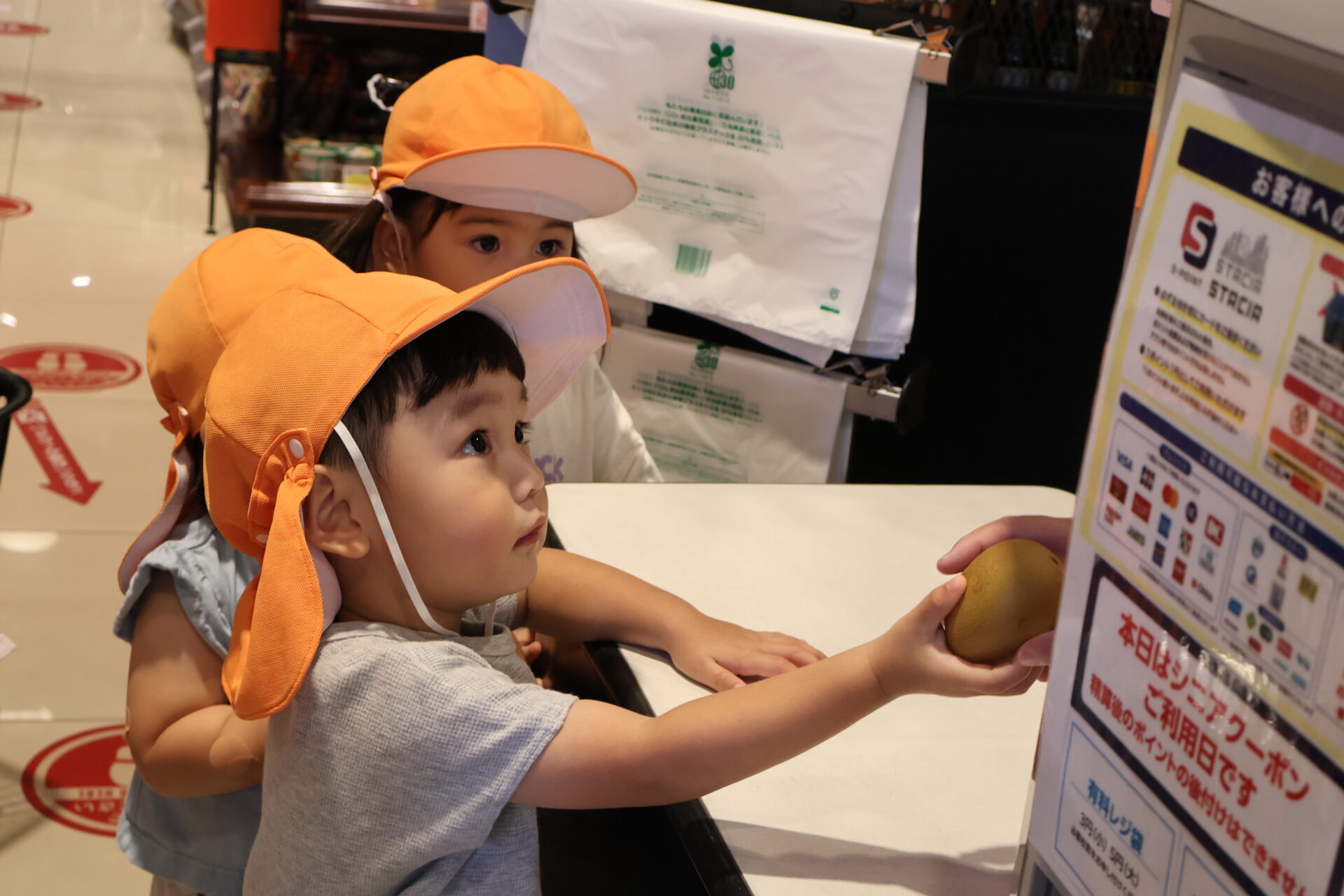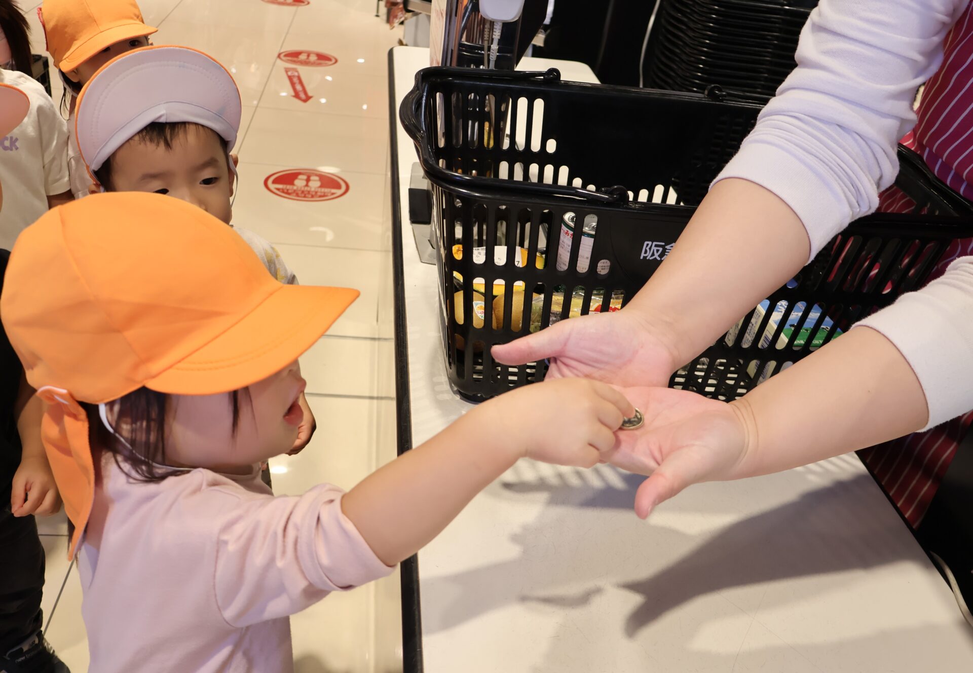 保育者に頼まれた品物を覚えて選び、レジで買いました。