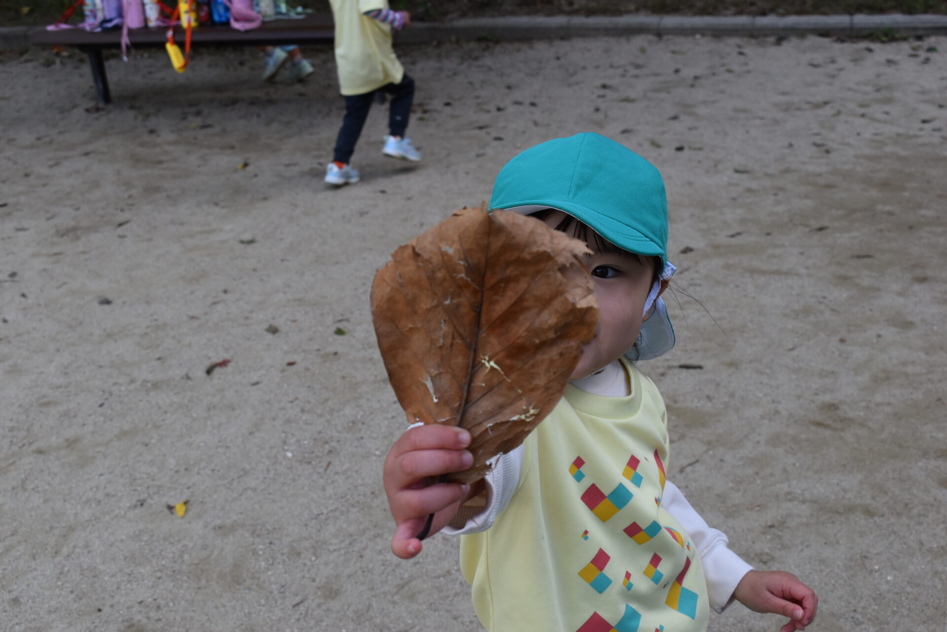 大きな葉っぱや木の実を探したりしました。どんぐりの木がありましたが、まだ木の実にはなっていなかったようです。残念!
