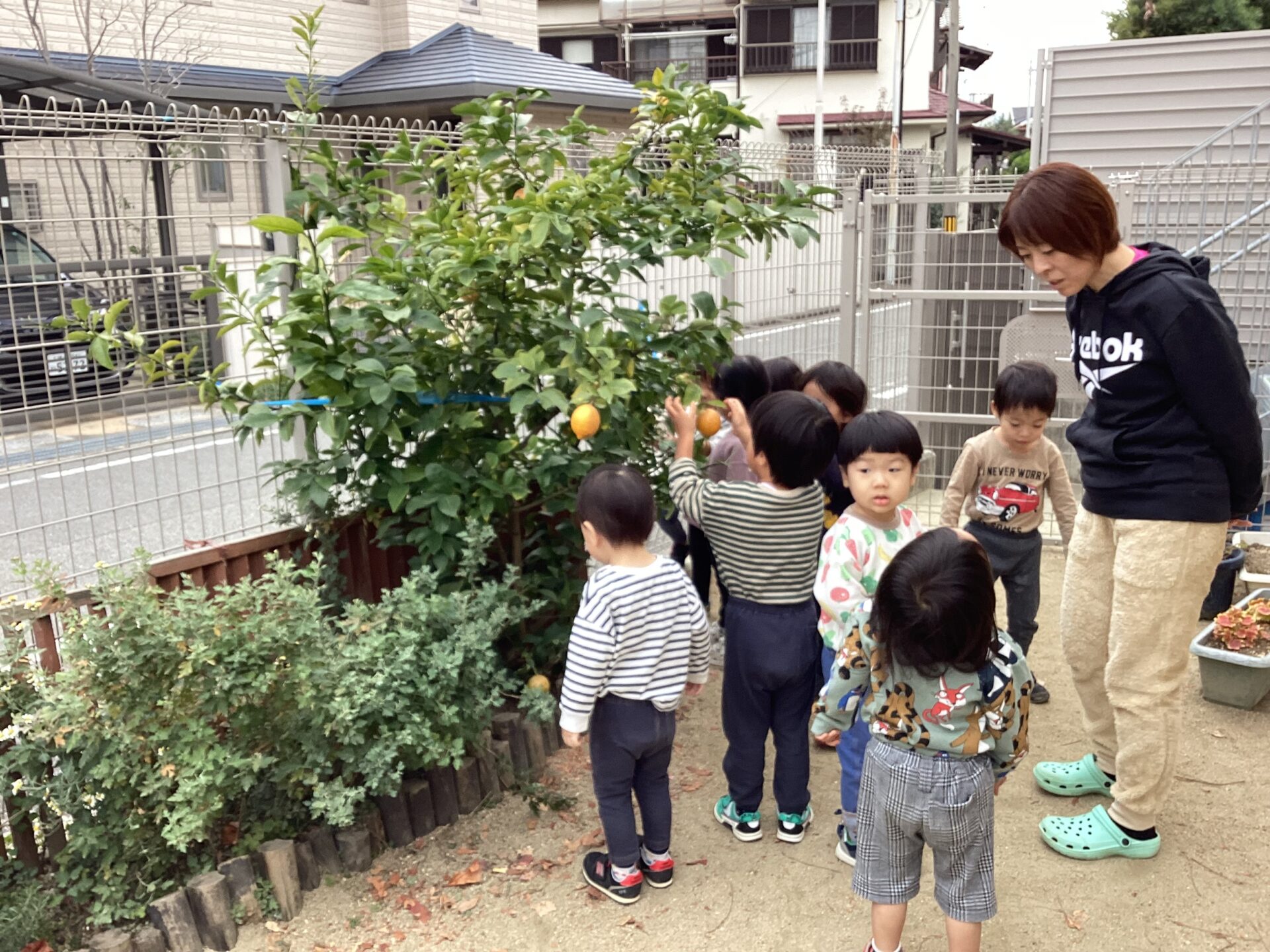 あめ組ではレモンを使い「レモンホットケーキ」をクッキングで作ることになりました。これはレモンを収穫しに行った日のお話です‼︎