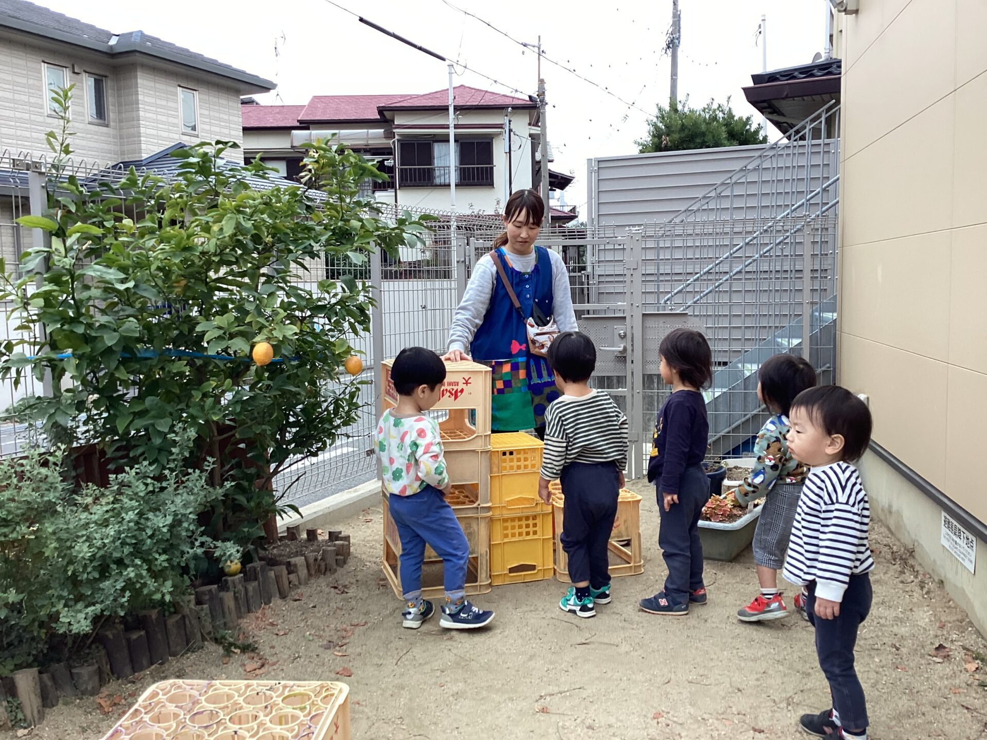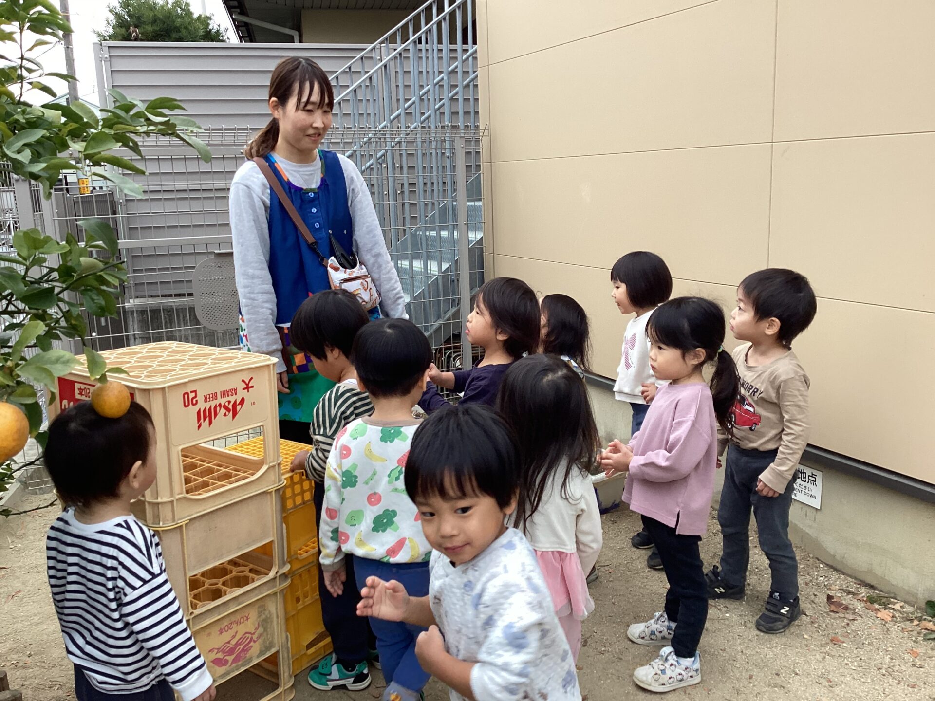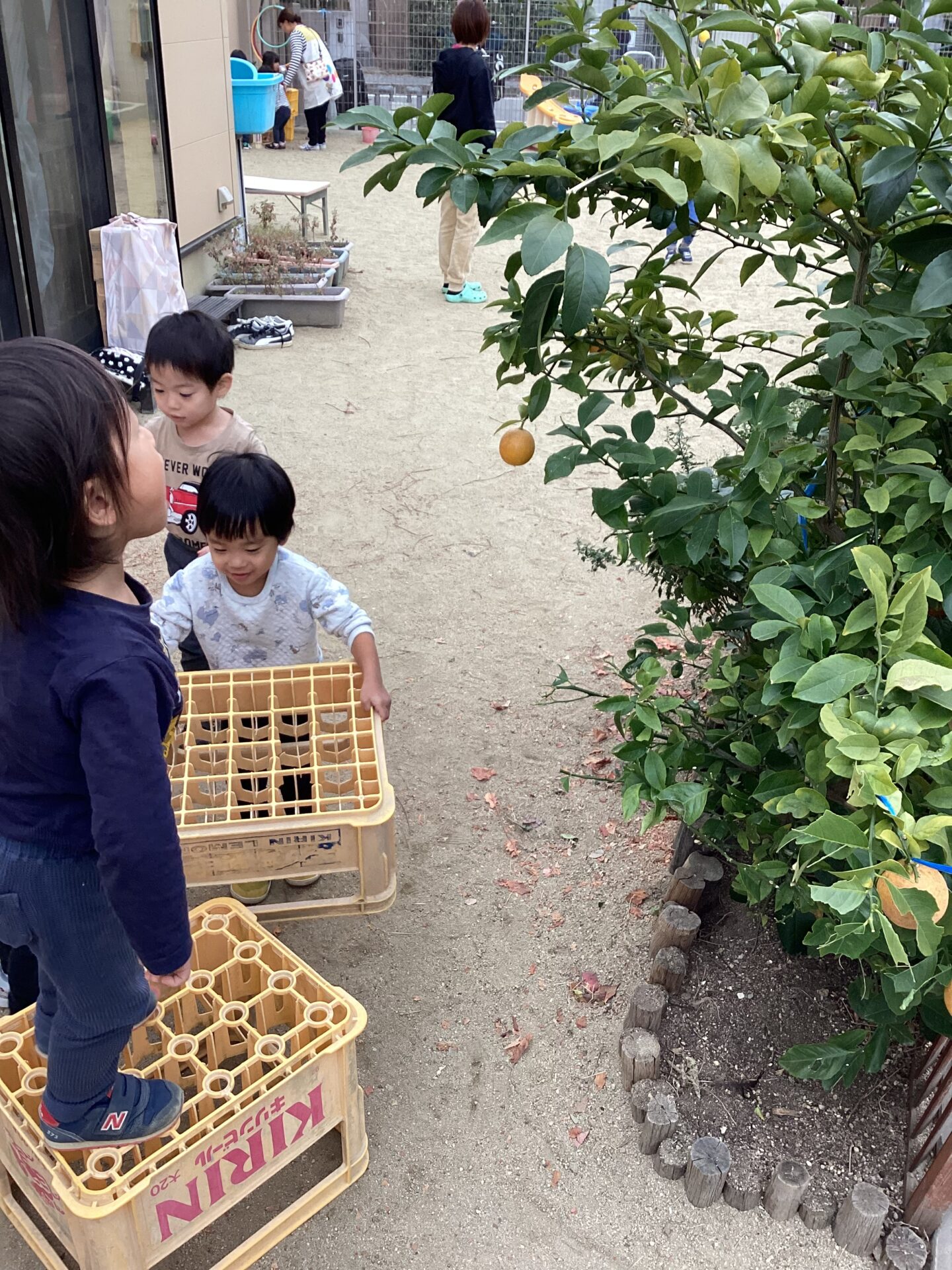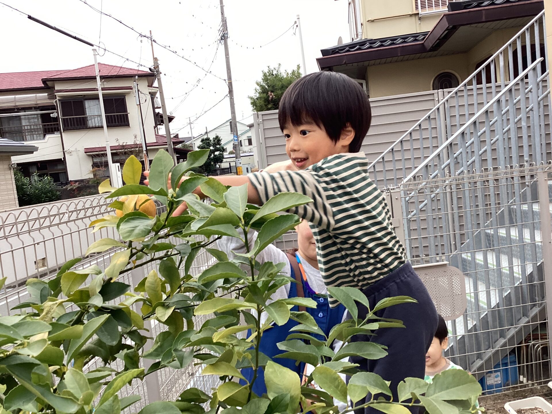 途中でレモン取れてしまうというアクシデントもありましたが木のてっぺんにあるレモンを取るためにみんなで考えコンテナで階段を作り一人ずつ登り、レモンに触れるという貴重な経験ができて良かったです。これからも困ったことがあったら一人ではなく隣にいる友だち、クラスみんなで「どうしよう」と考えて意見を出し合い色んな方法を見つけ、どんなことにも乗り越得られる力を身に付けていってほしいなと思います♪