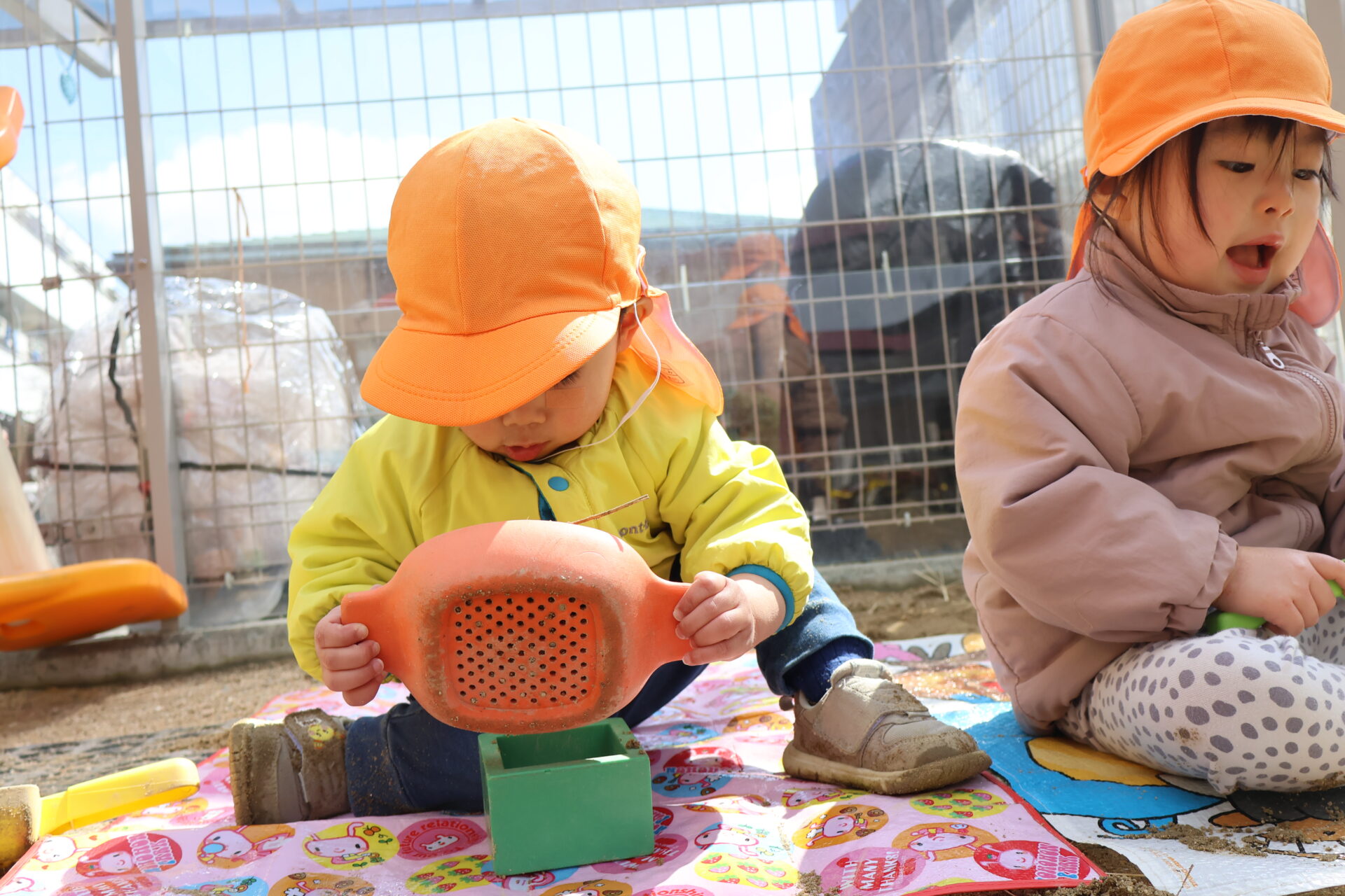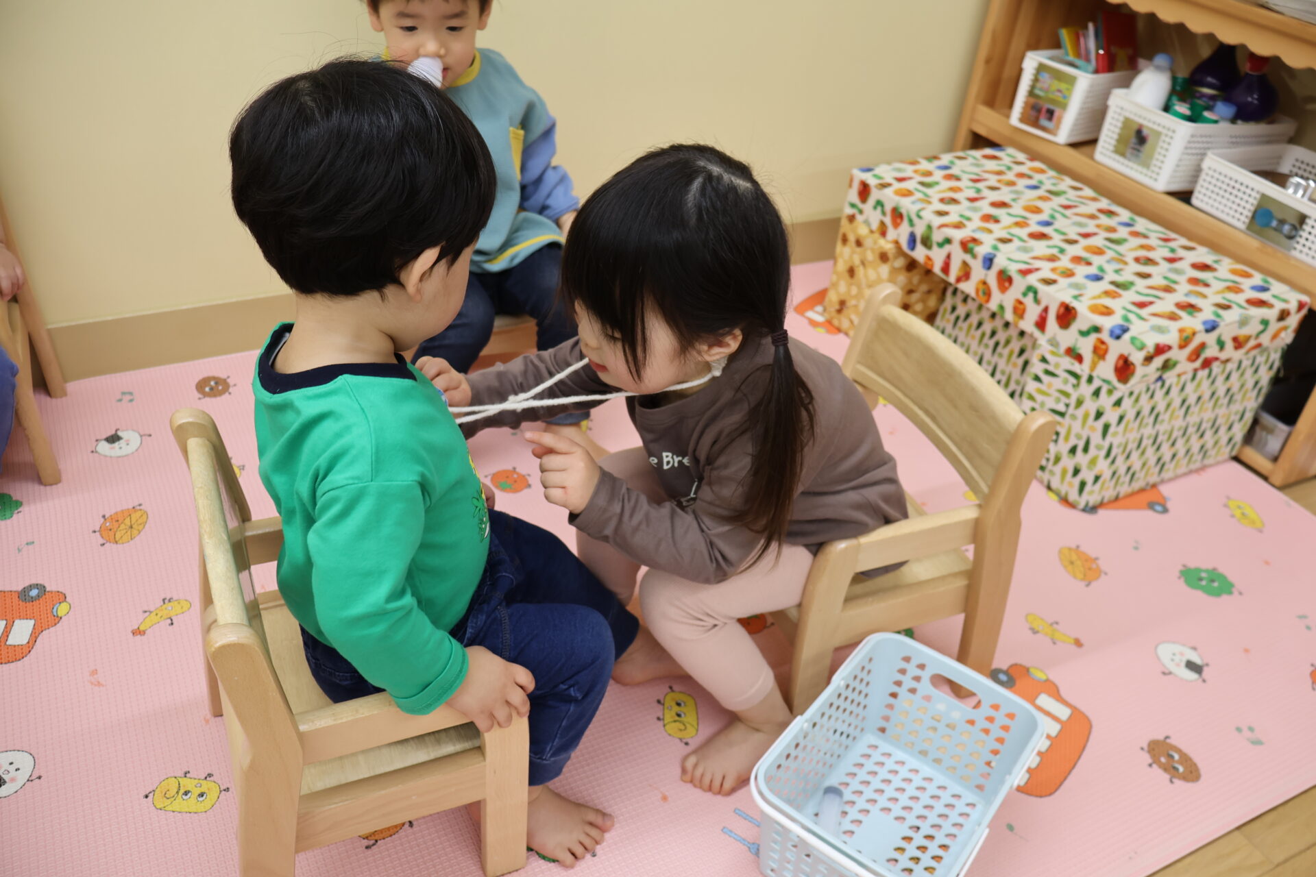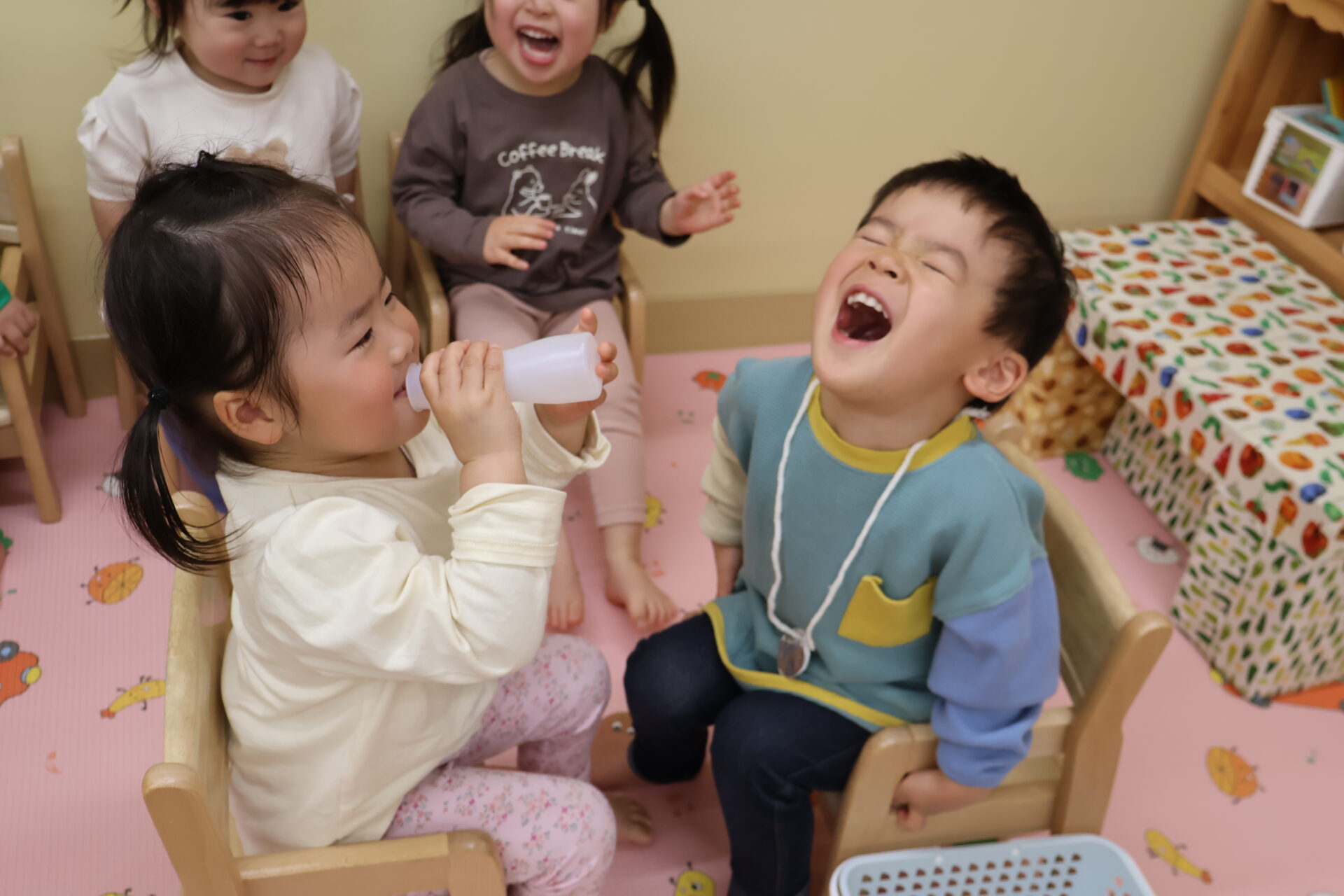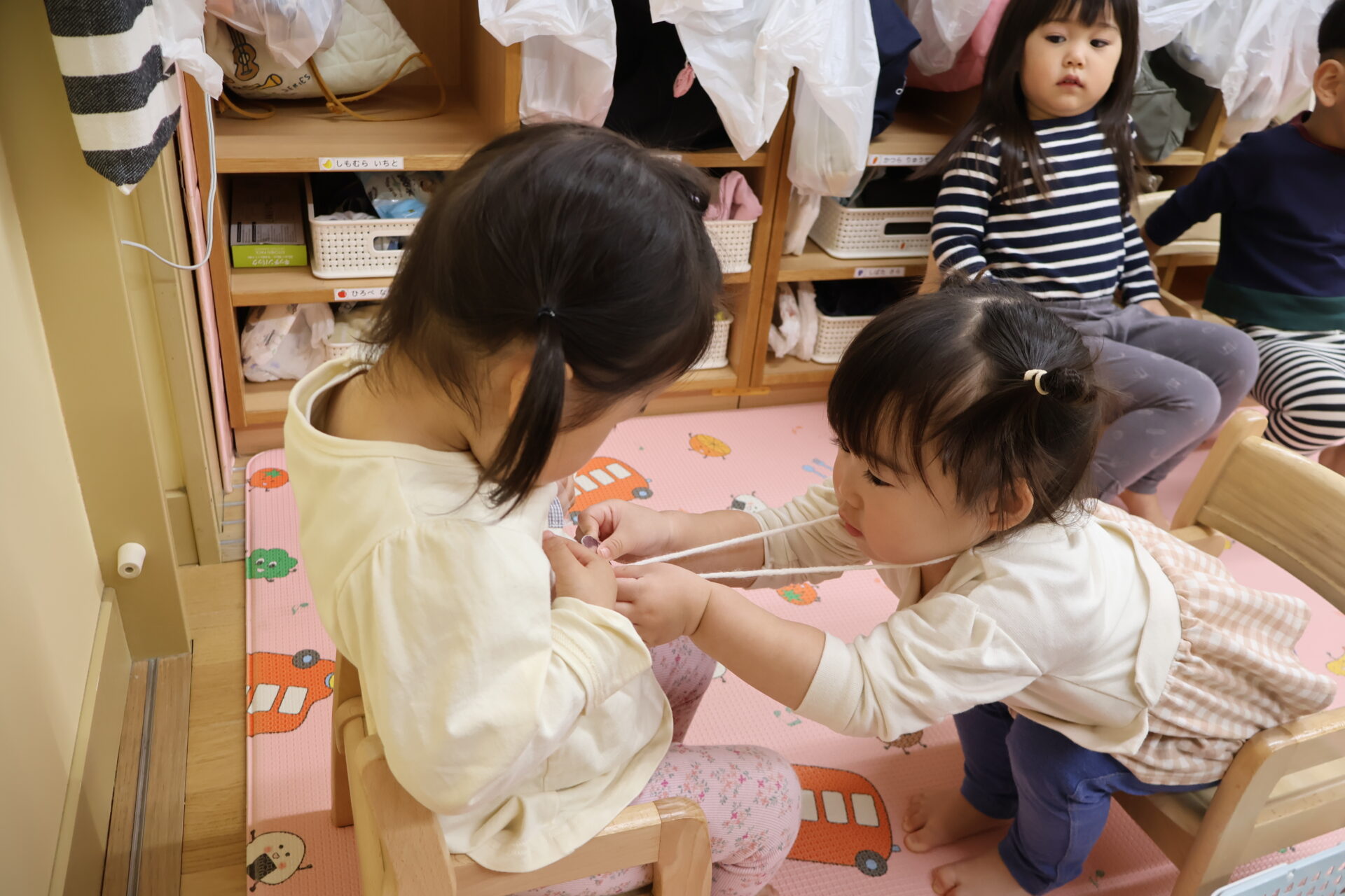 保育者と遊ぶことが多かった子どもたちですが、次第に友だち同士で遊ぶことの楽しさを知り、言葉でやりとりする姿が増えてきました。玩具の貸し借りなど上手くいかないこともたくさんありましたが、保育者が仲立ちをしていくなかで自分の思いを伝えようとすることが、少しずつ出来るようになってきています。