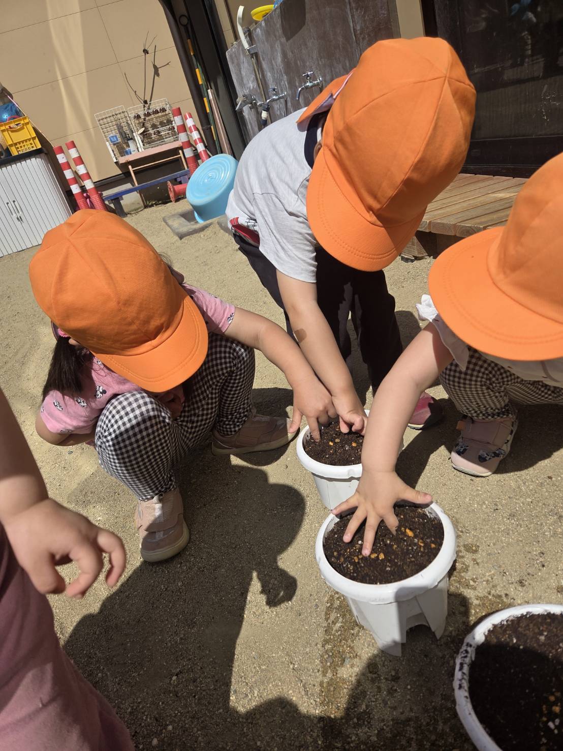 夏に向けて花が咲く予定なので、水遊びの頃には、花びらを使って色水遊びなどできるようになっていたらいいなと思いながら、みんなで大切に育てていきたいと思います。